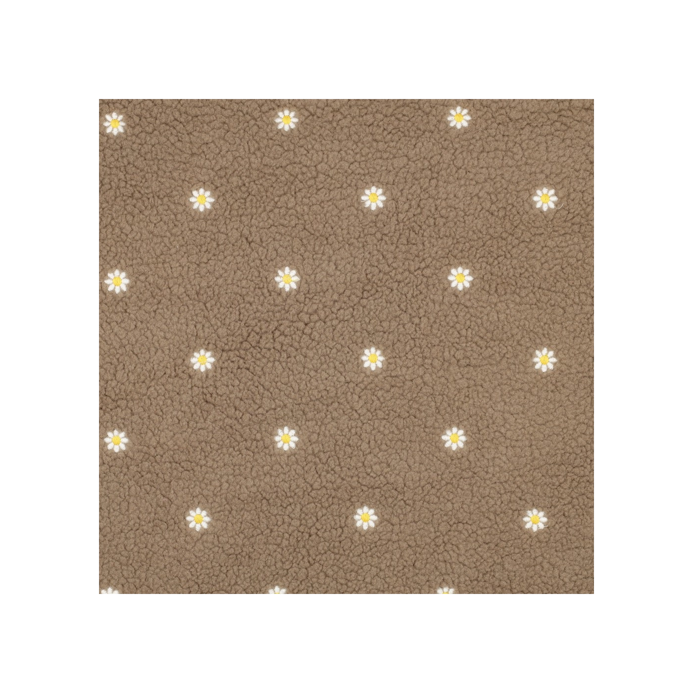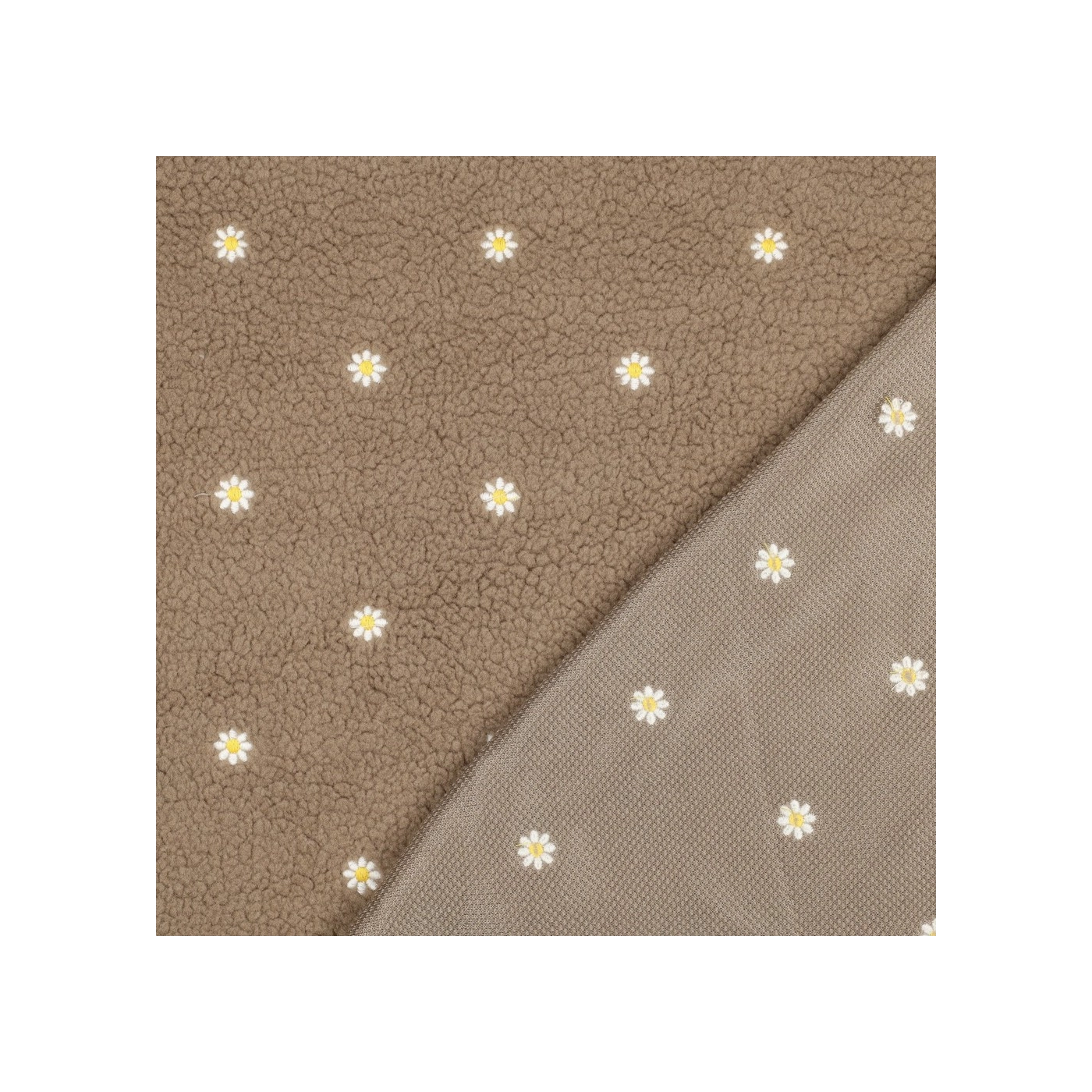 Teddy / moumoute bouclé fond taupe broderies pâquerettes