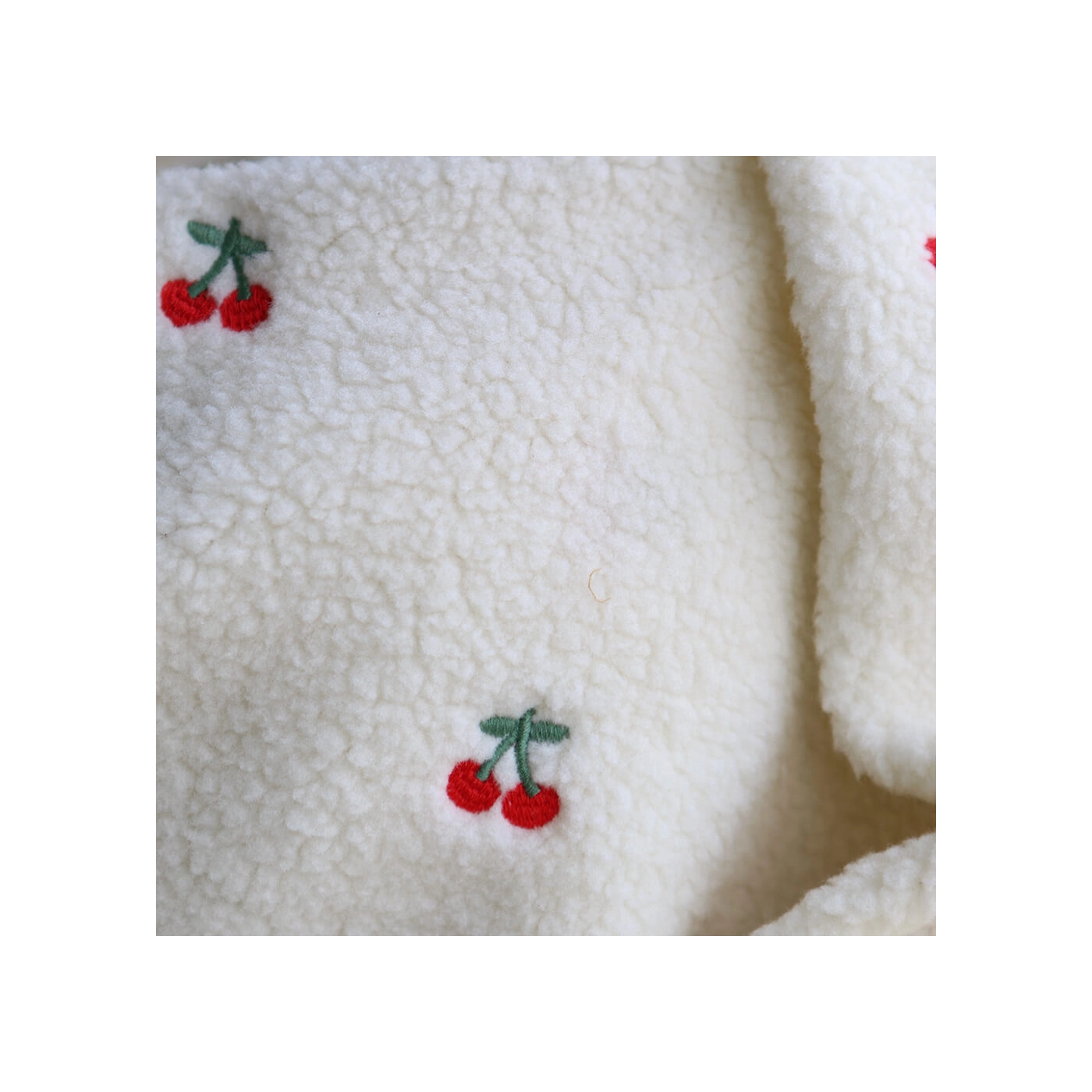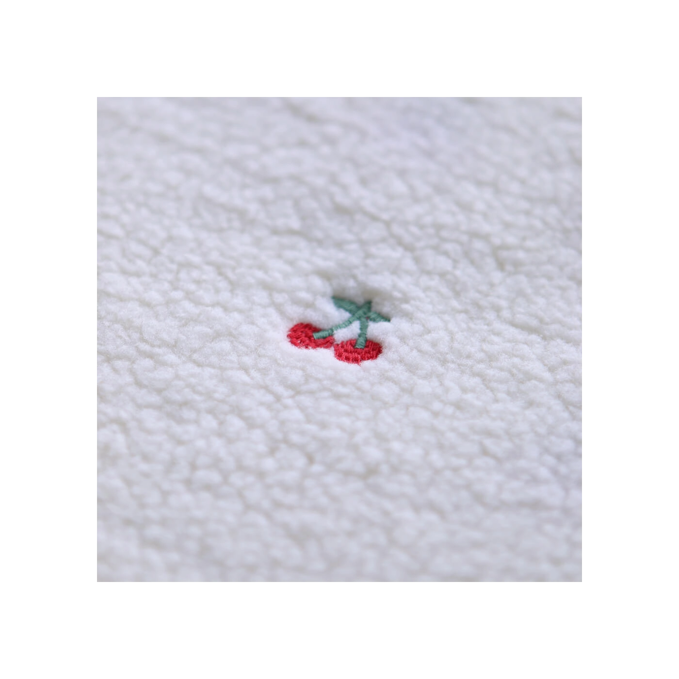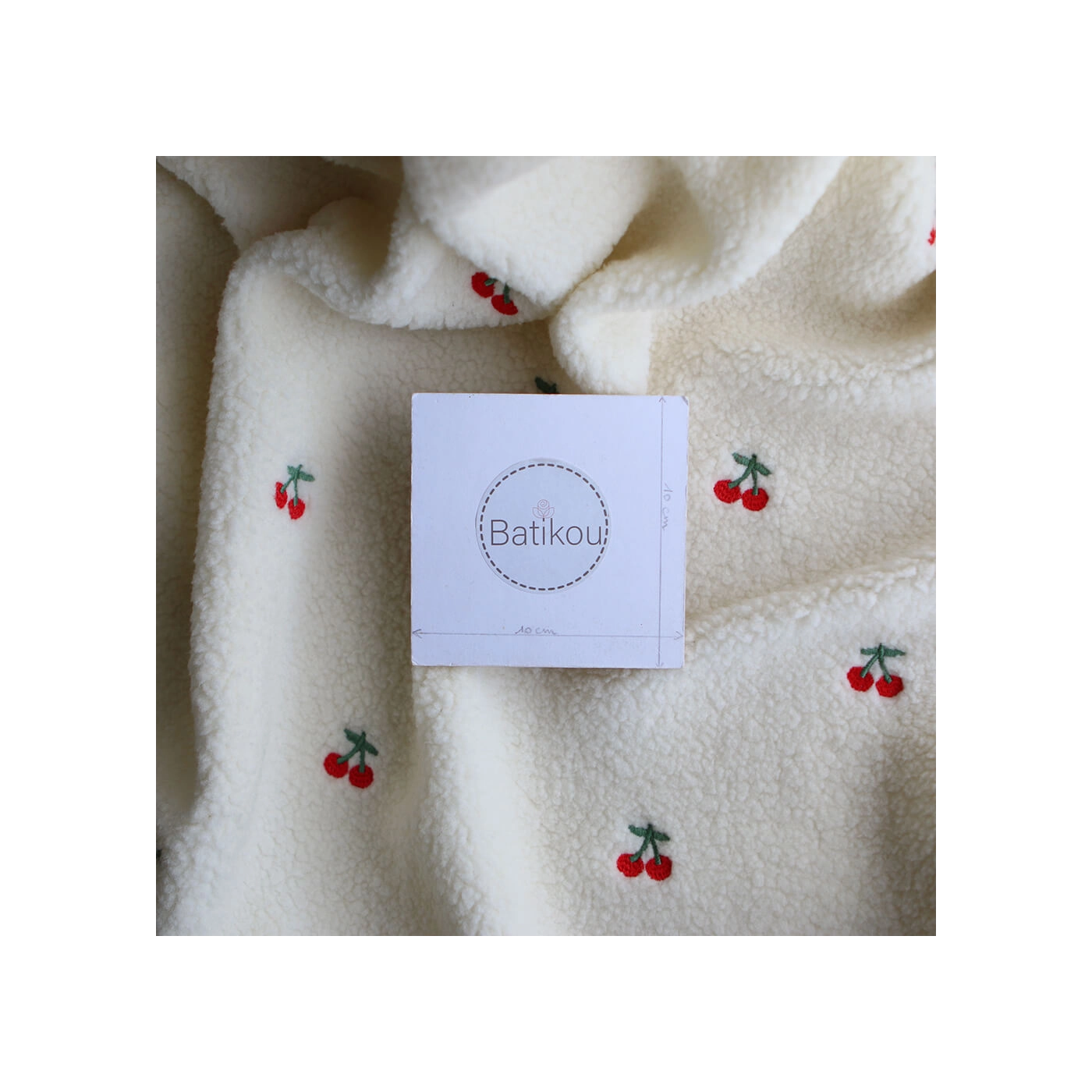 Teddy moumoute Sherpa bouclé fond taupe clair motif pois écru