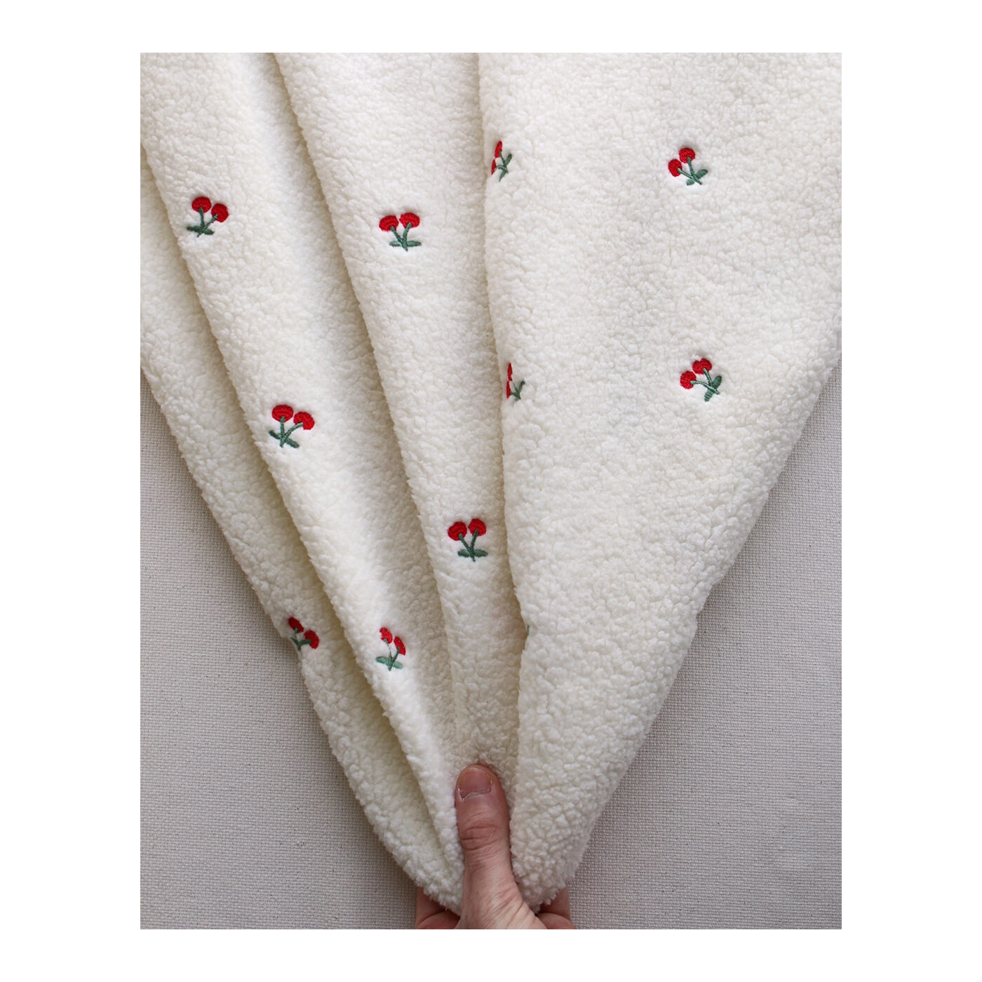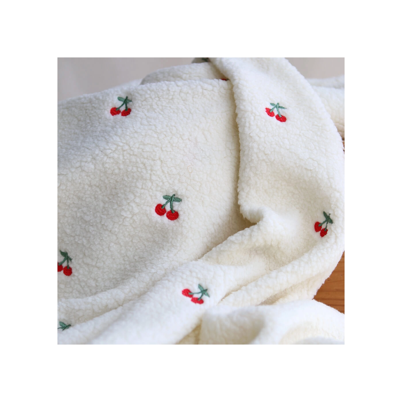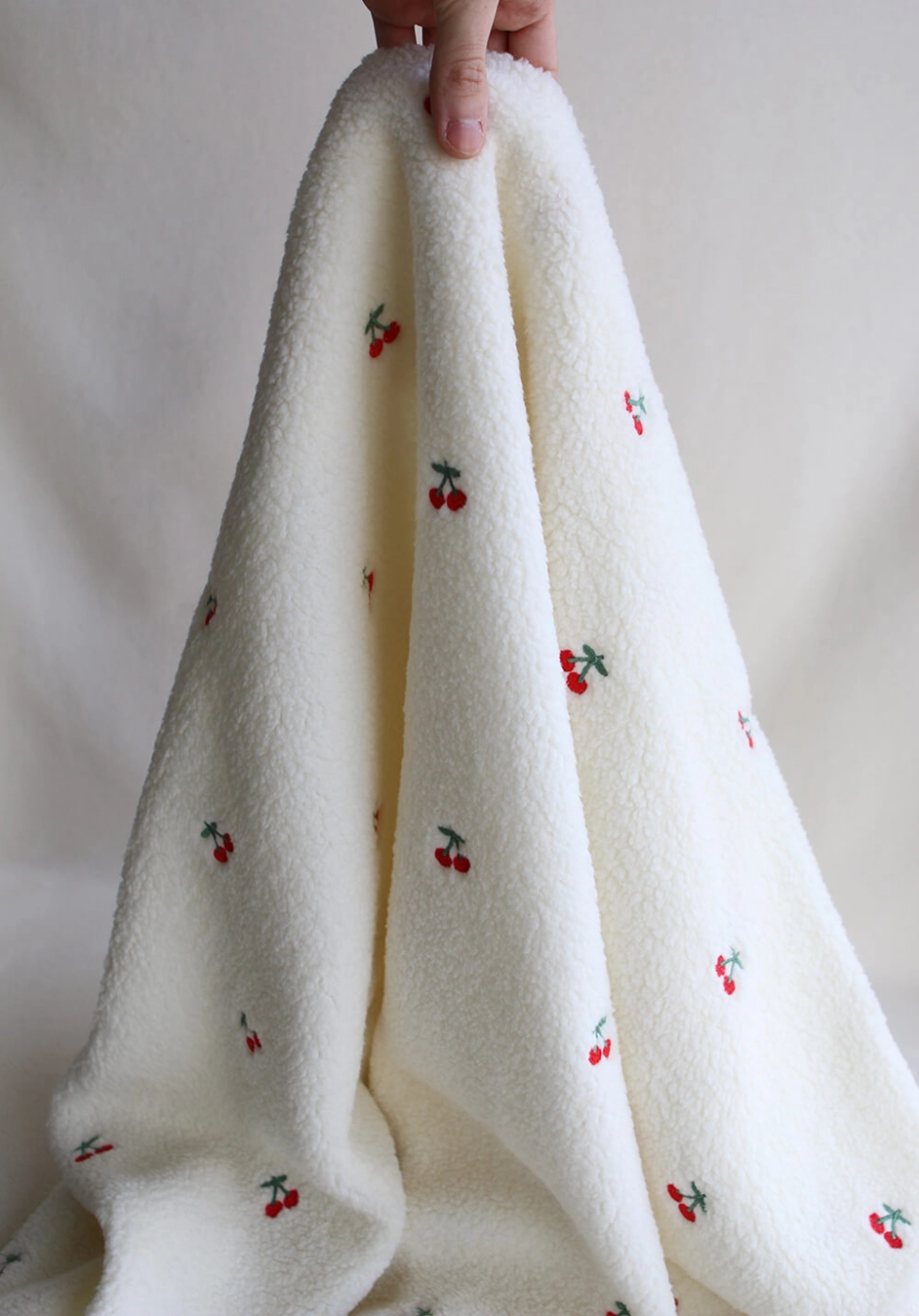 Teddy moumoute Sherpa bouclé fond taupe clair motif pois écru