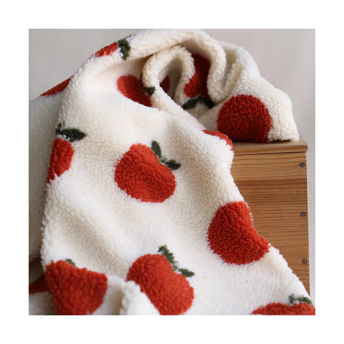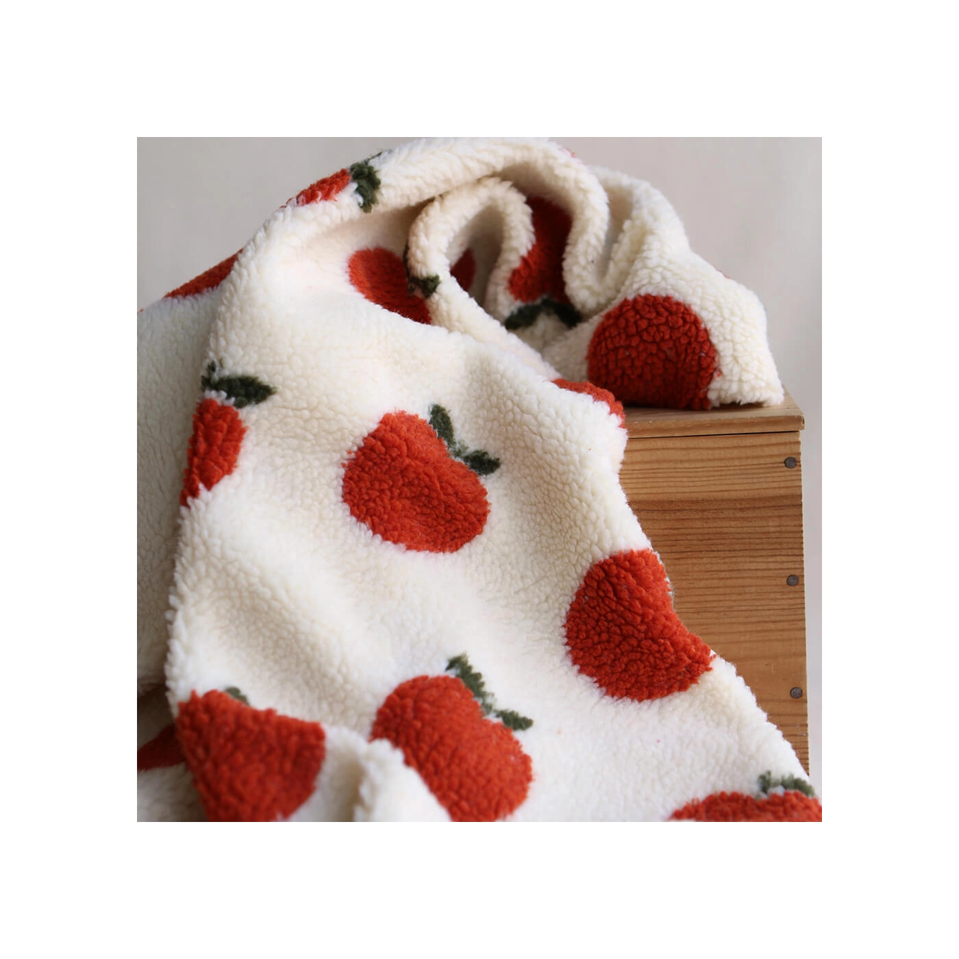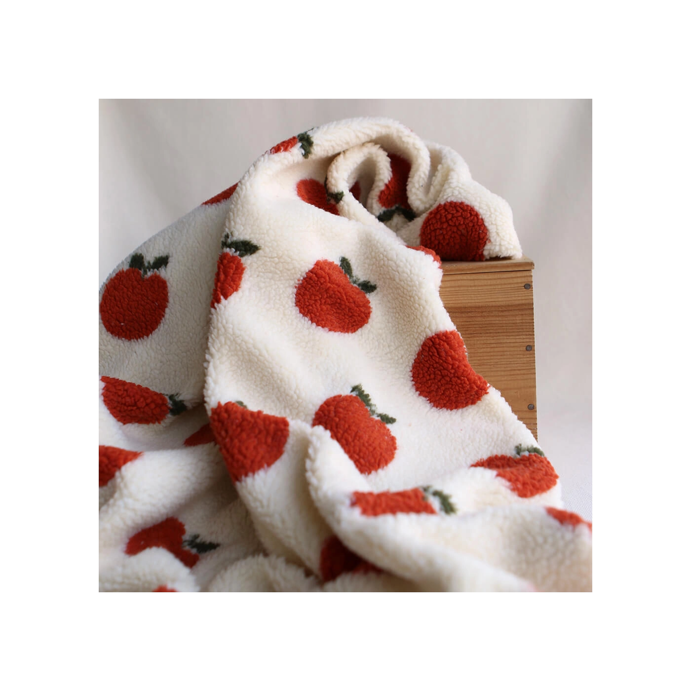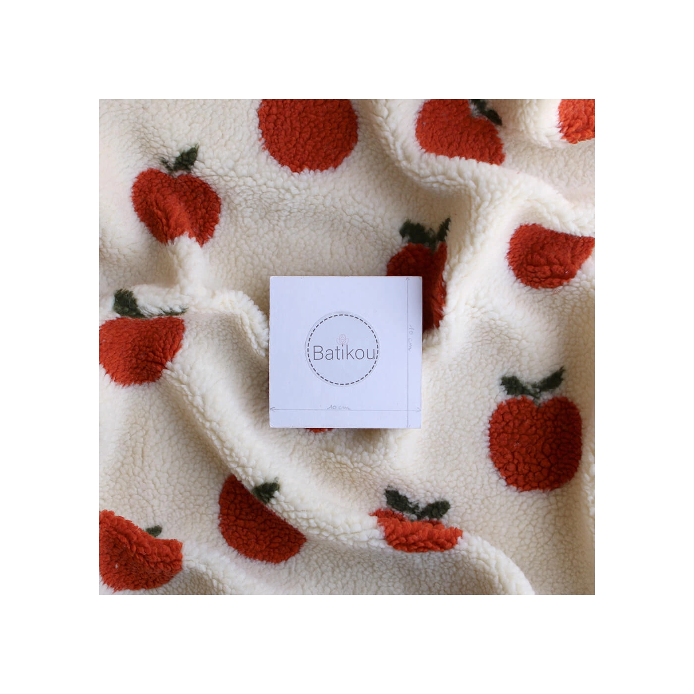 Teddy / moumoute bouclé fond écru motif pommes