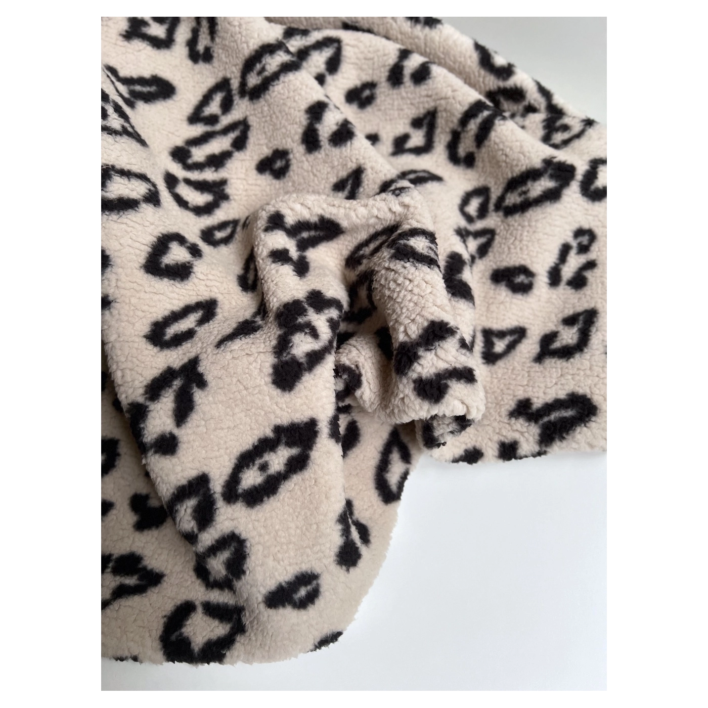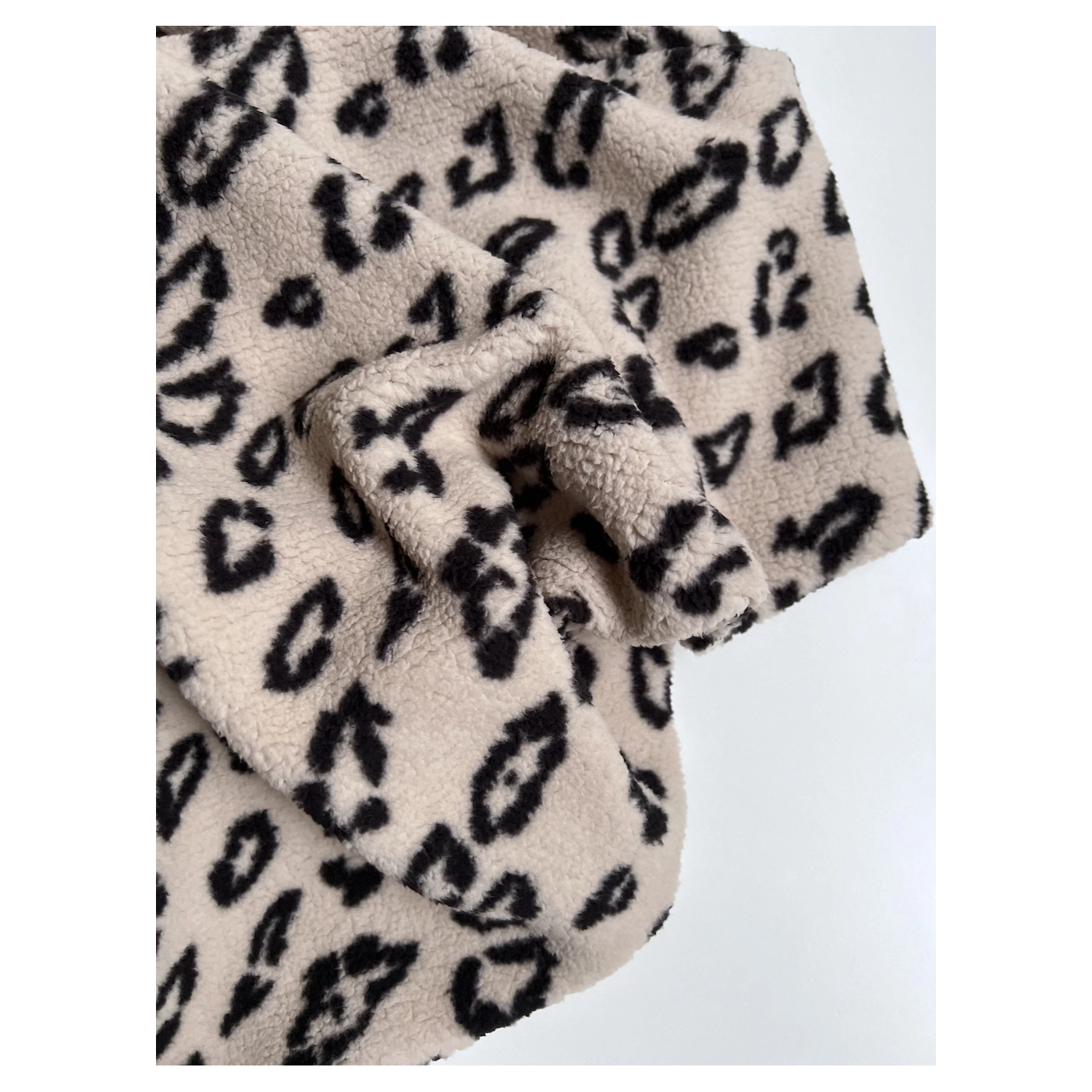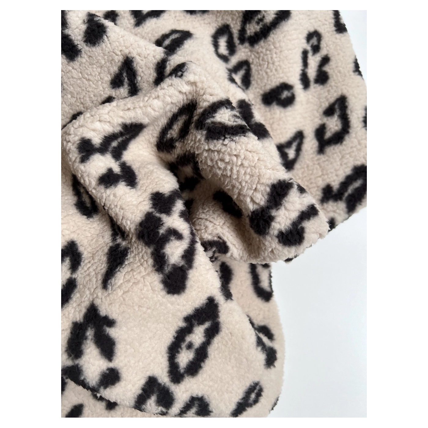 Teddy moumoute Sherpa bouclé fond taupe clair motif pois écru