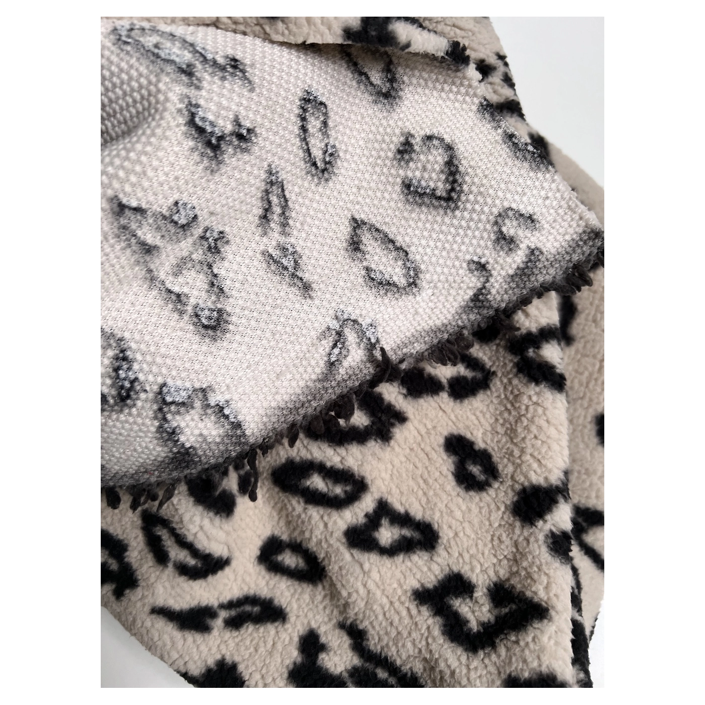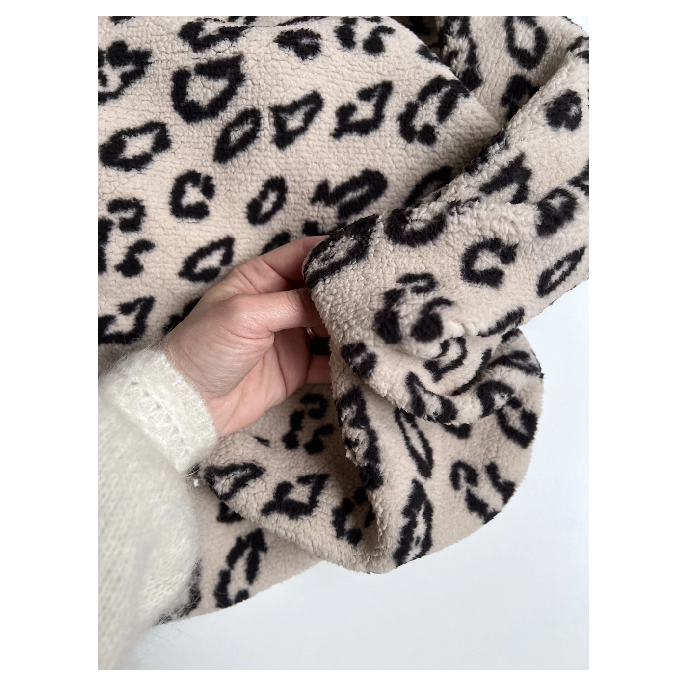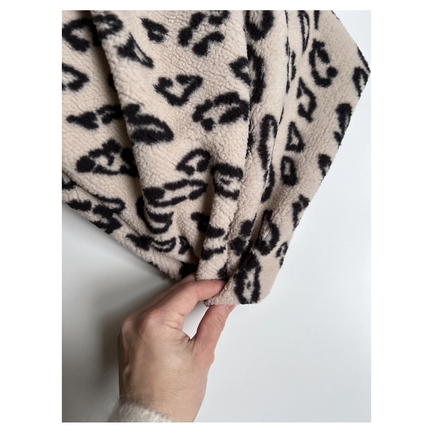 Teddy moumoute Sherpa bouclé fond taupe clair motif pois écru