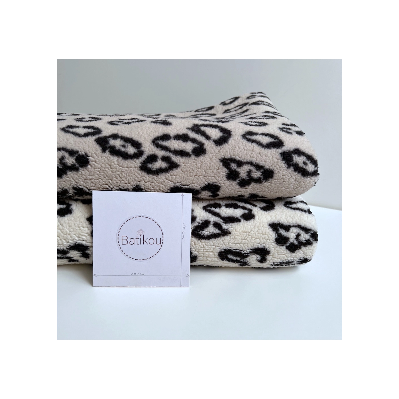Teddy / moumoute bouclé coloris fond beige clair motif graou noir