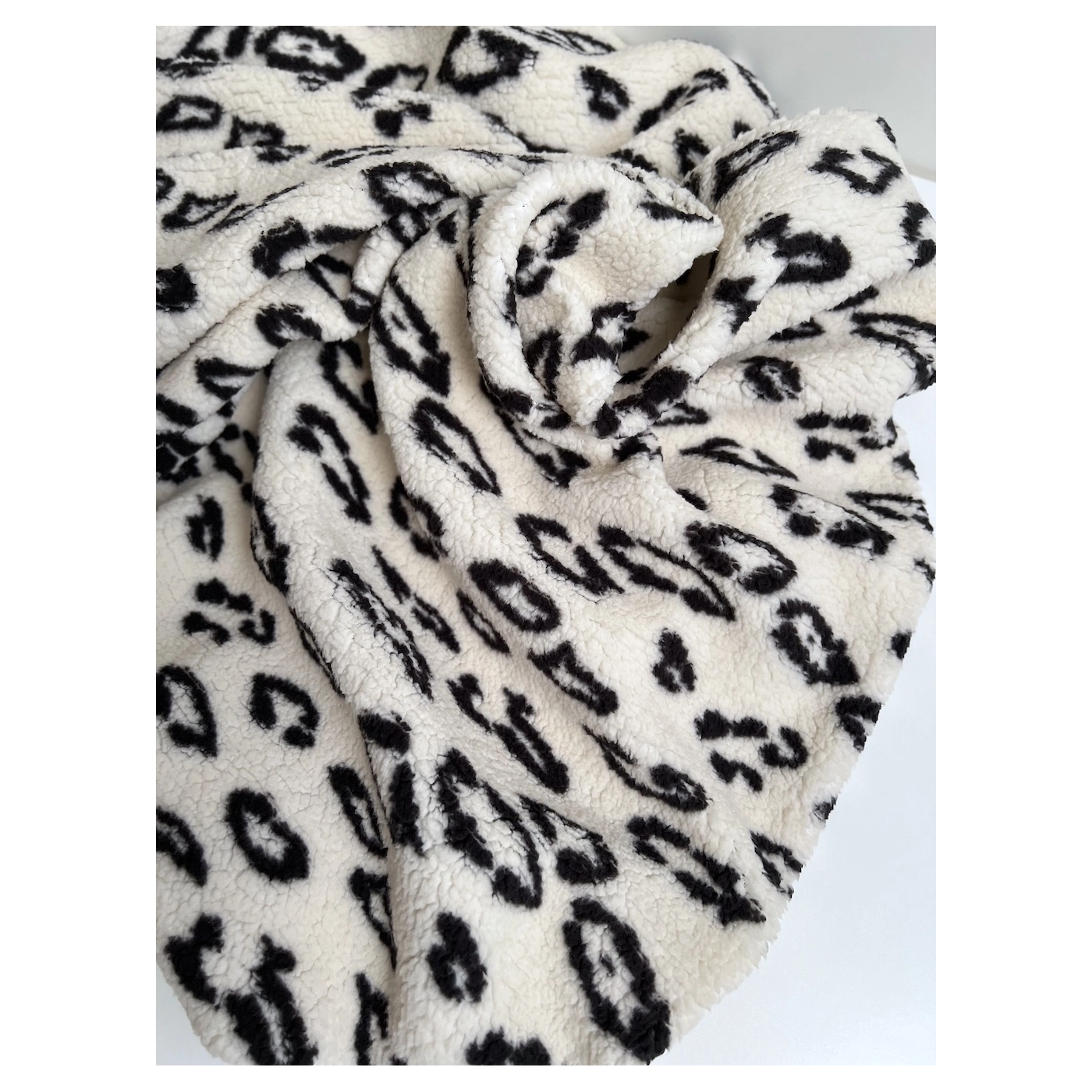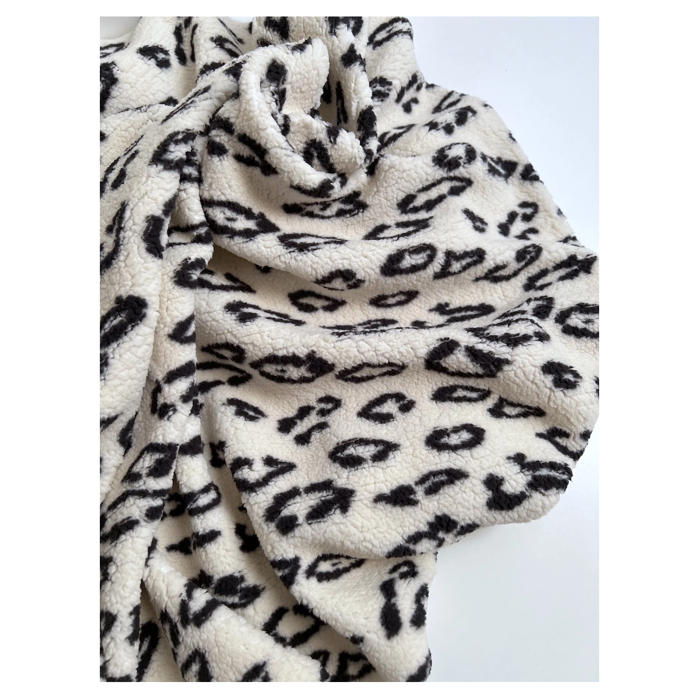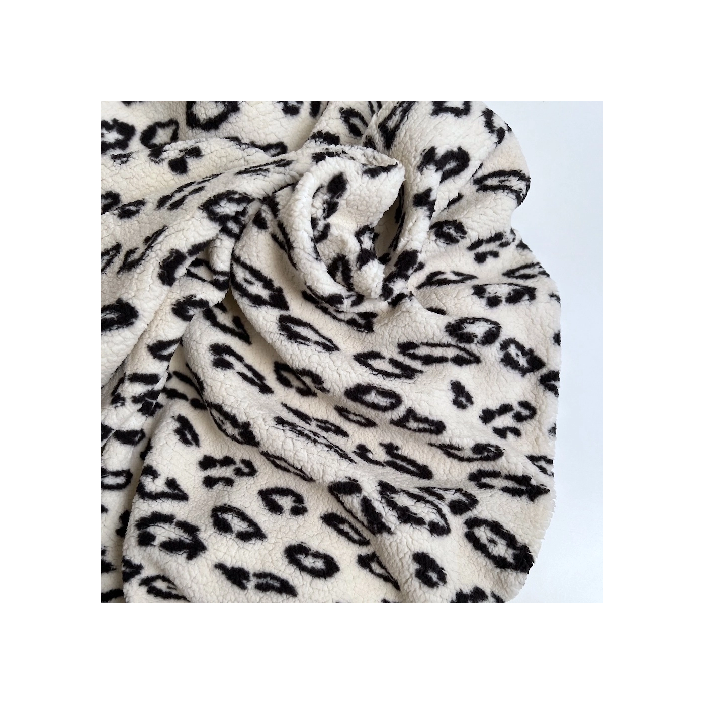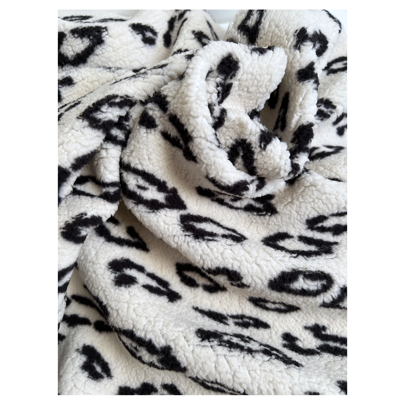 Teddy / moumoute bouclé coloris fond blanc lait motif graou noir