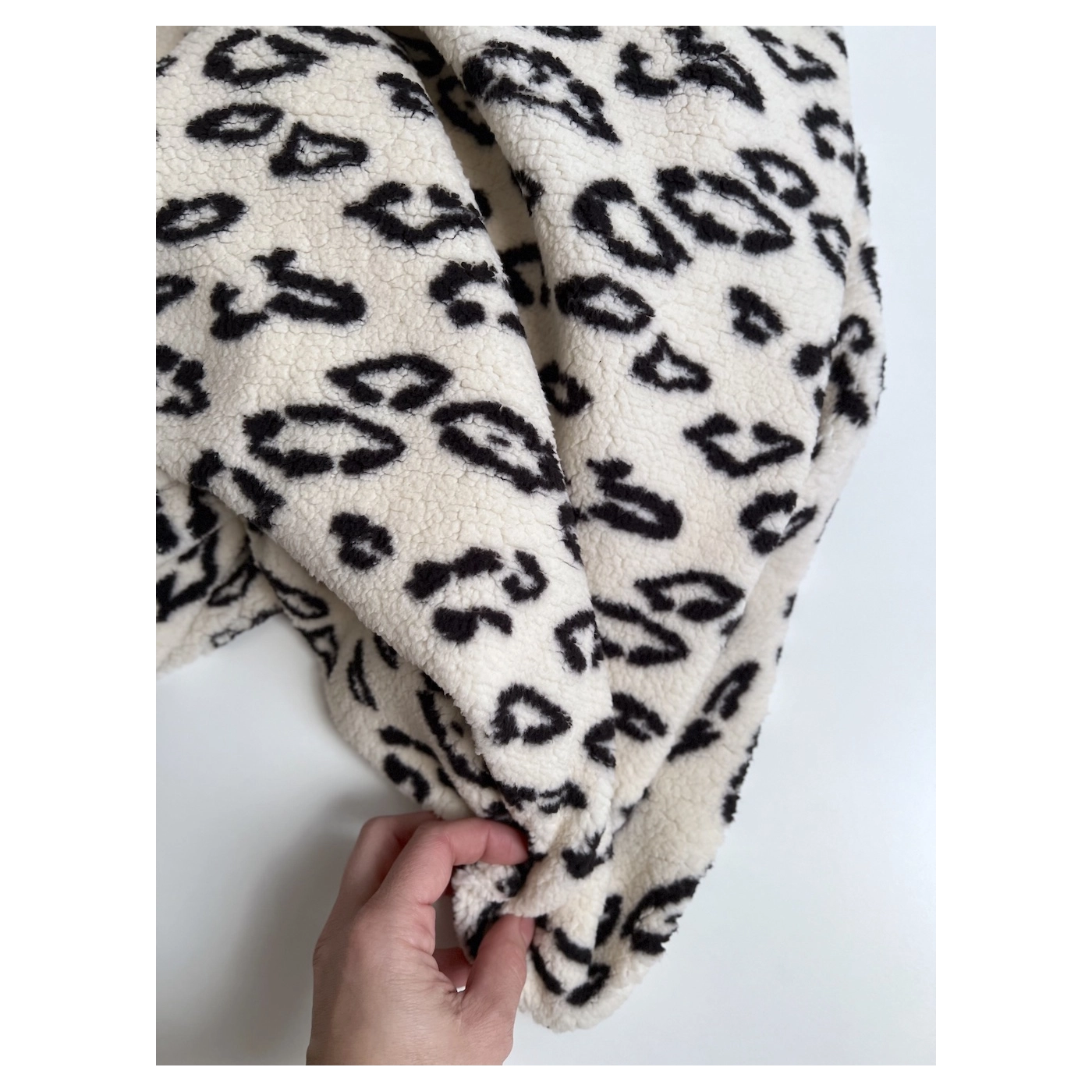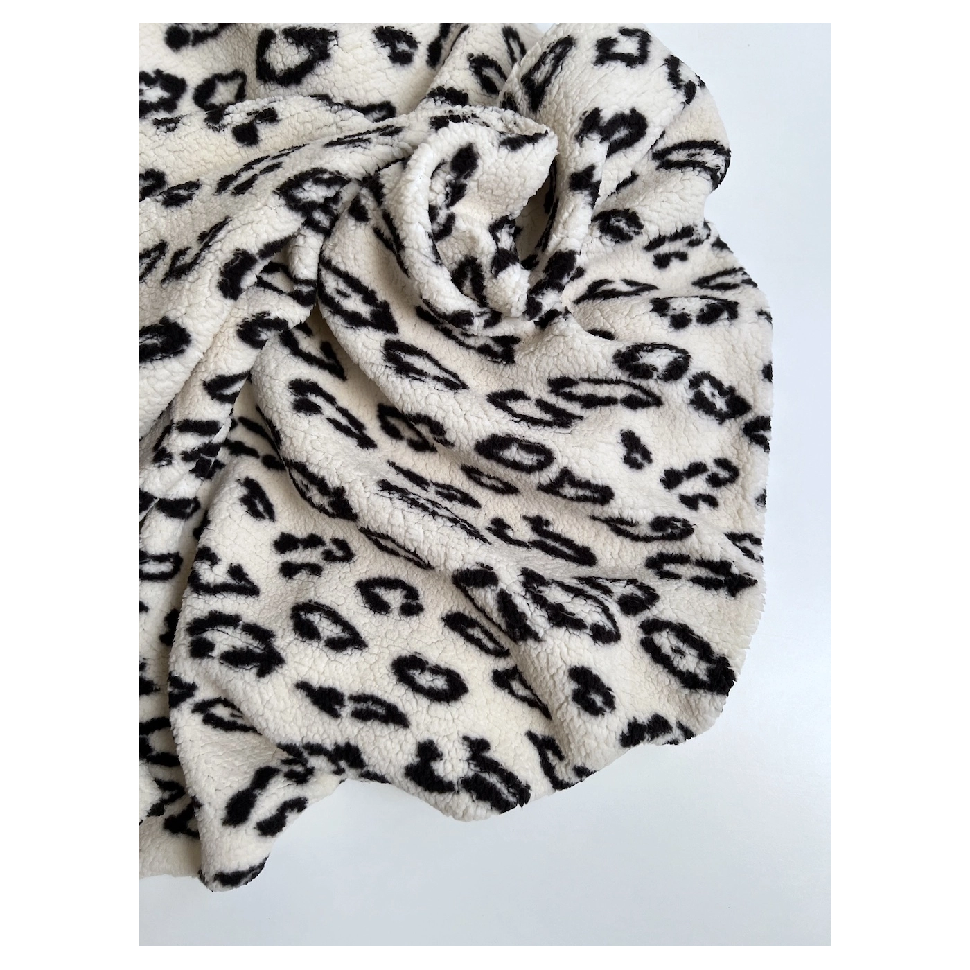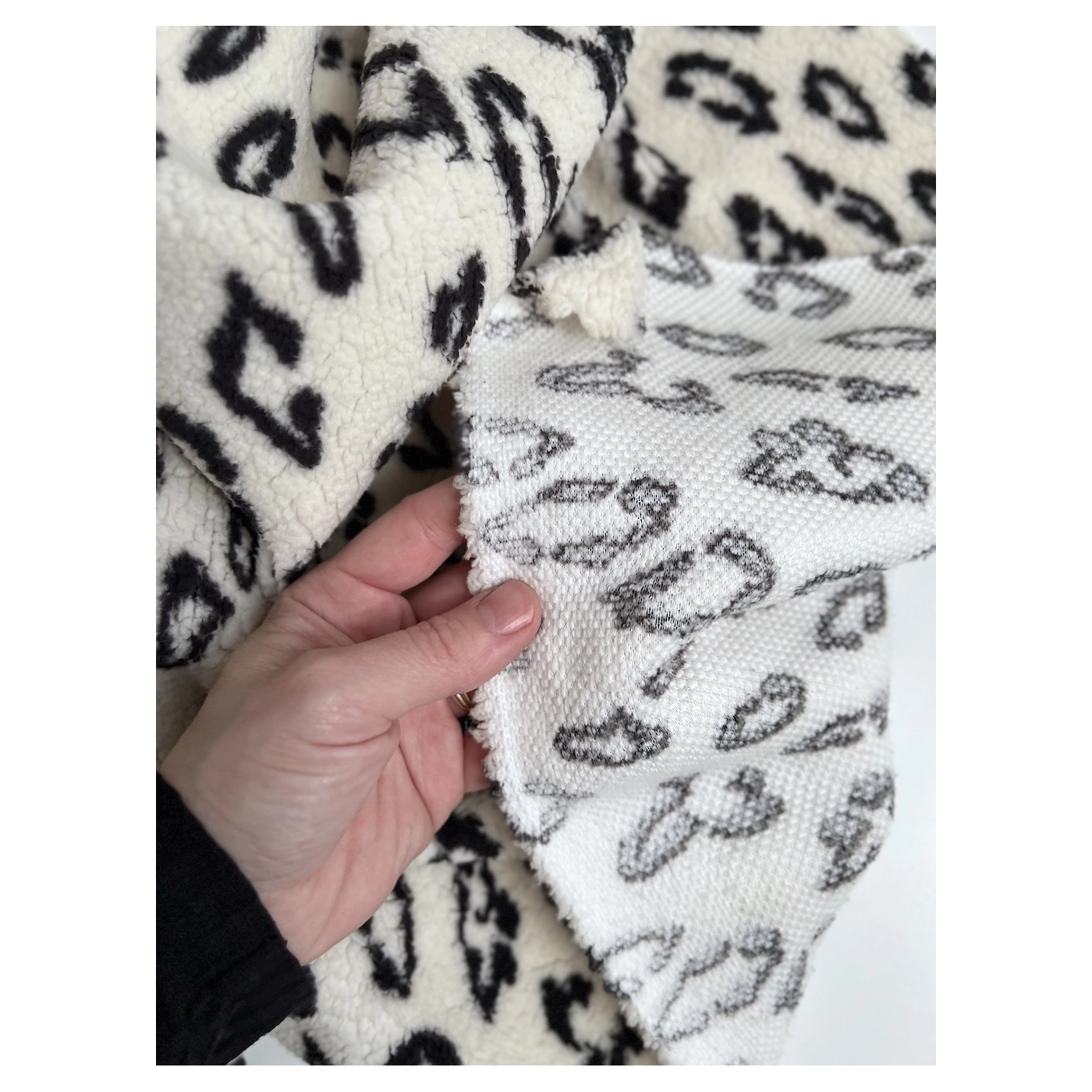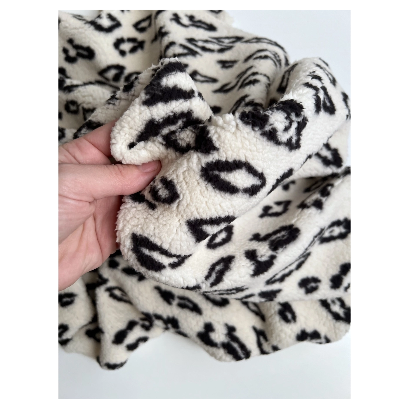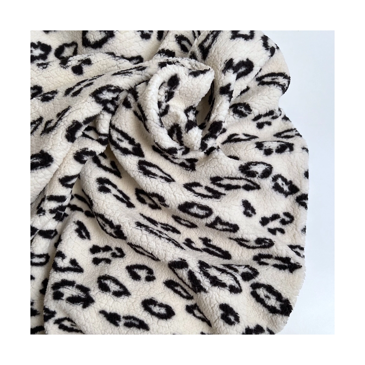 Teddy / moumoute bouclé coloris fond blanc lait motif graou noir