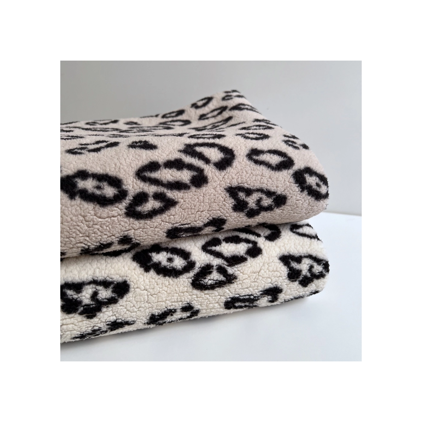 Teddy / moumoute bouclé fond grège motif fleurs