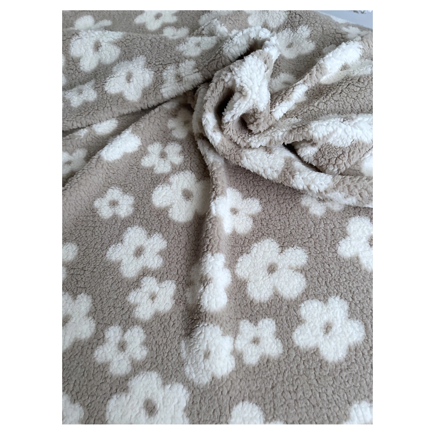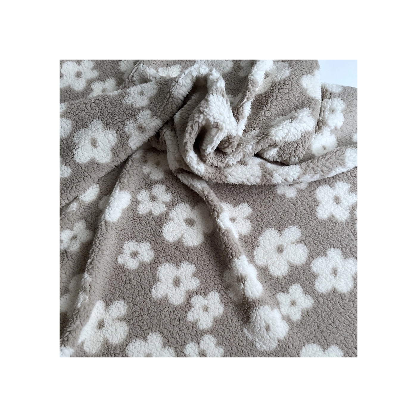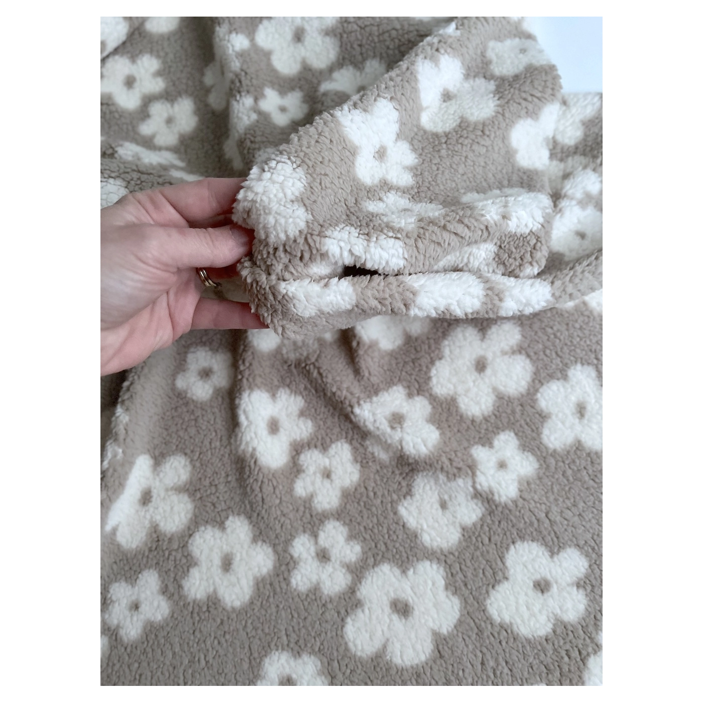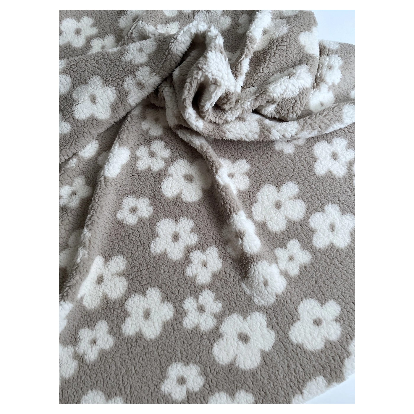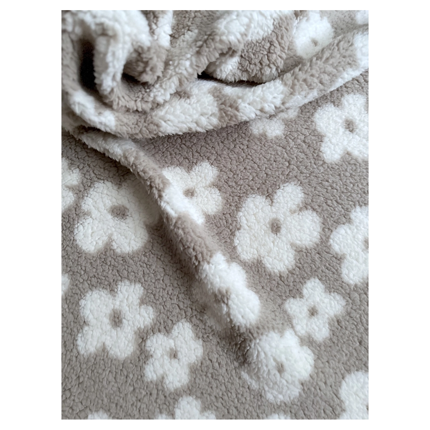 Teddy / moumoute bouclé coloris fond grège motif fleurs