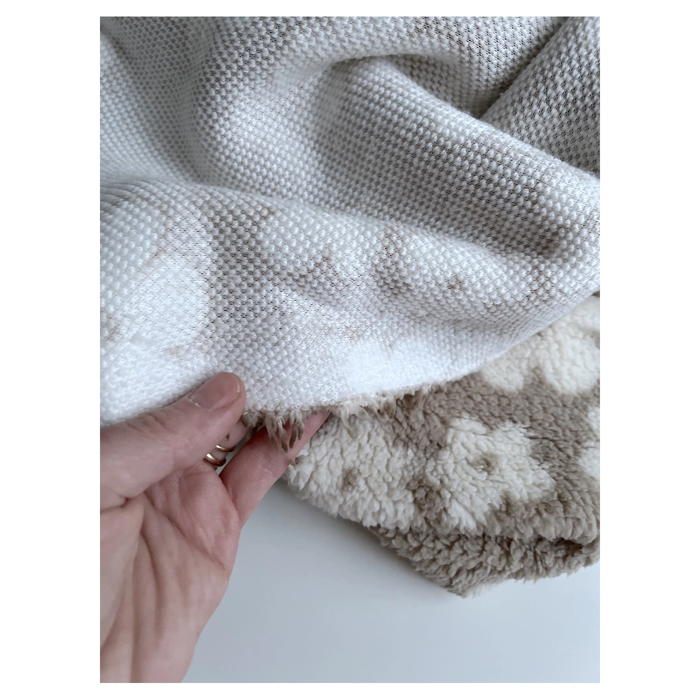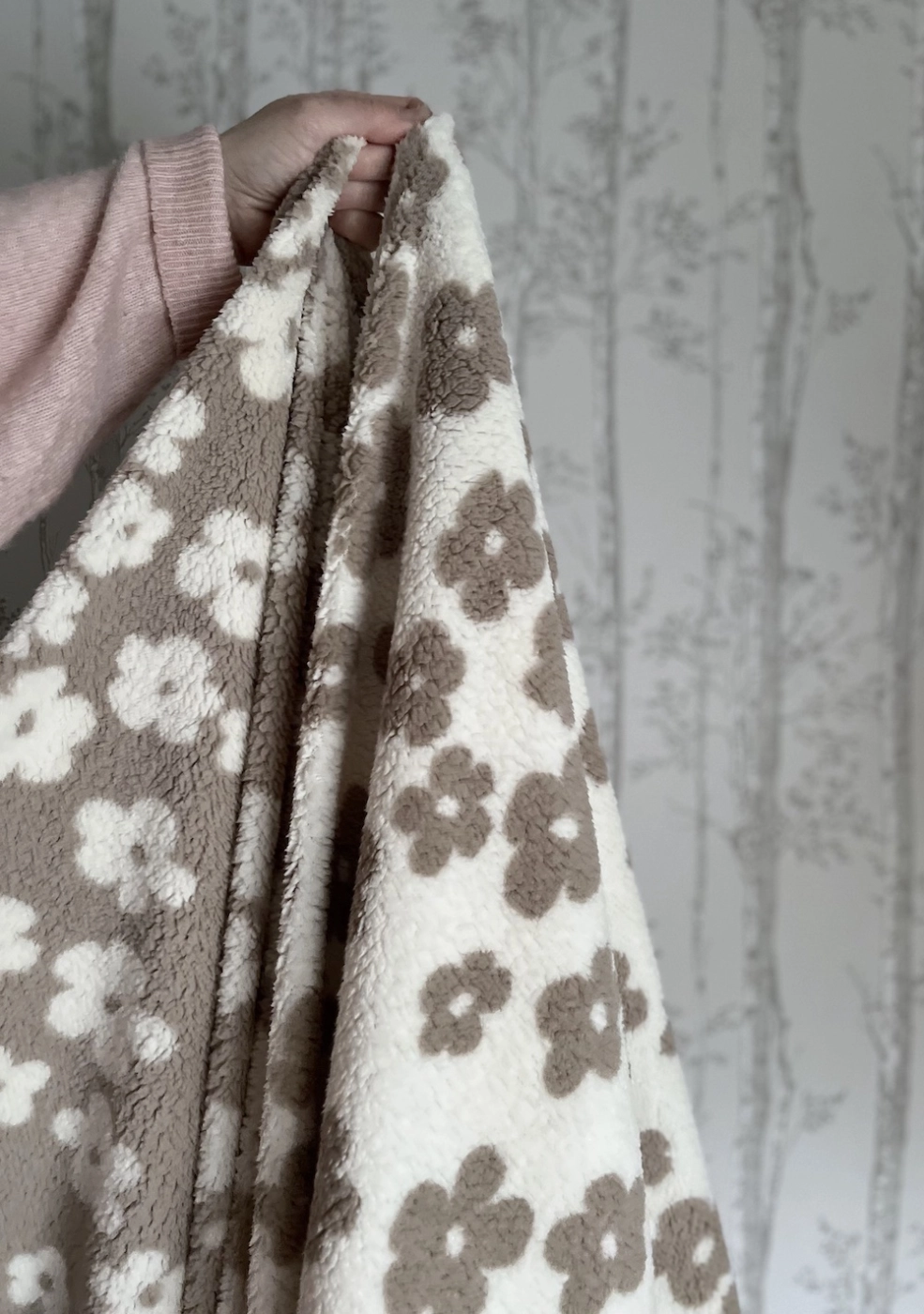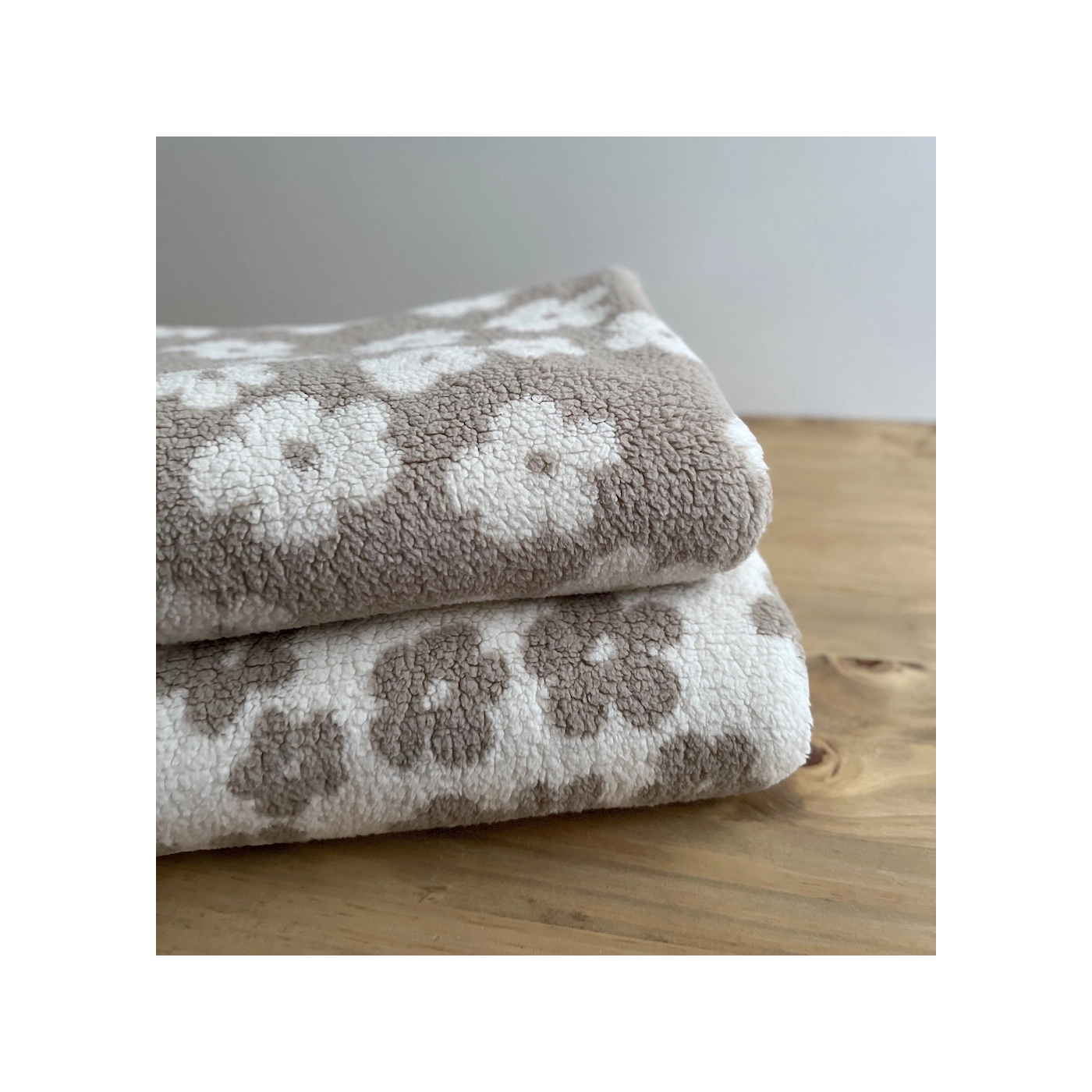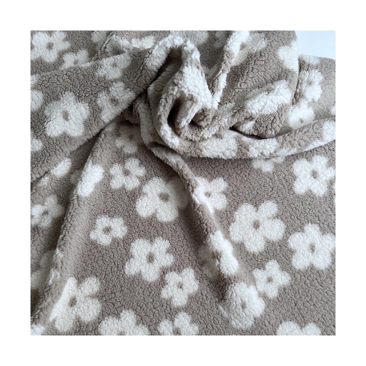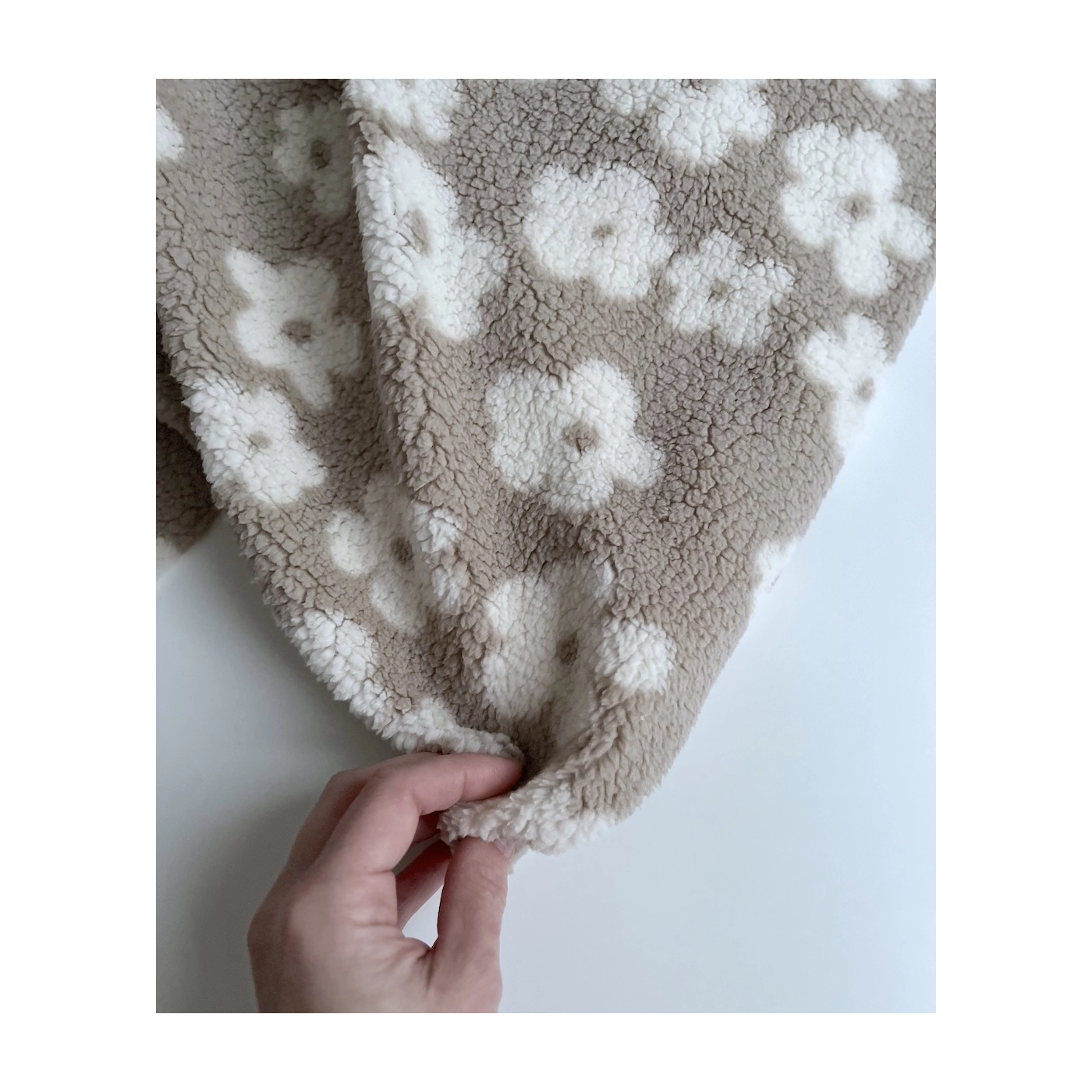 Teddy / moumoute bouclé coloris fond grège motif fleurs