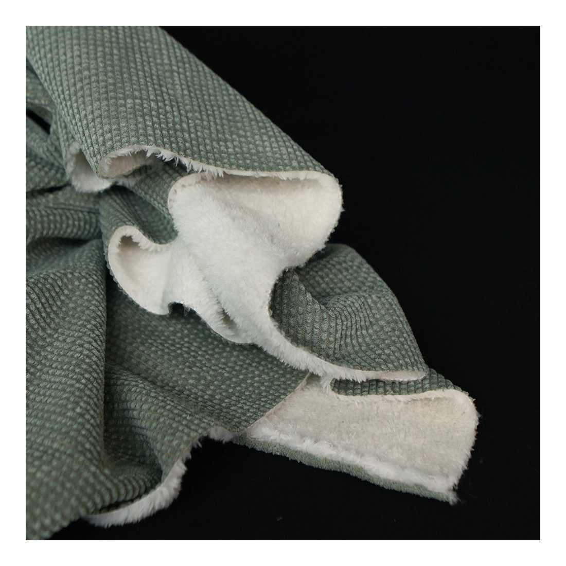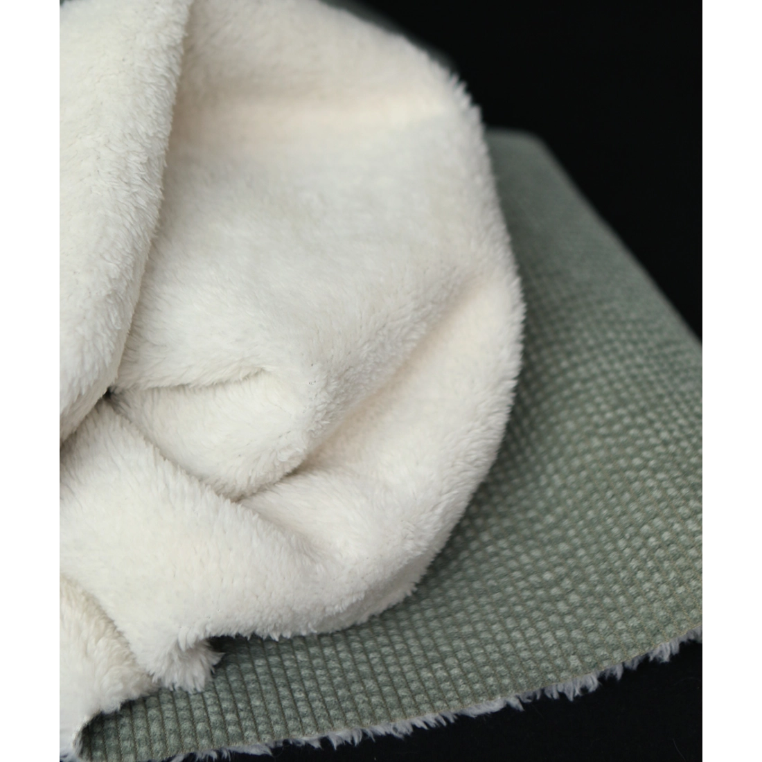 Une belle matière douillette ! Pour ce velours à côtes doublé moumoute