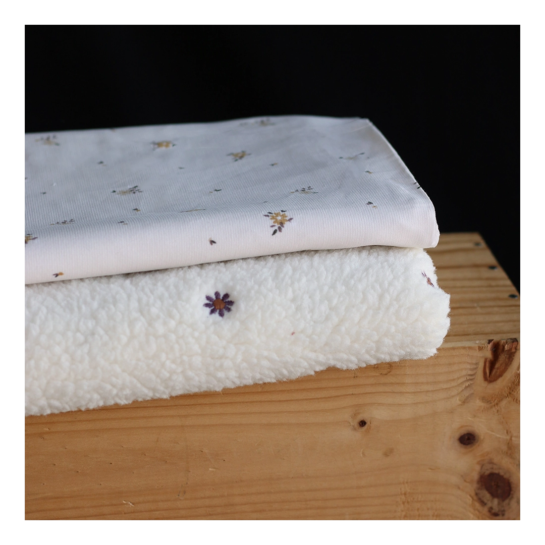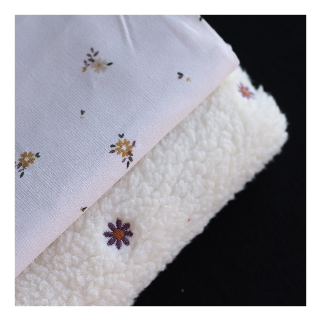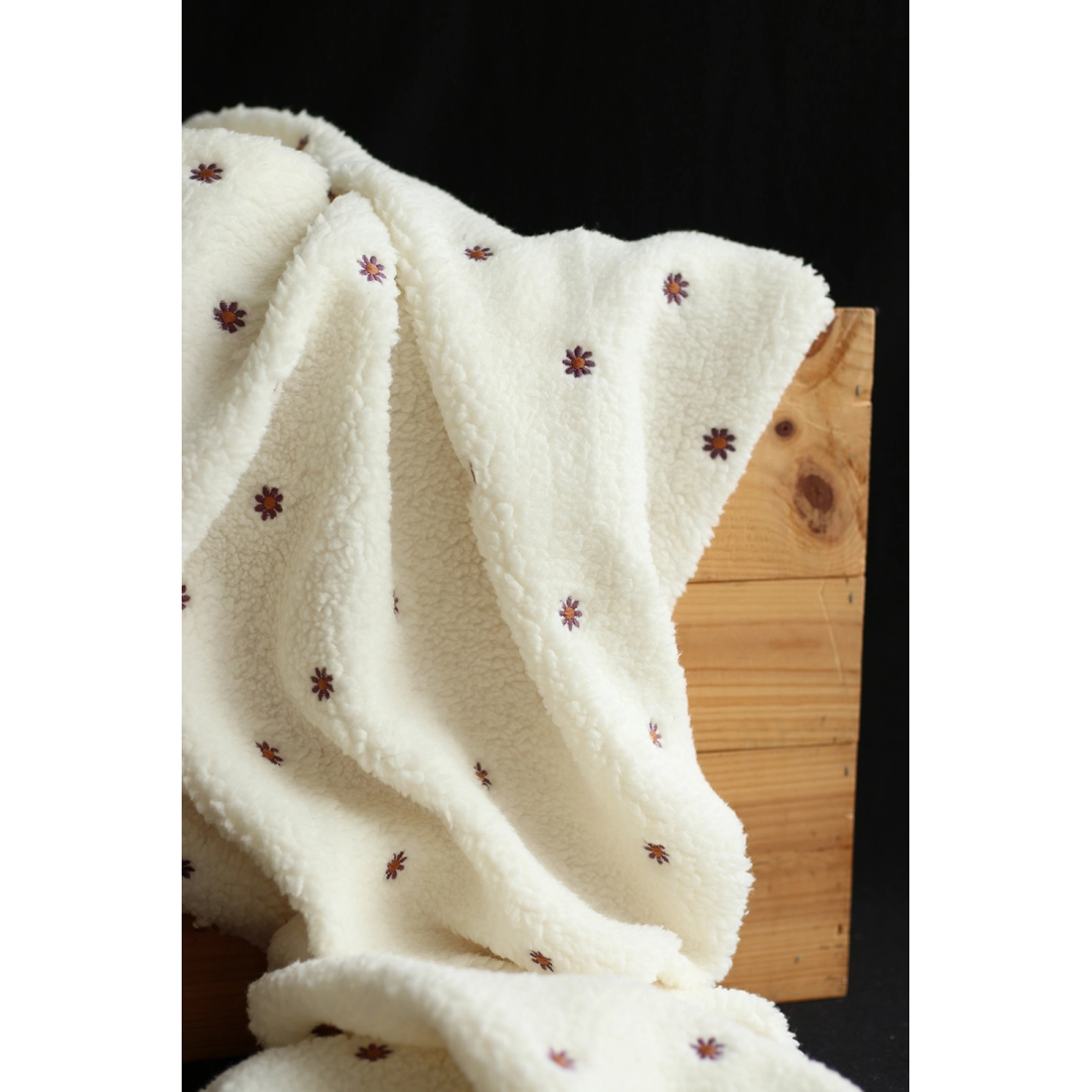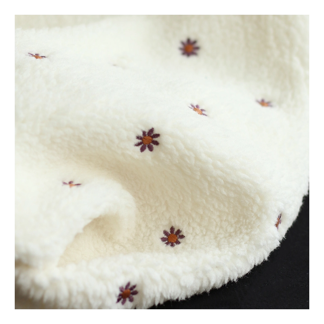 Teddy / moumoute bouclé fond écru broderies pâquerettes