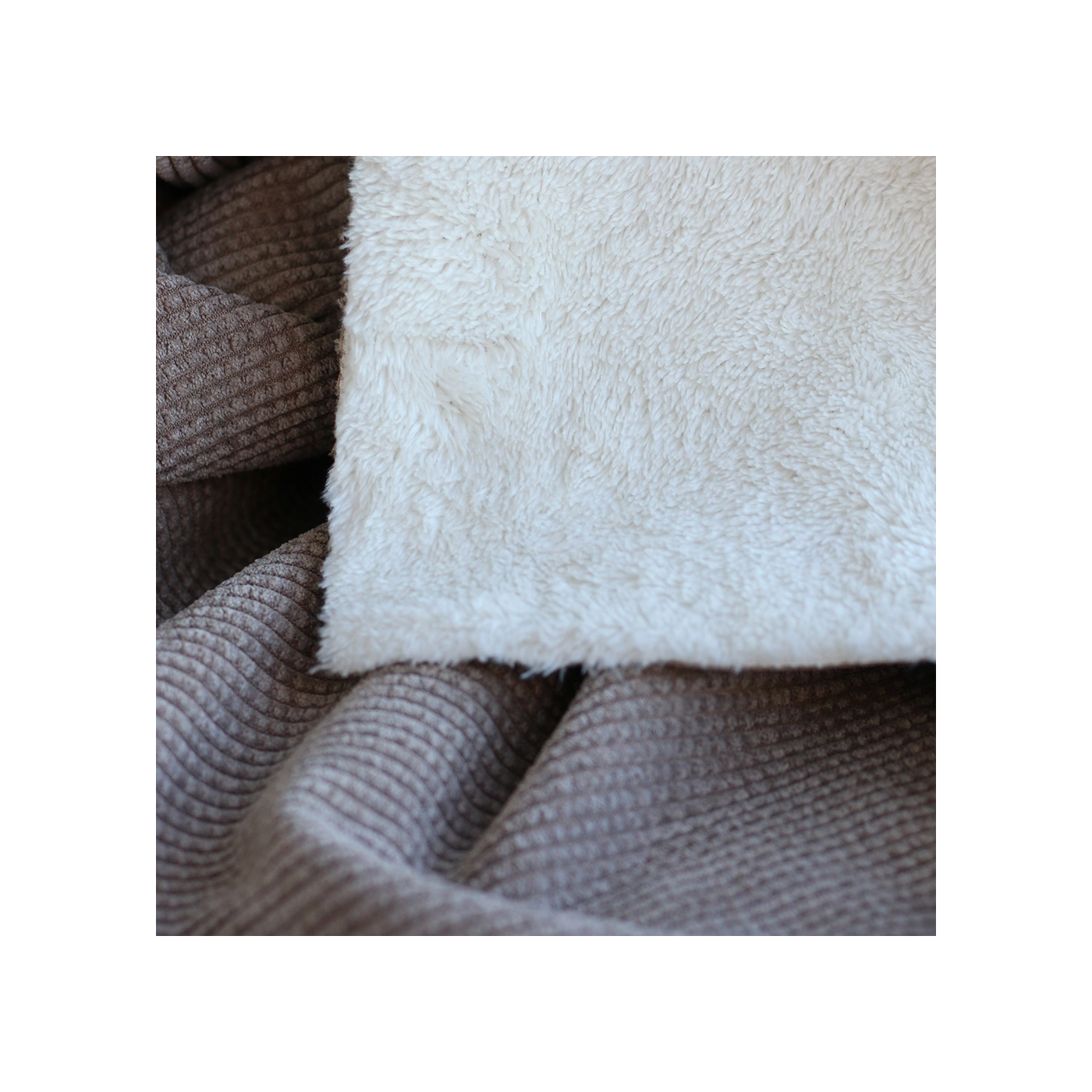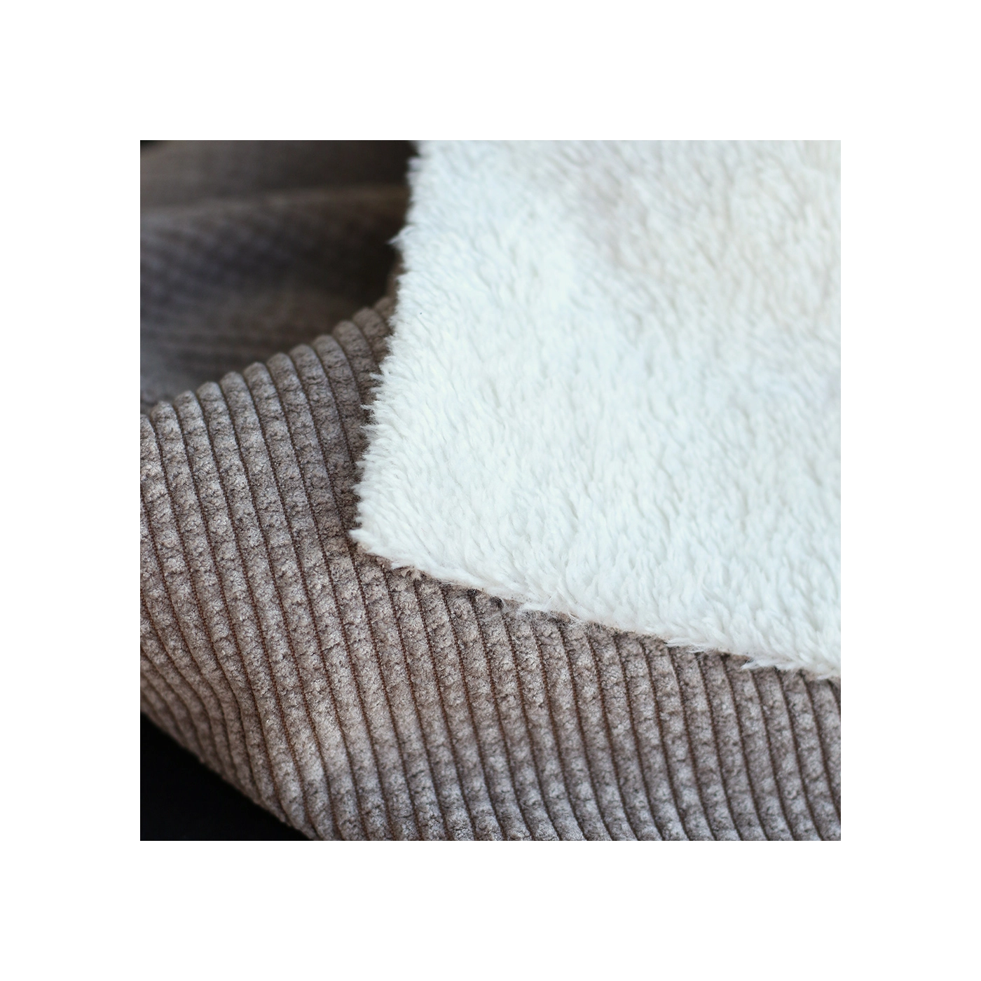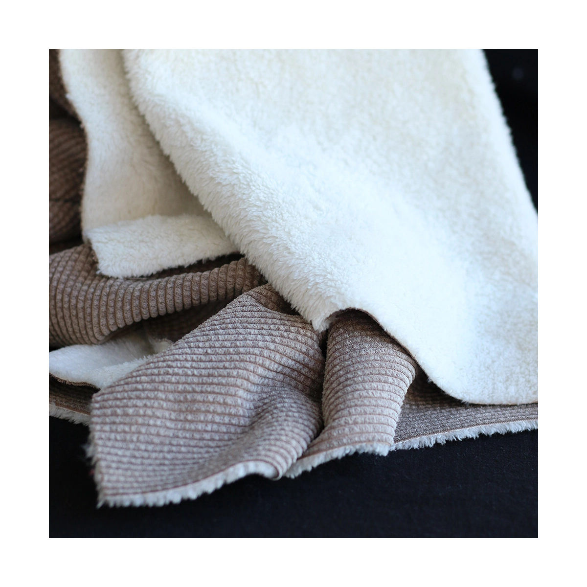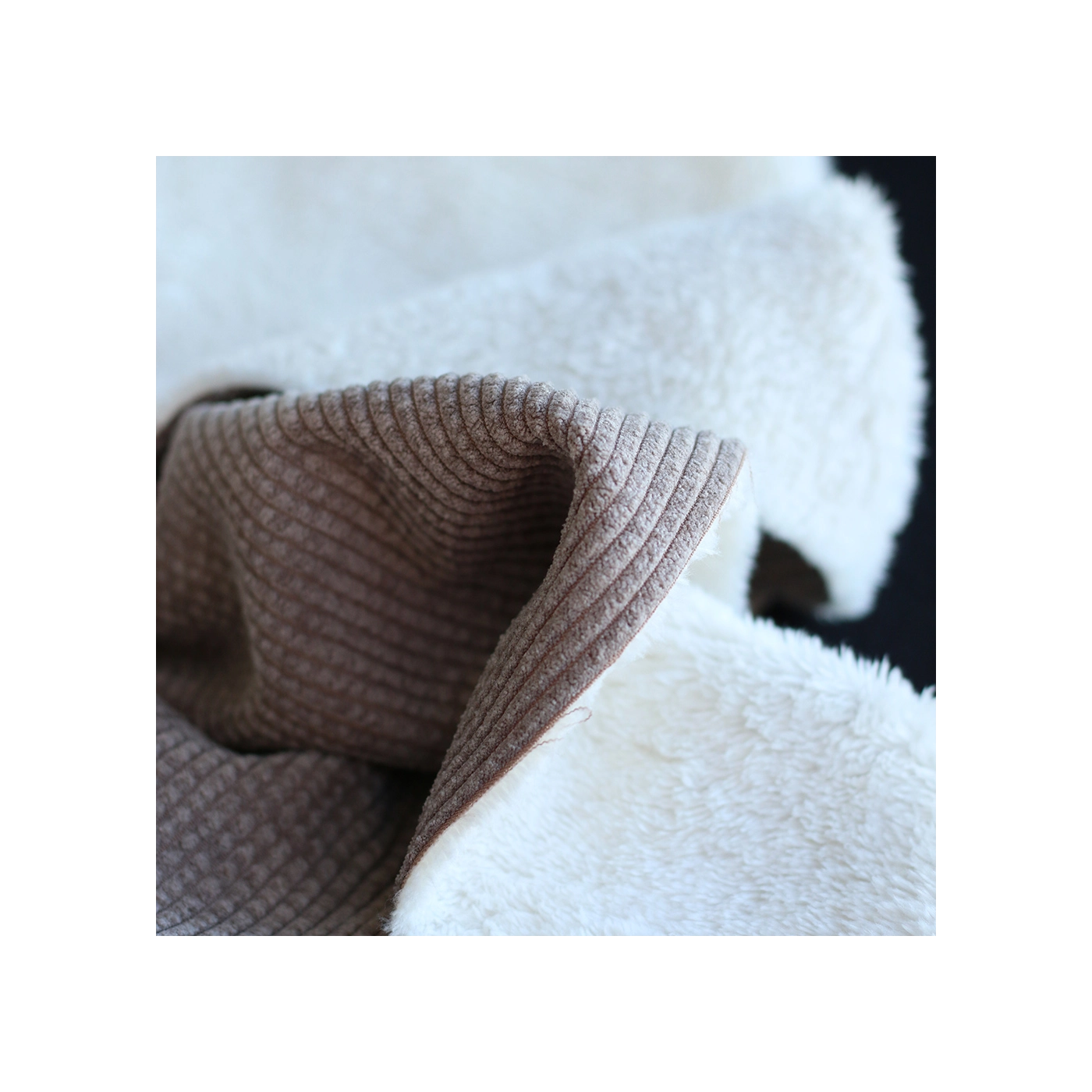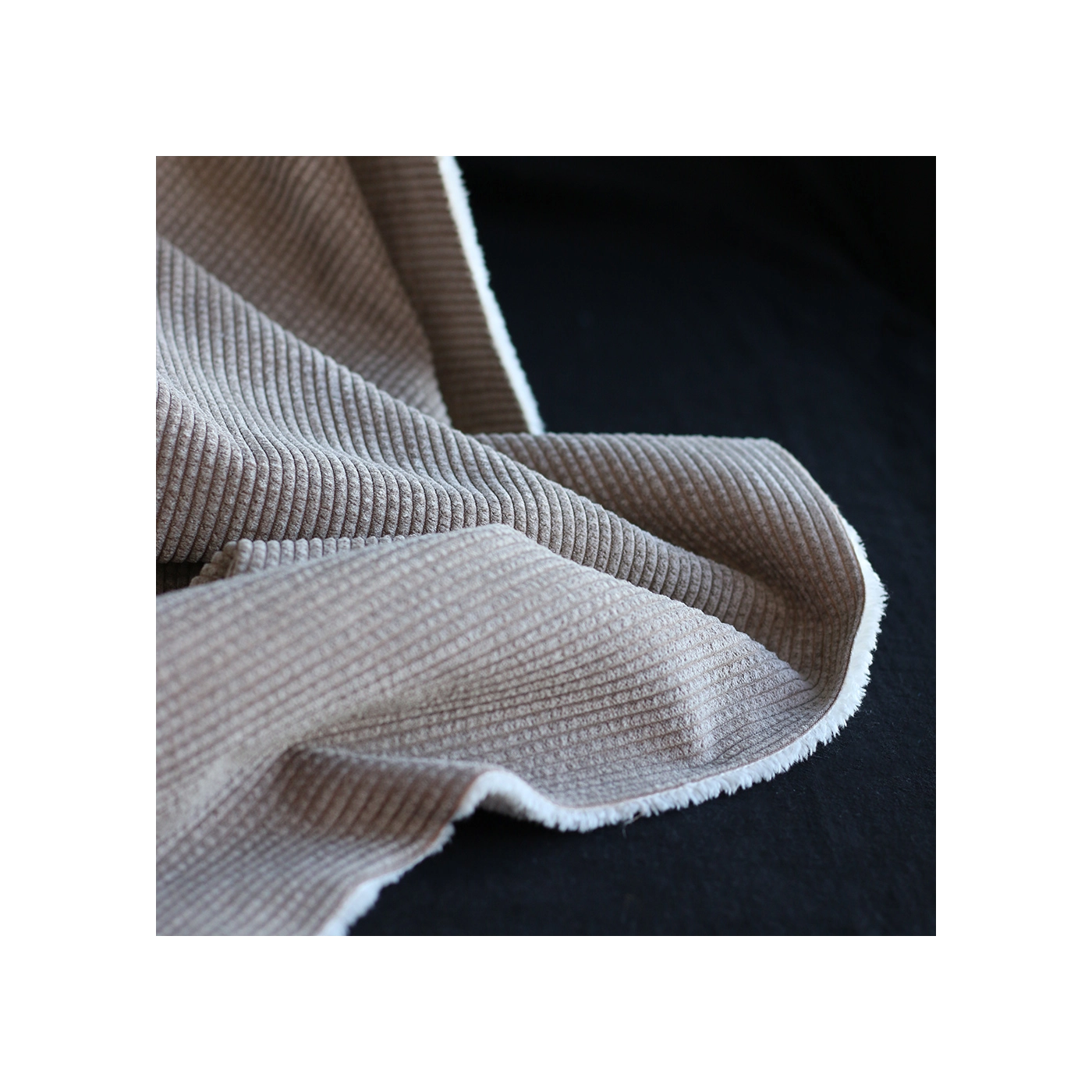 Une belle matière douillette ! Pour ce velours à côtes doublé moumoute