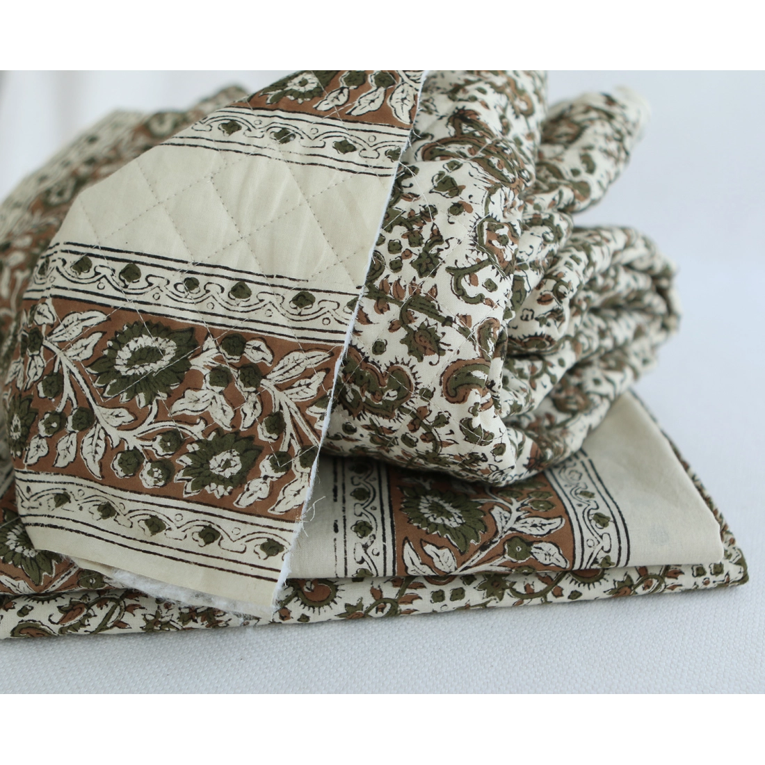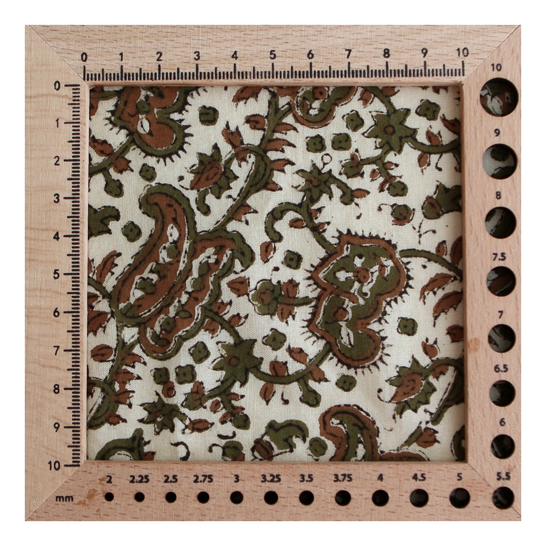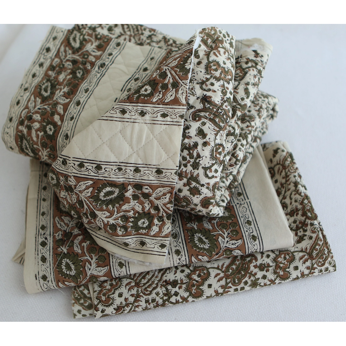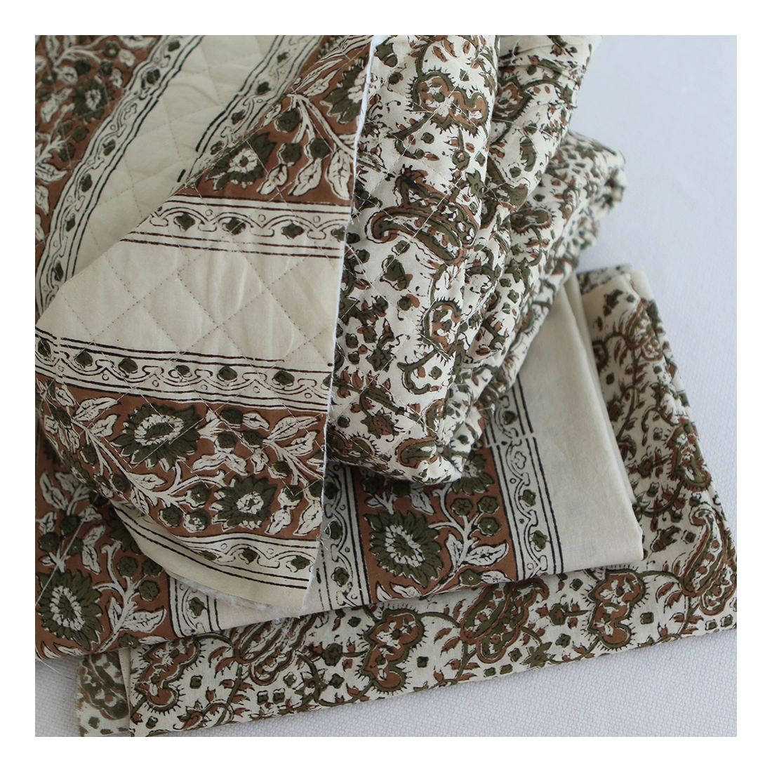 A noter que le processus artisanal (impression à la main, au tampon en bois) de ce tissu fait que chaque pièce est unique et que l'impression n'est pas aussi parfaite qu'un processus industriel.