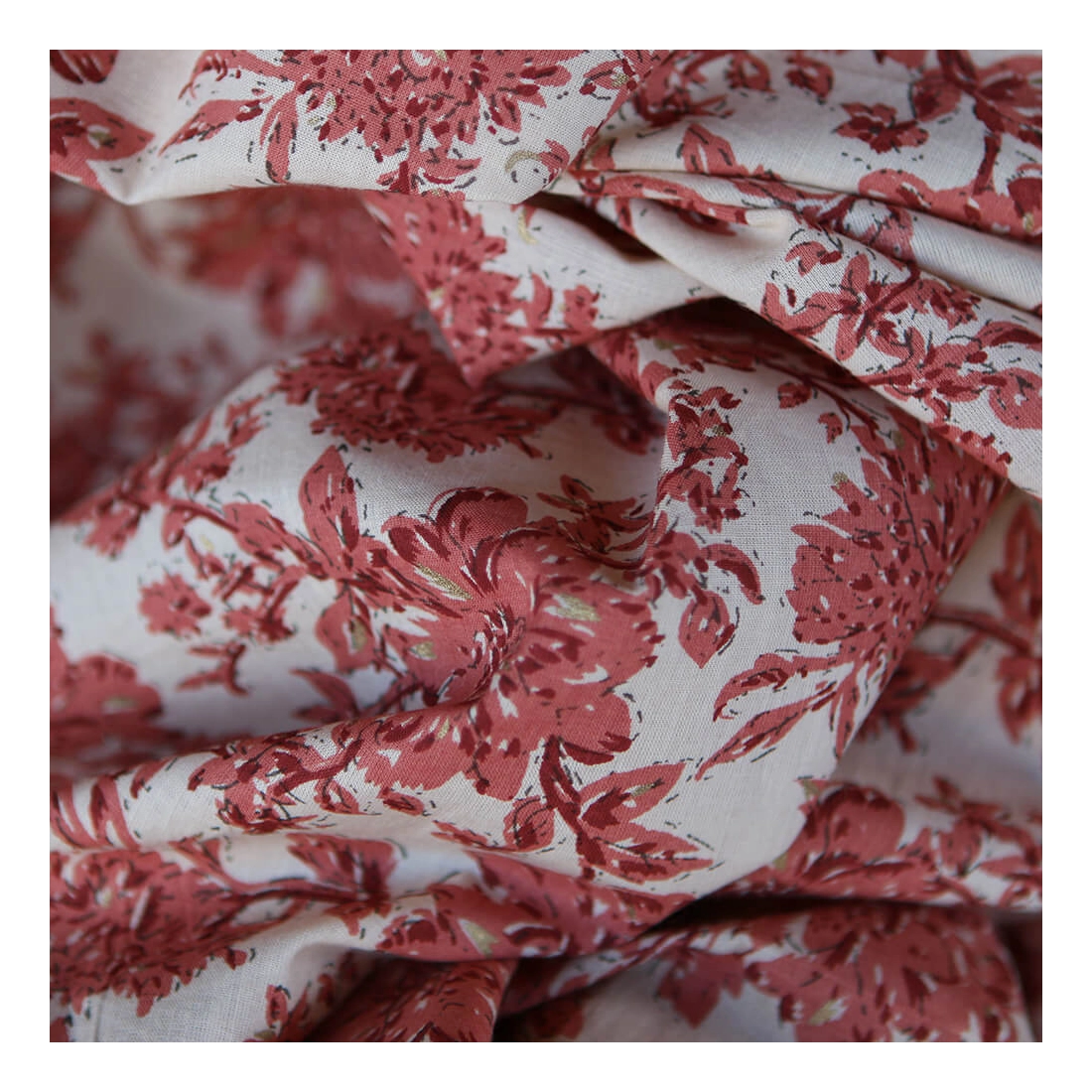 - Gamme Anjali: fond beige vintage, motifs fleuri corail ancien et délicates touches de doré