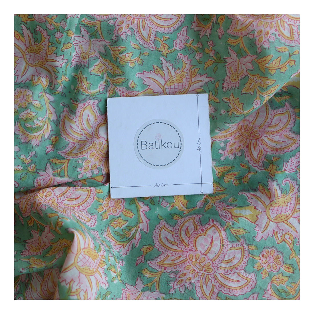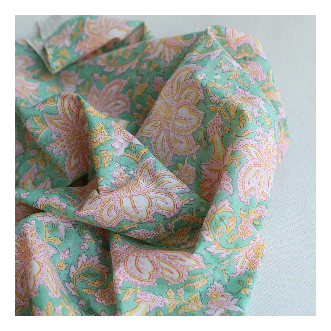 Découvrez l'authenticité et le charme du tissu indien en coton, imprimé à la main selon la technique ancestrale du block print. Ce tissu de qualité supérieure est idéal pour ajouter une touche exotique et artisanale à vos créations.