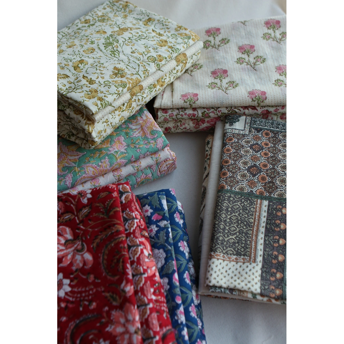 Nalini - Tissu indien en coton imprimé main Hand Block Artisanal