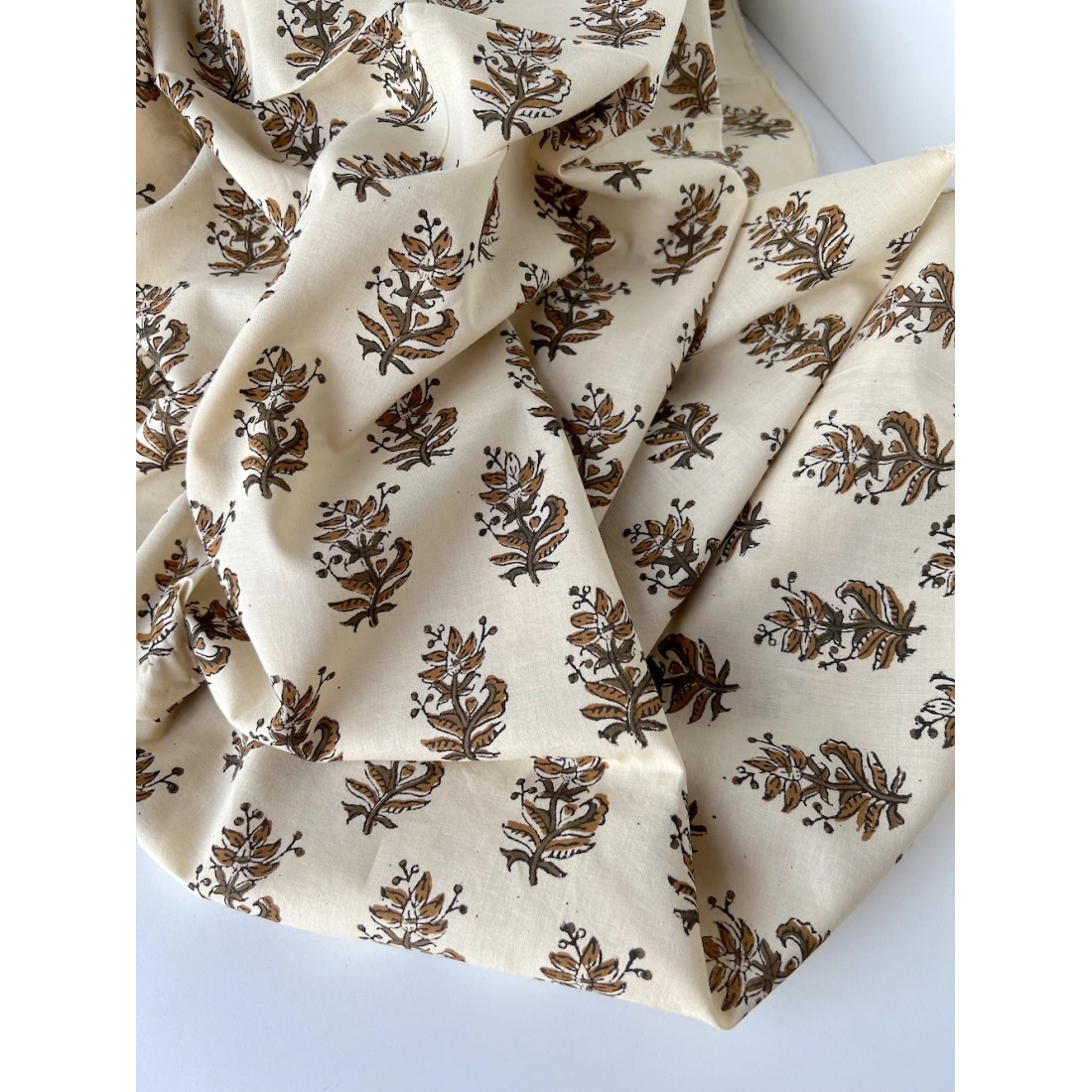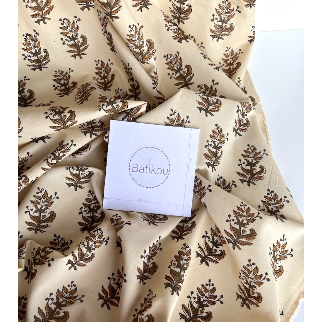 Coupon de 50 cm de Tissu indien coton hand block traditionnel kaki / écru