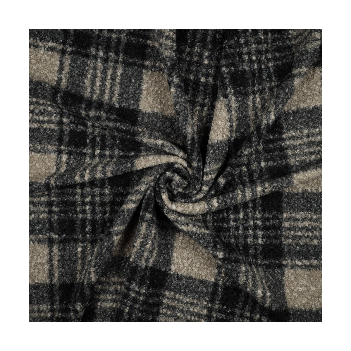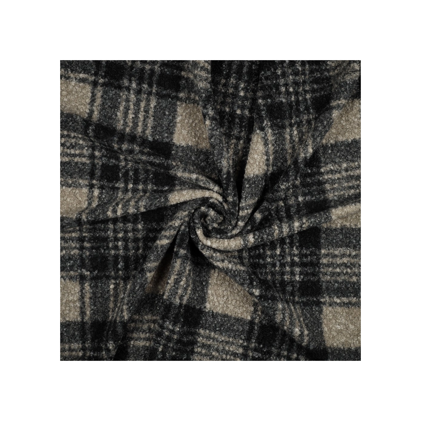Coupon de 62 cm Teddy / moumoute bouclé motif gros quadrillage tartan anthracite