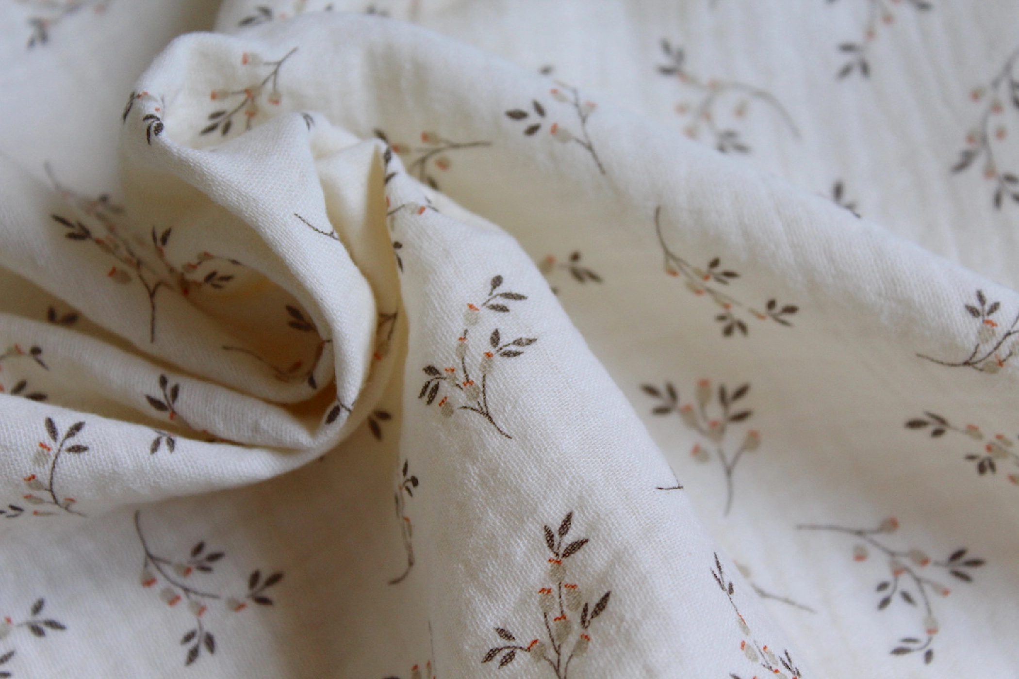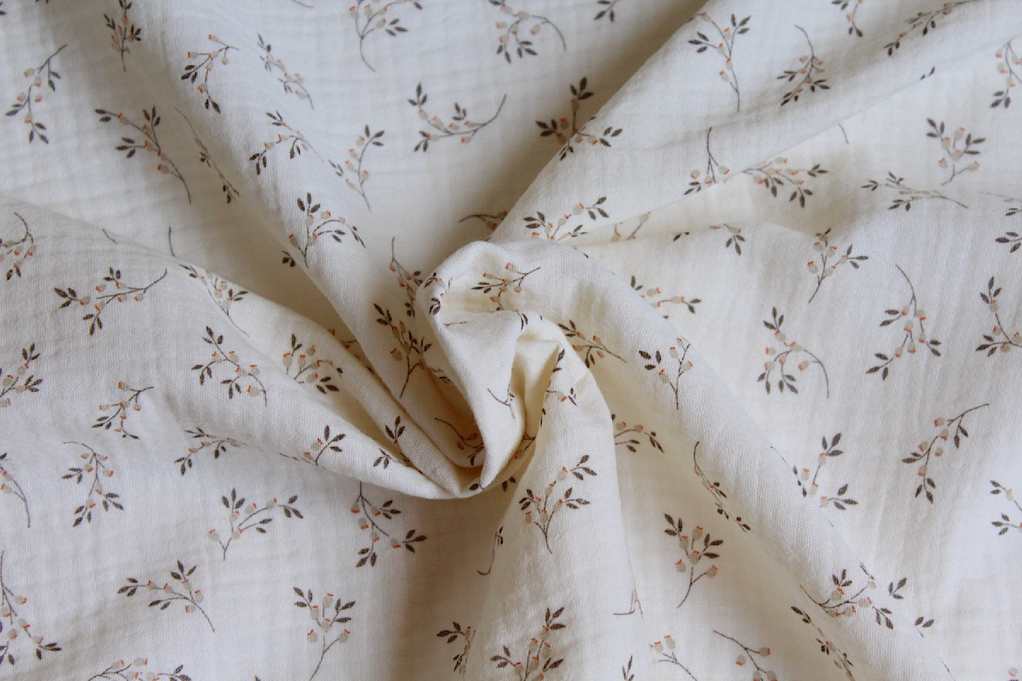 Coupon de 74 cm x 49 cm de laize de Thaïs - Double gaze de coton BIO écru à motifs fleuris