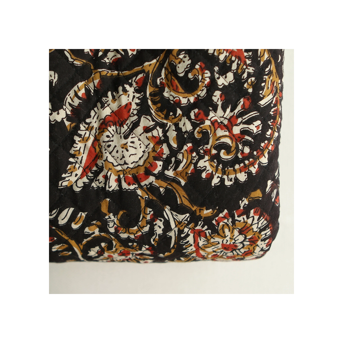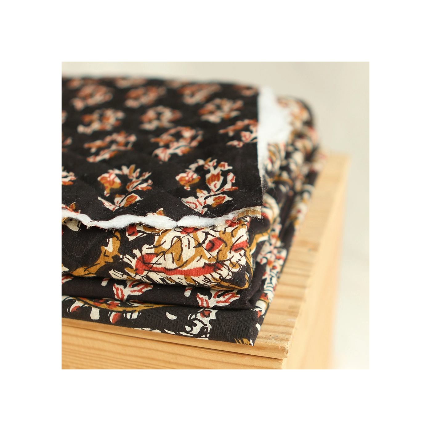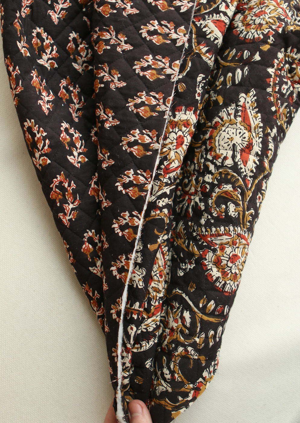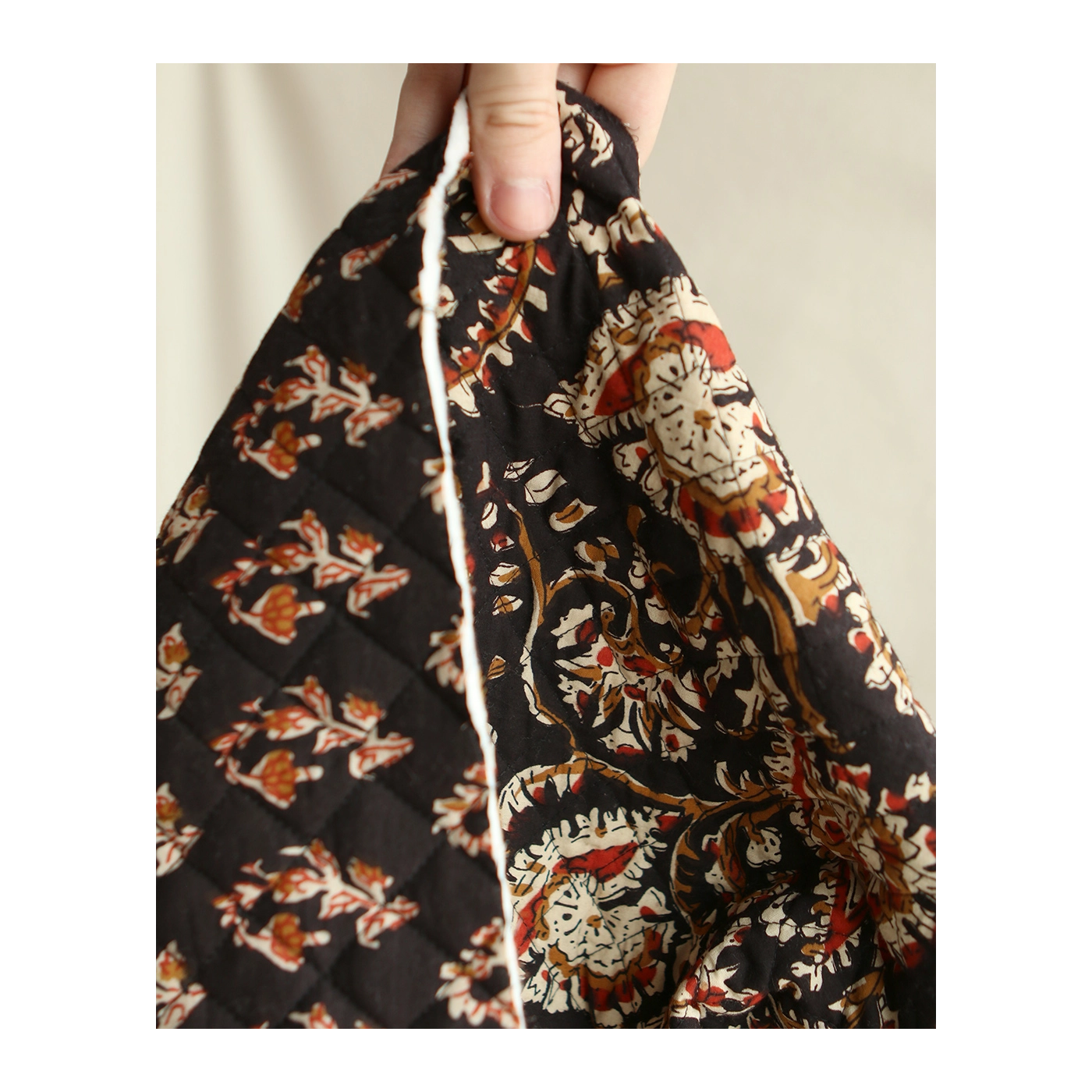 - A noter que le processus artisanal (impression à la main, au tampon en bois) de ce tissu fait que chaque pièce est unique et que l'impression et le matelassage ne sont pas aussi parfaits qu'un processus industriel.