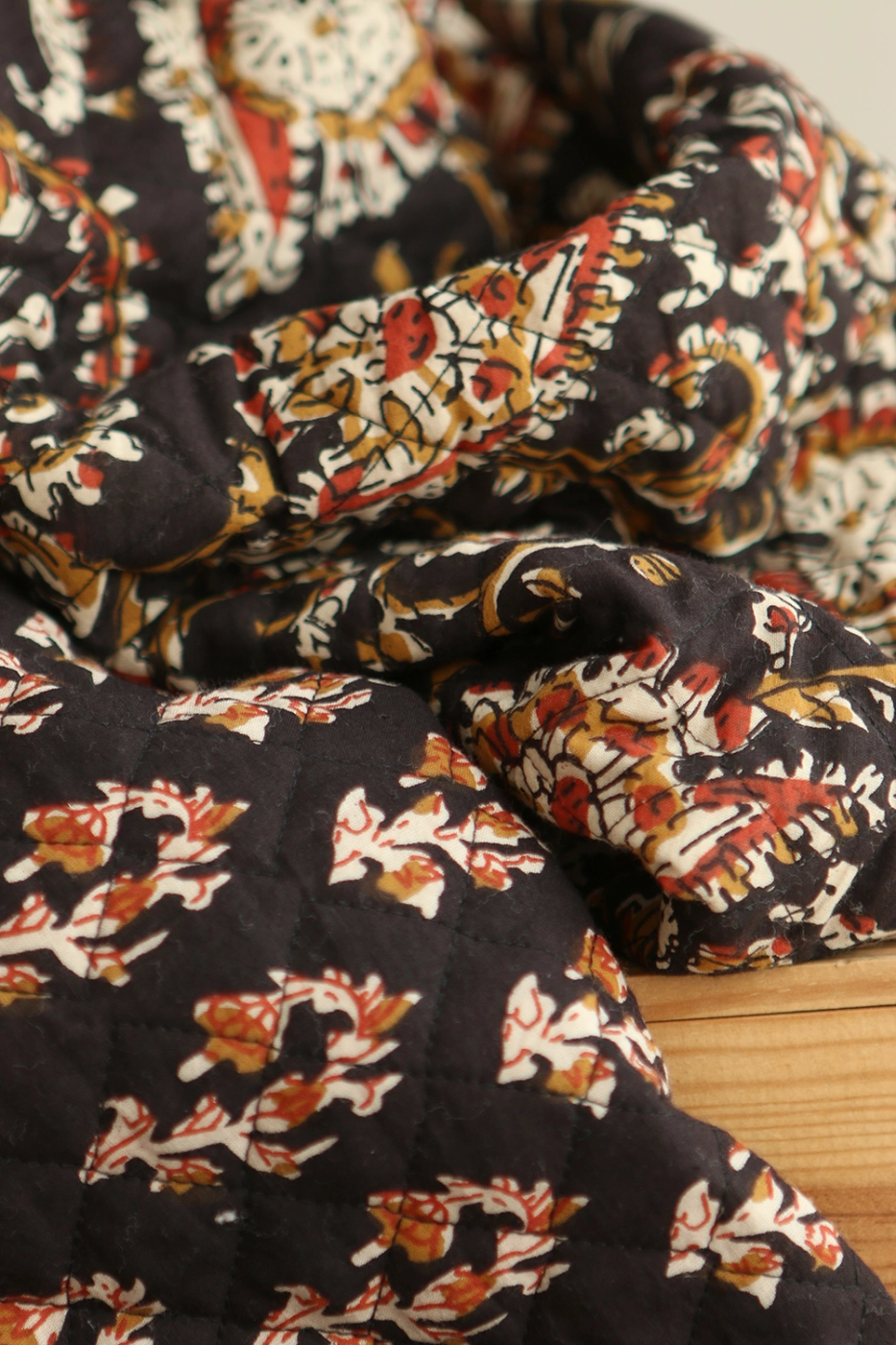 Coupon de 43 cm de Kajal - Tissu indien matelassé double face coton hand block largeur 100cm