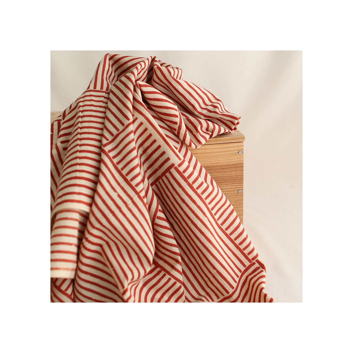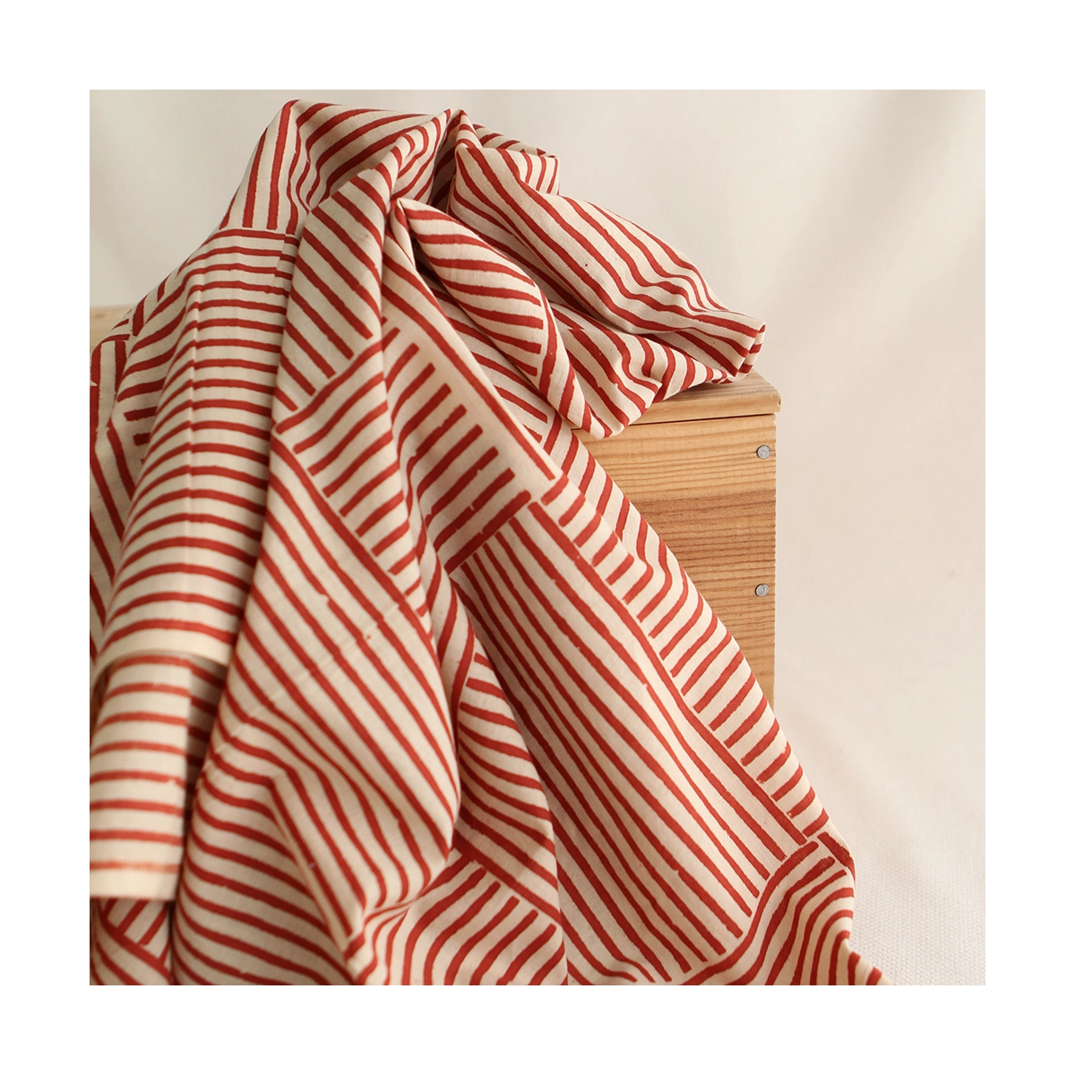 Coupon de 83 cm de Rayures cubiques - Tissu indien coton hand block traditionnel