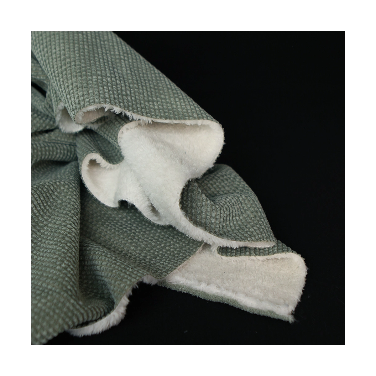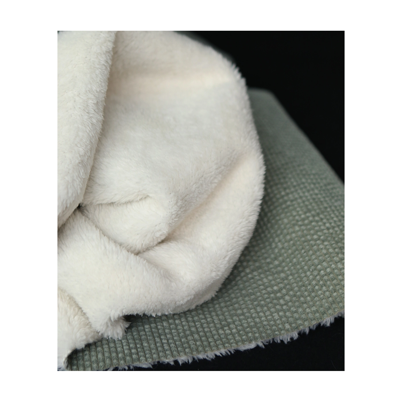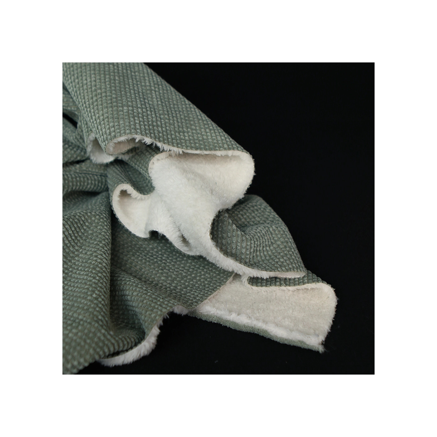 Coupon de 125 cm x 132 cm de laize Norton - Velours à côtes doublé moumoute / fourrure sauge