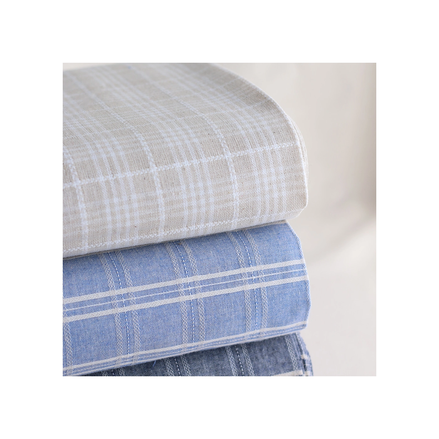 Coupon de 29 cm de Tissu coton et viscose texturé quadrillage blanc et bleu nuage