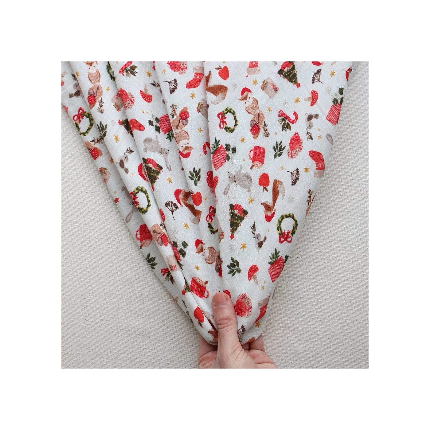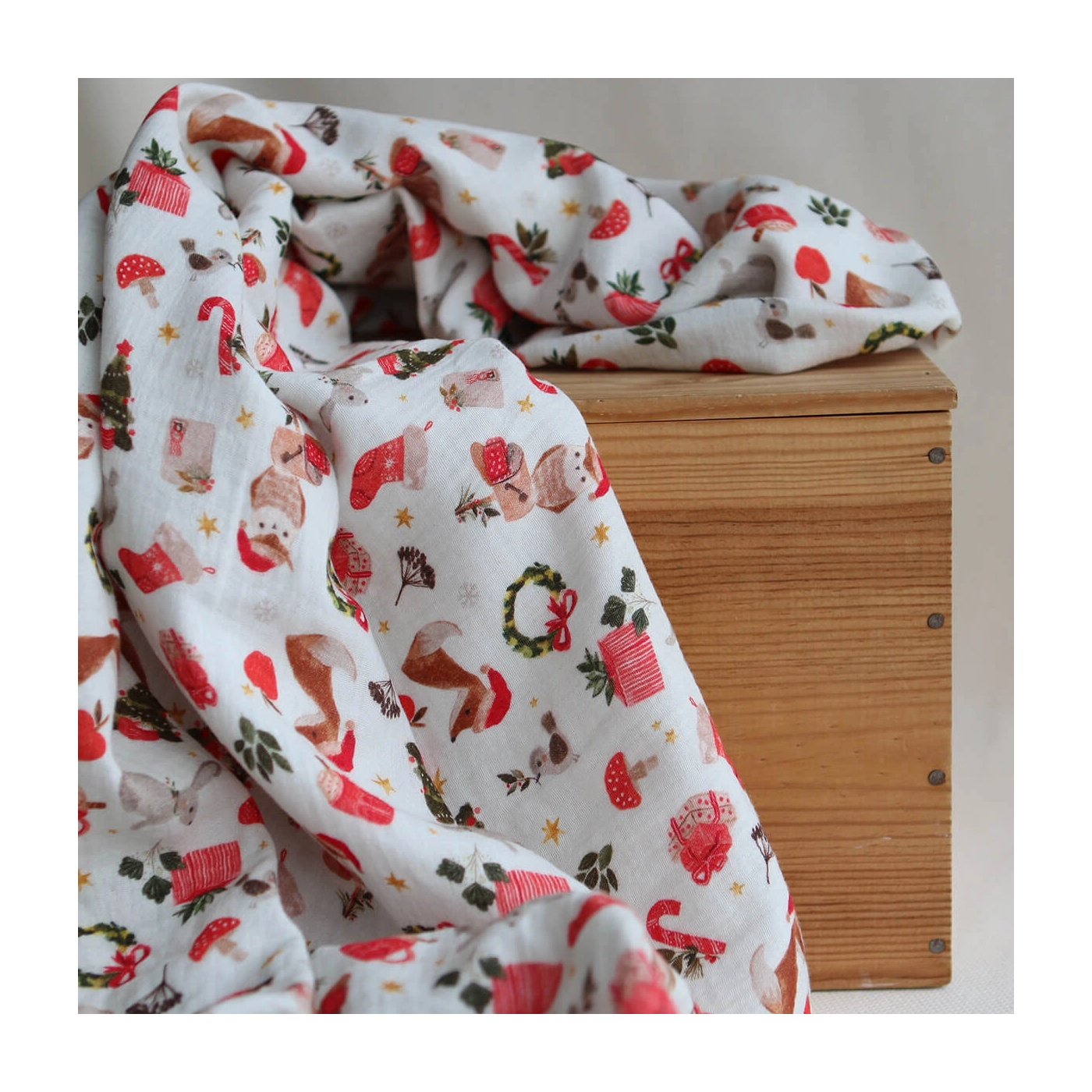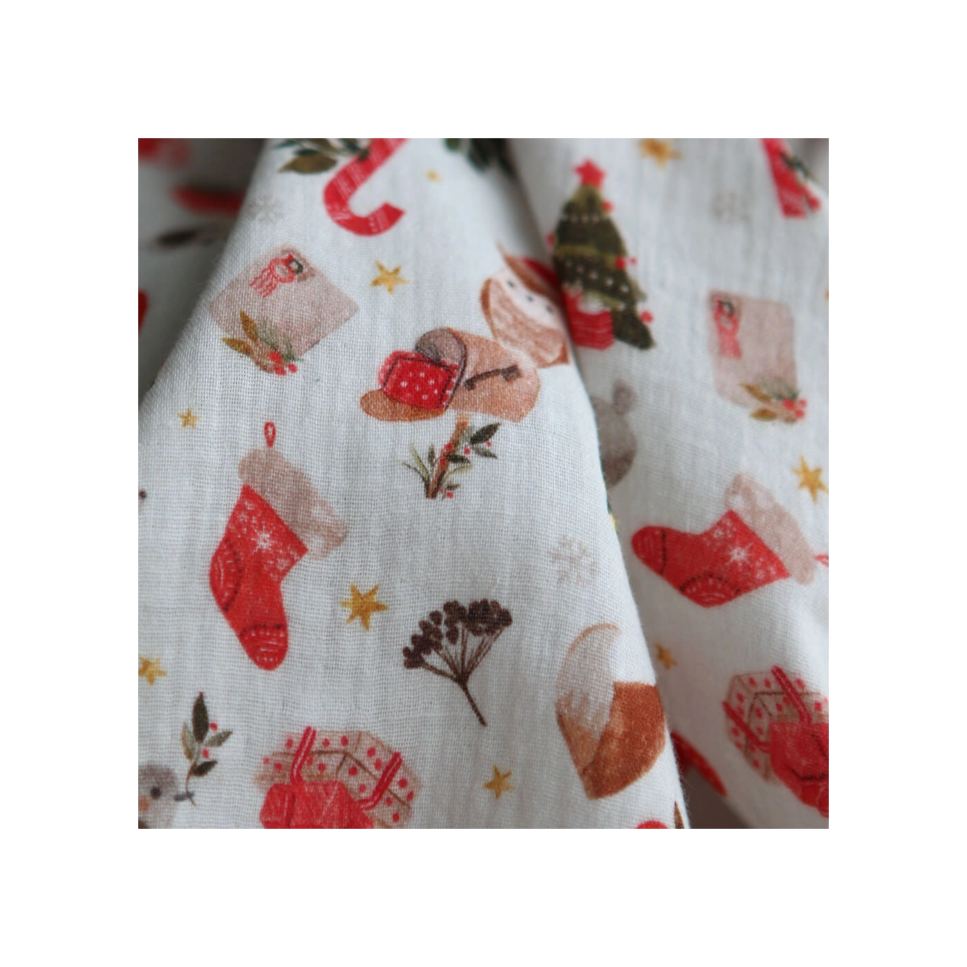 Coupon de 110 cm de Goupix - Double gaze de coton fond crème motif fleuri