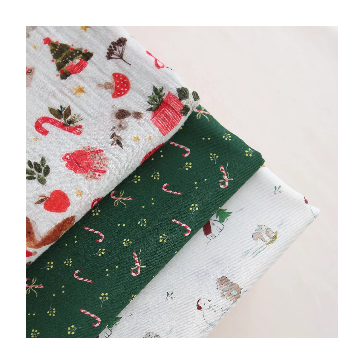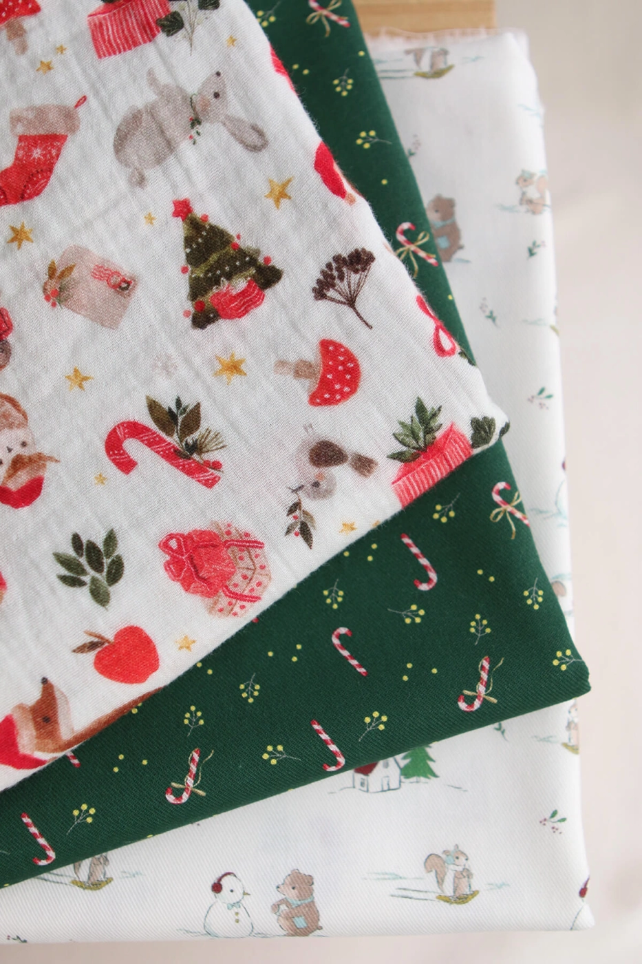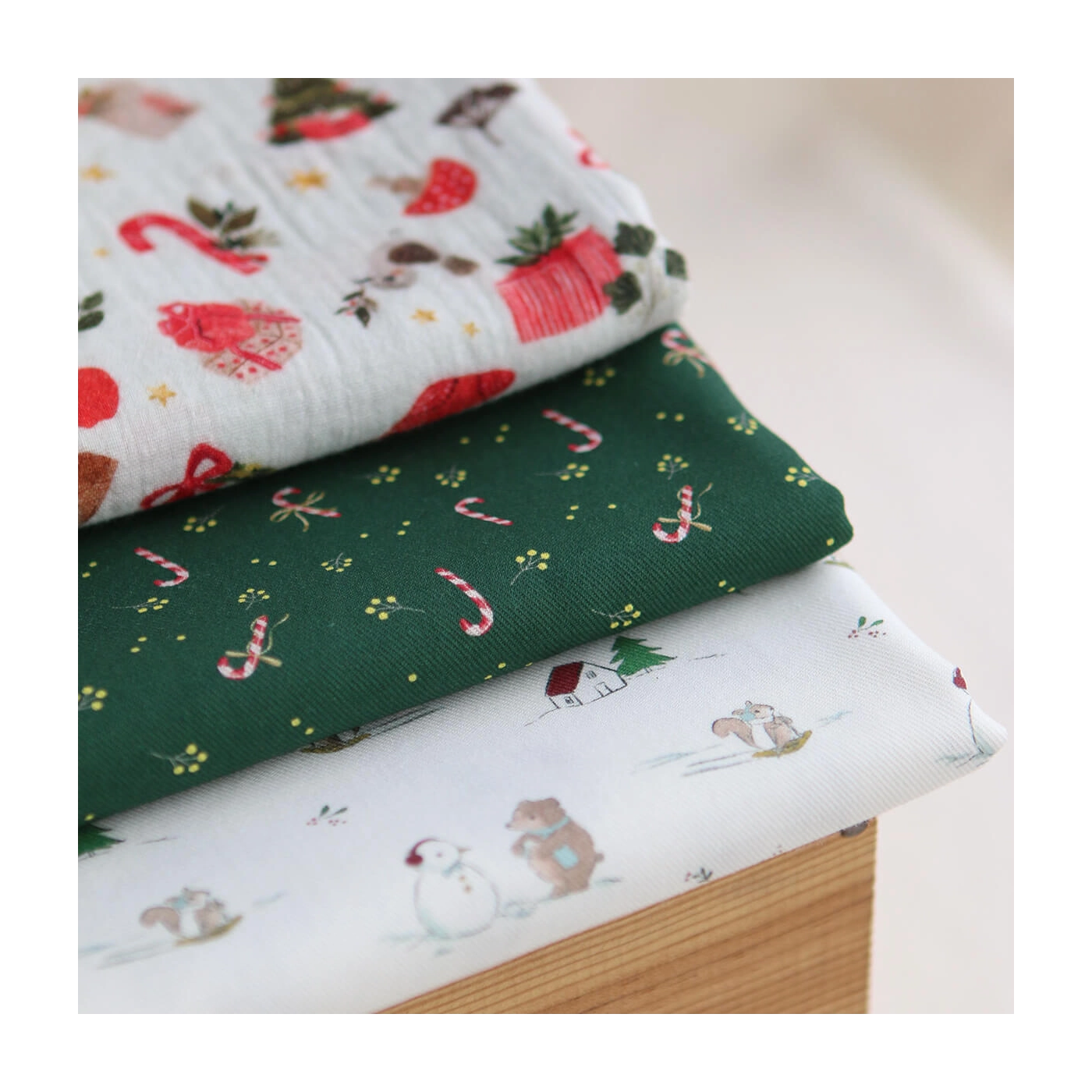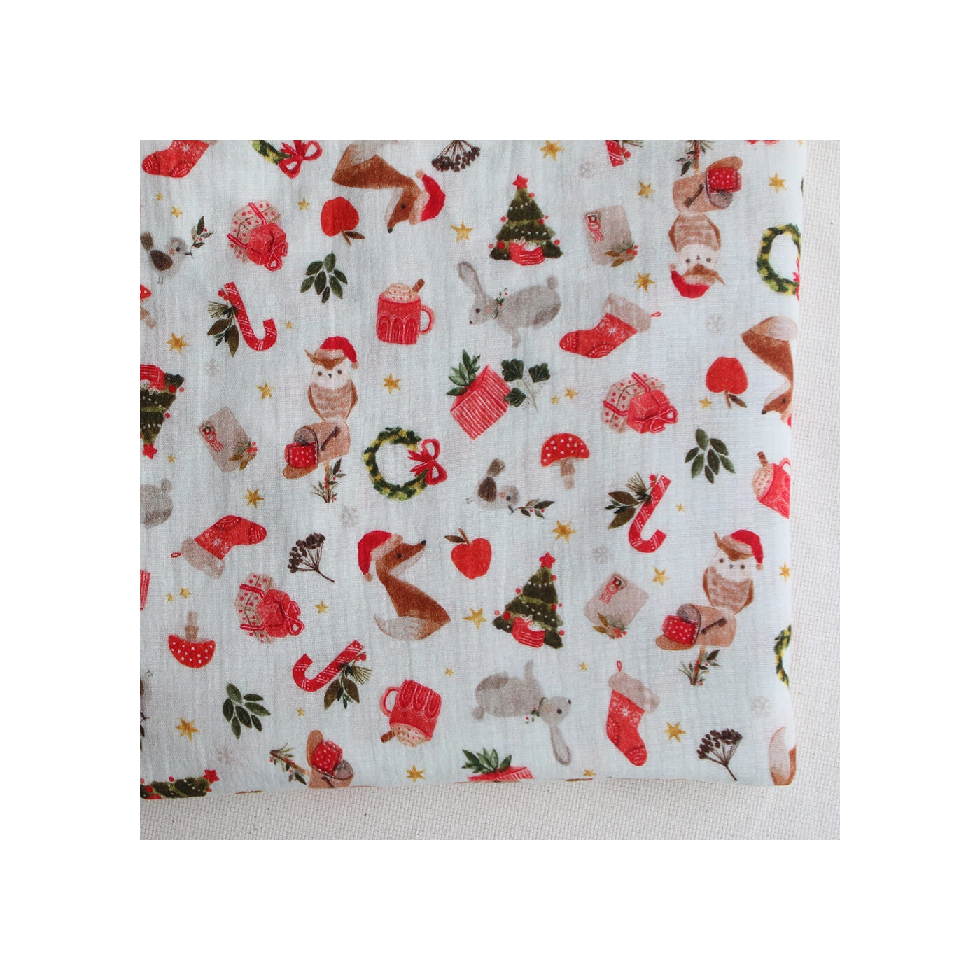 Coupon de 110 cm de Goupix - Double gaze de coton fond crème motif fleuri
