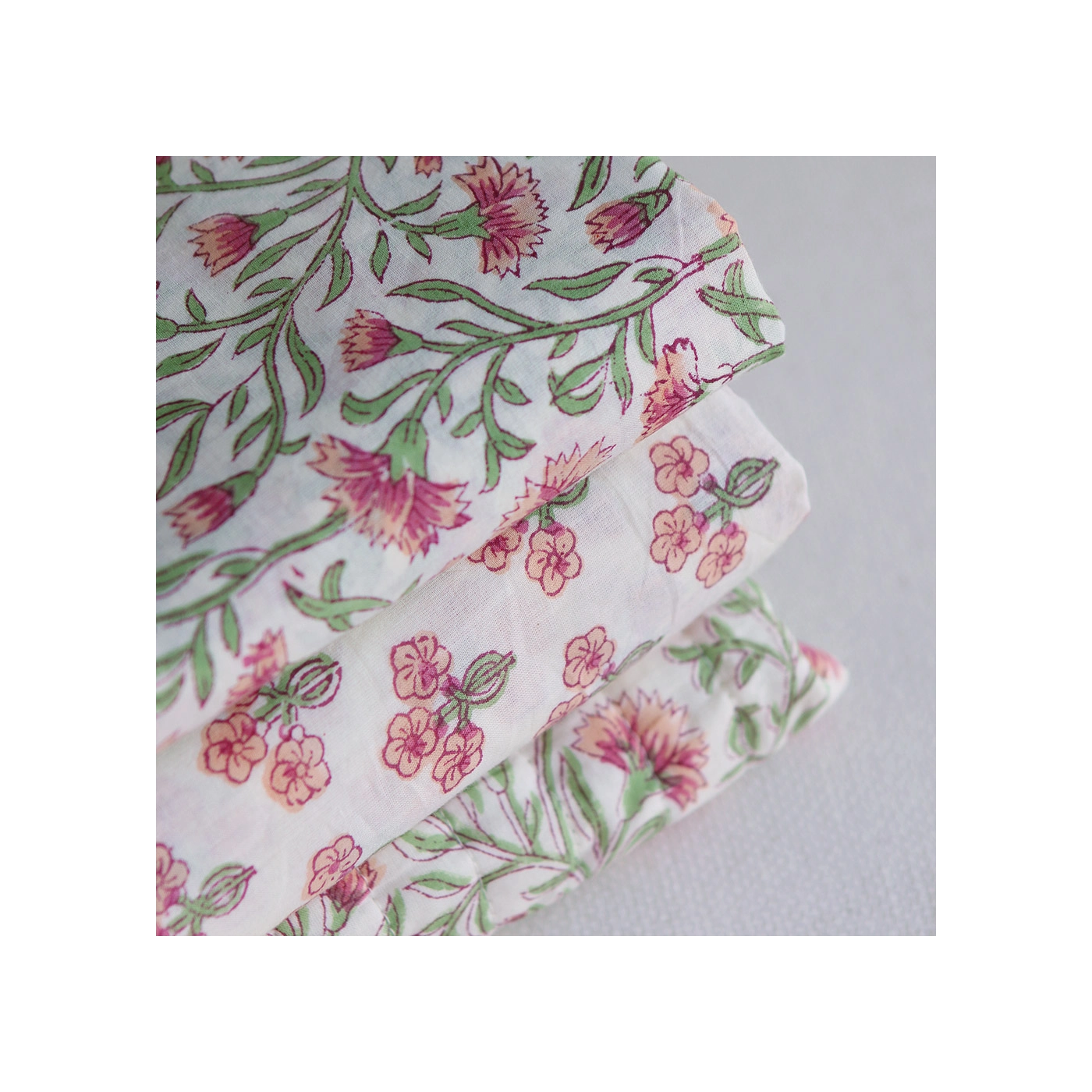 Le block print est un artisanat ancestral indien : le dessin est gravé sur un tampon en bois, chaque couleur nécessitant une étape d'impression distincte.