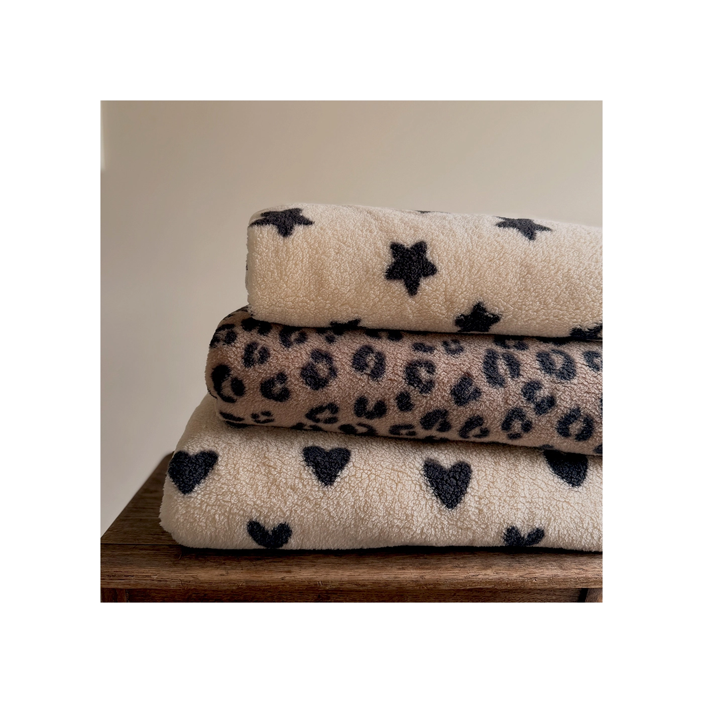 Coupon de 85 cm de Teddy / moumoute bouclé / sherpa fond marron glacé léopard Graou