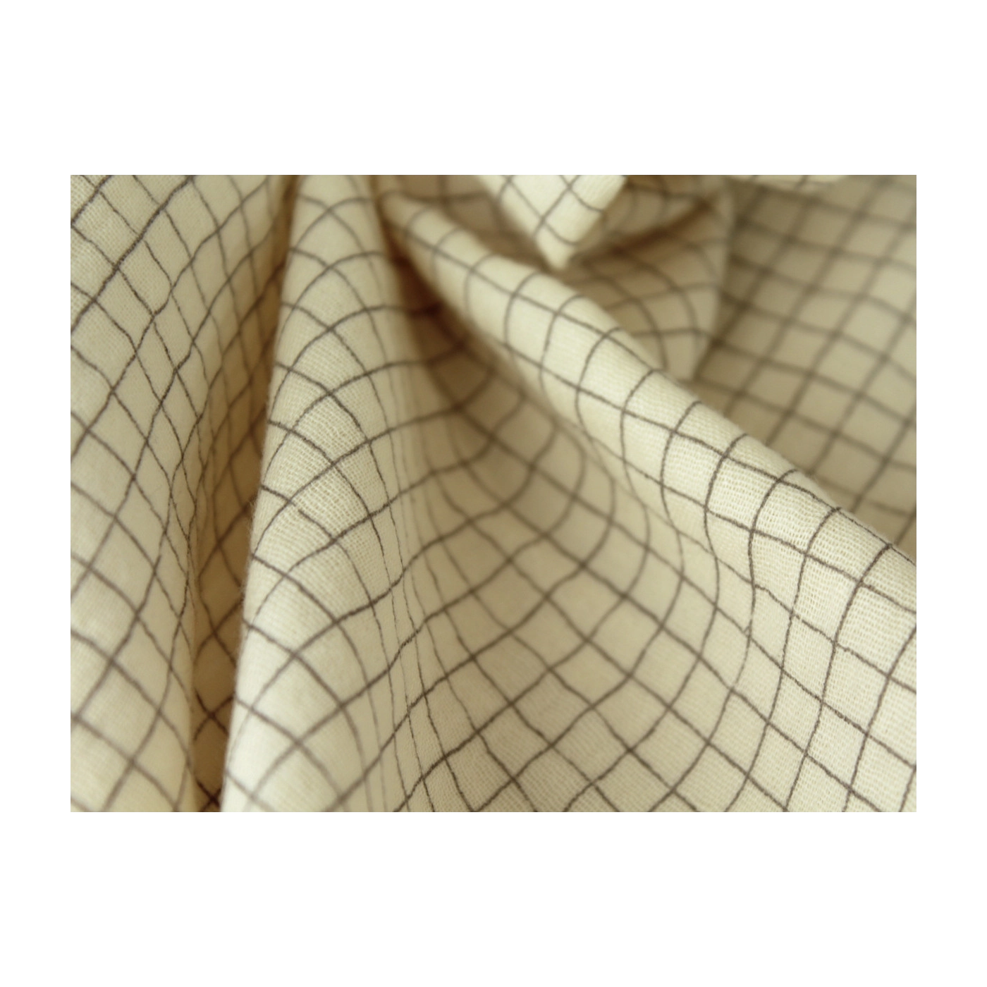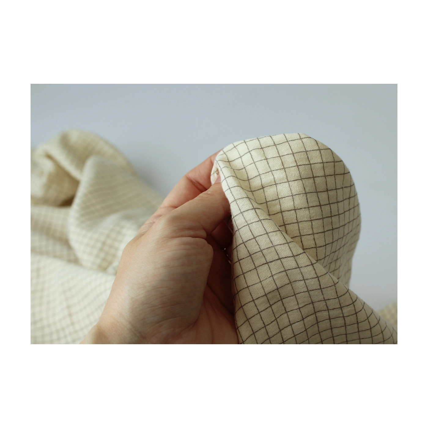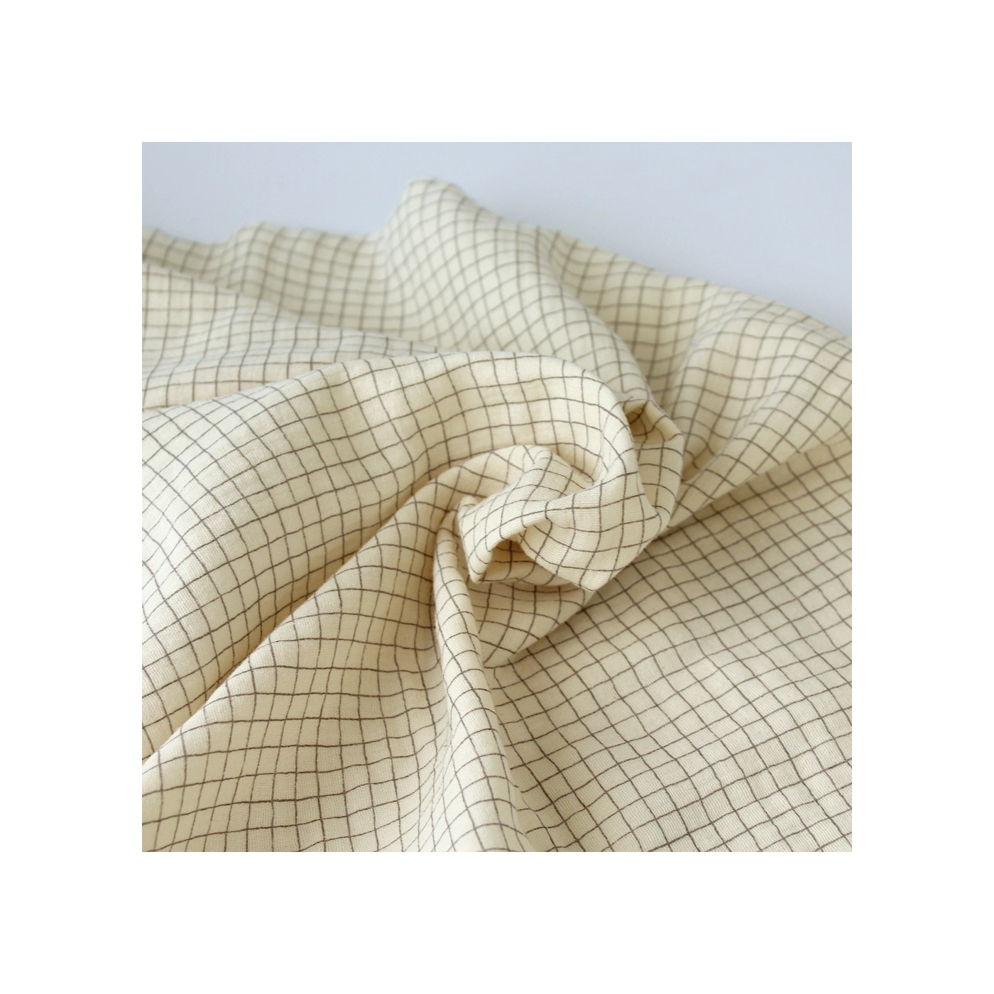 Coupon de 80 cm de Double gaze de coton beige écru à petits carreaux