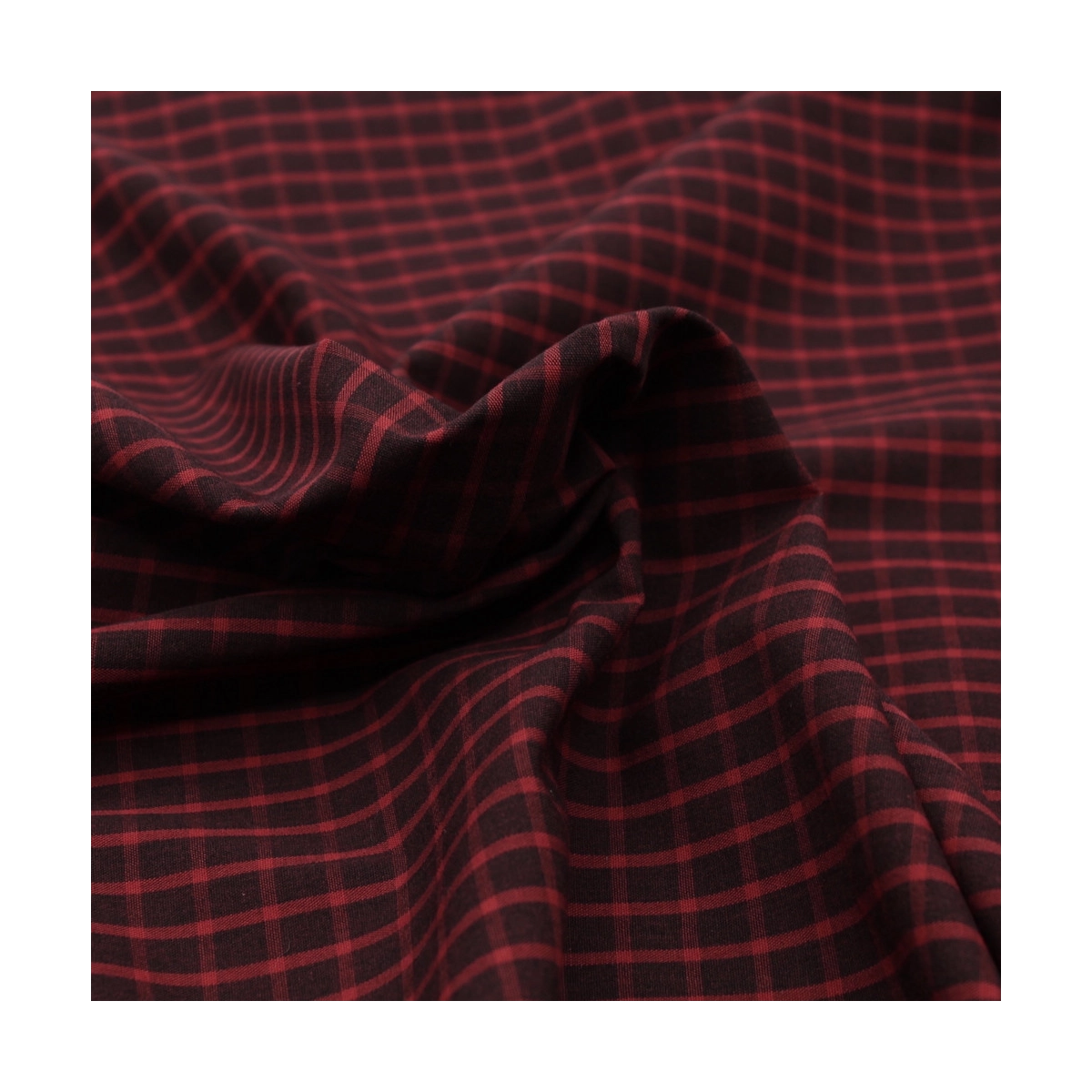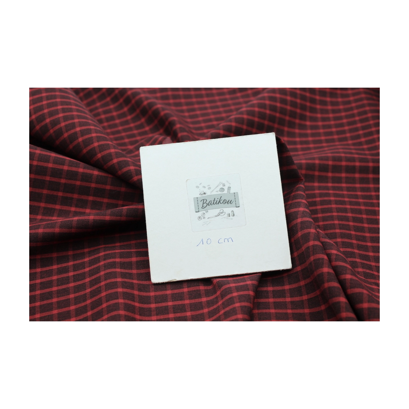 Coupon de 28 cm de Popeline de coton tissé carreaux lie de vin chiné