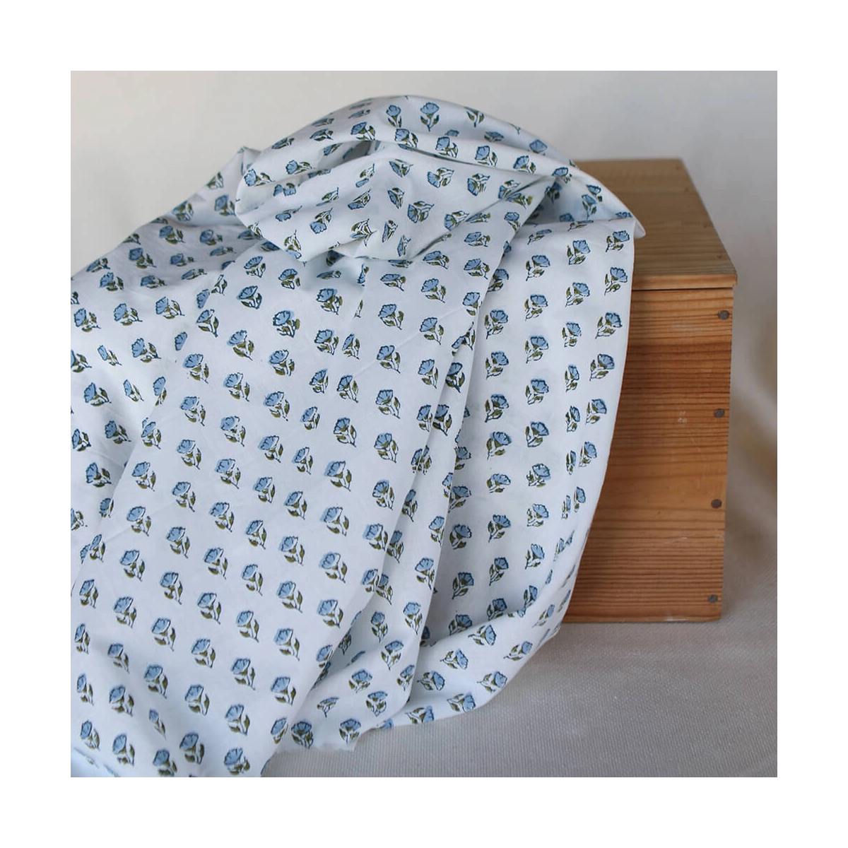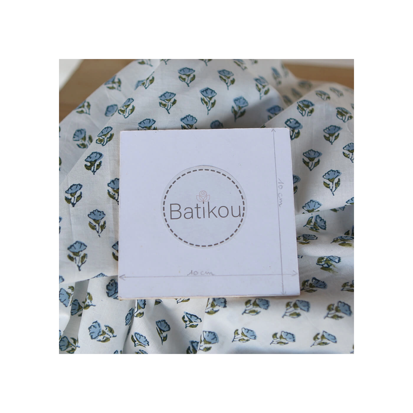 A noter que le processus artisanal (impression à la main, au tampon en bois) de ce tissu fait que chaque pièce est unique et que l'impression n'est pas aussi parfaite qu'un processus industriel.
