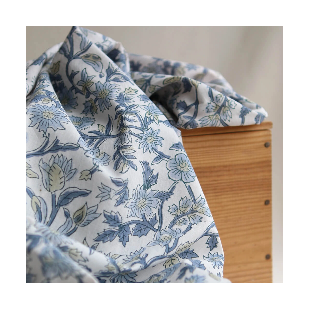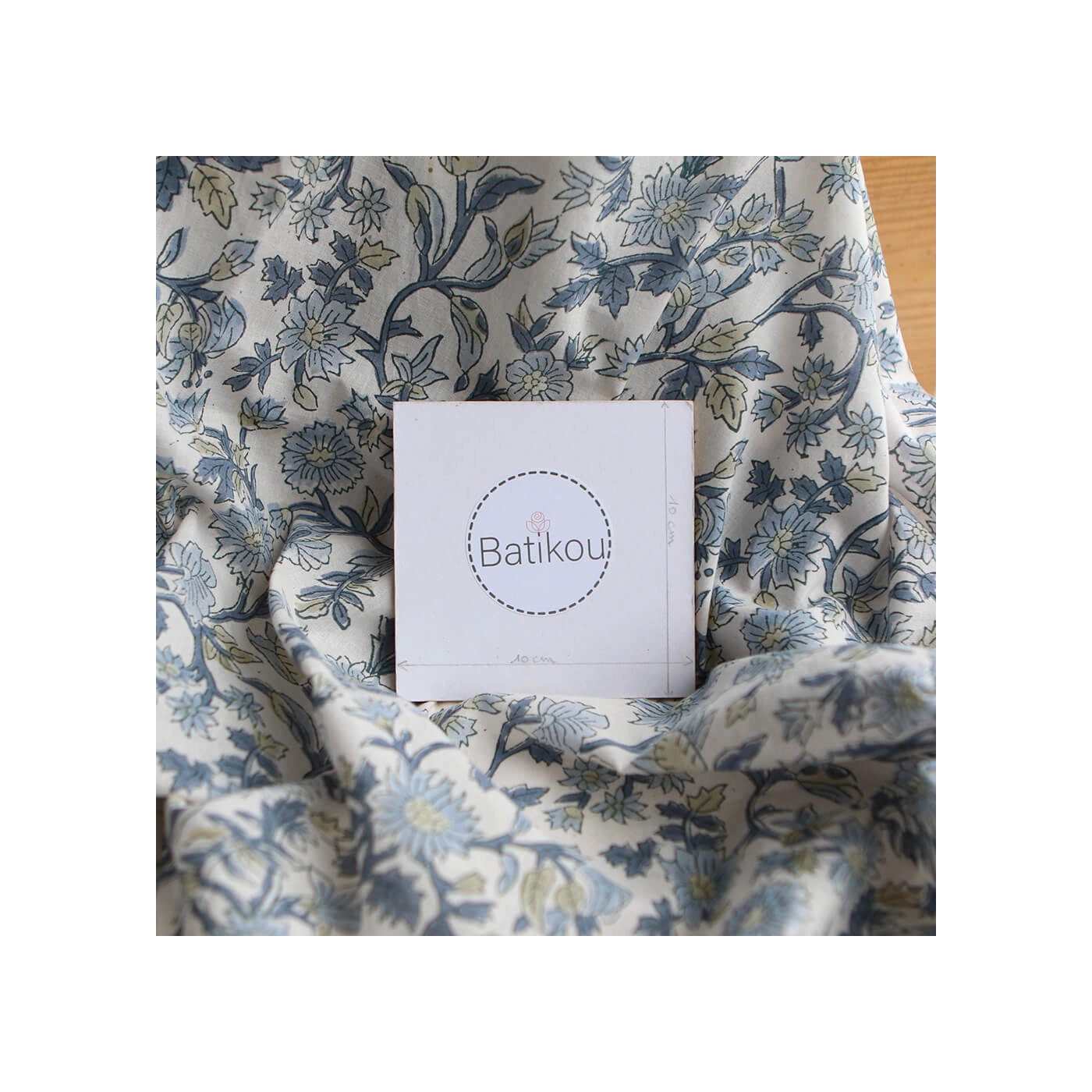 Tara Tissu Indien gris bleu Coton - Impression Artisanal Hand Block