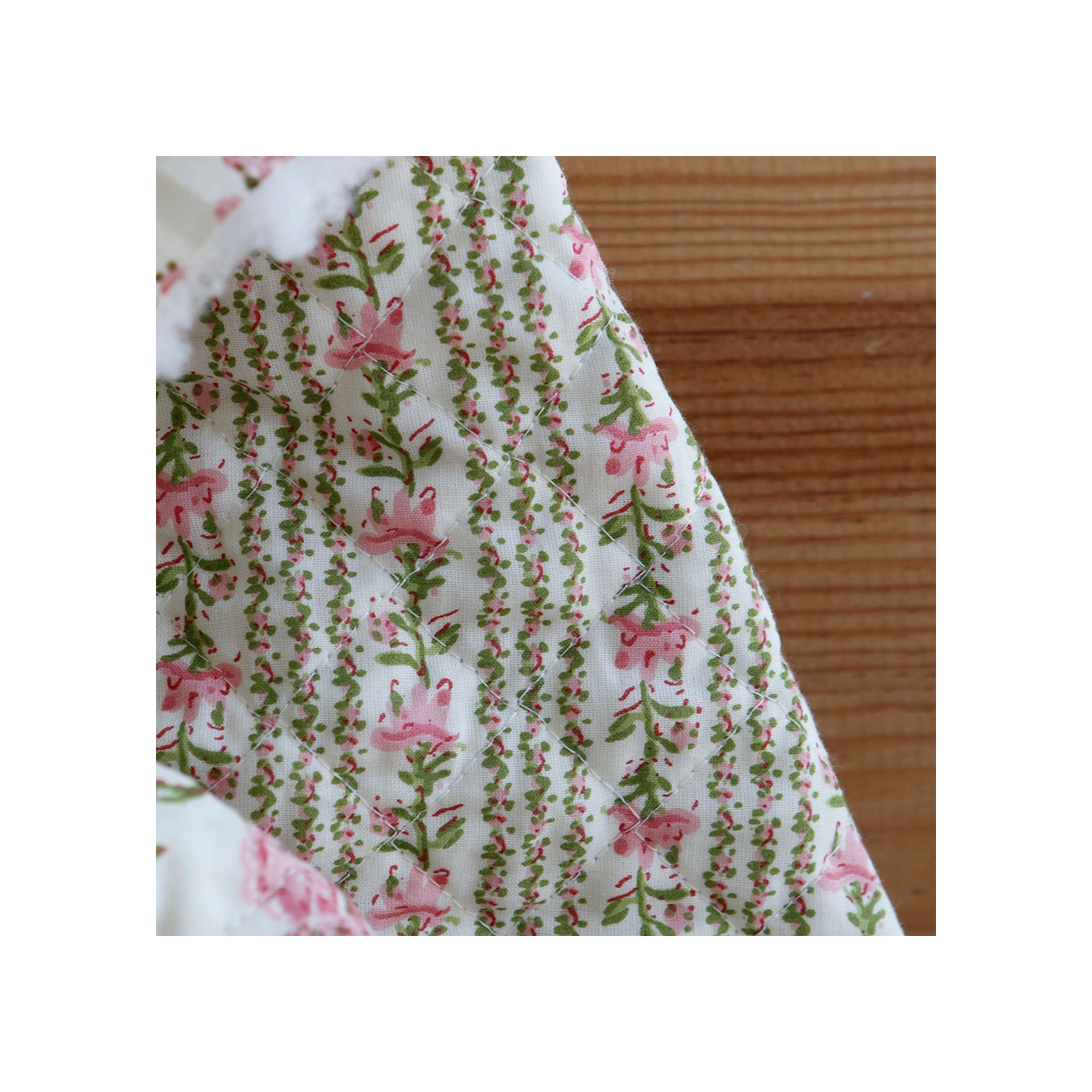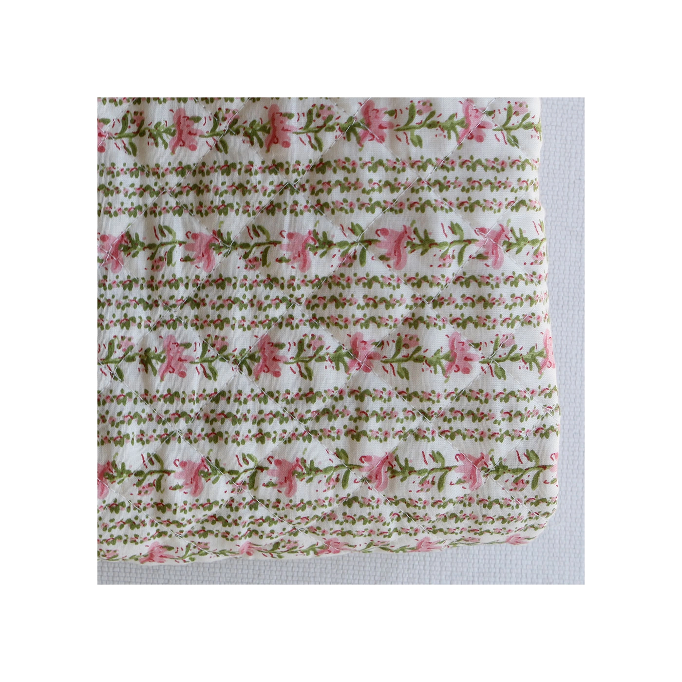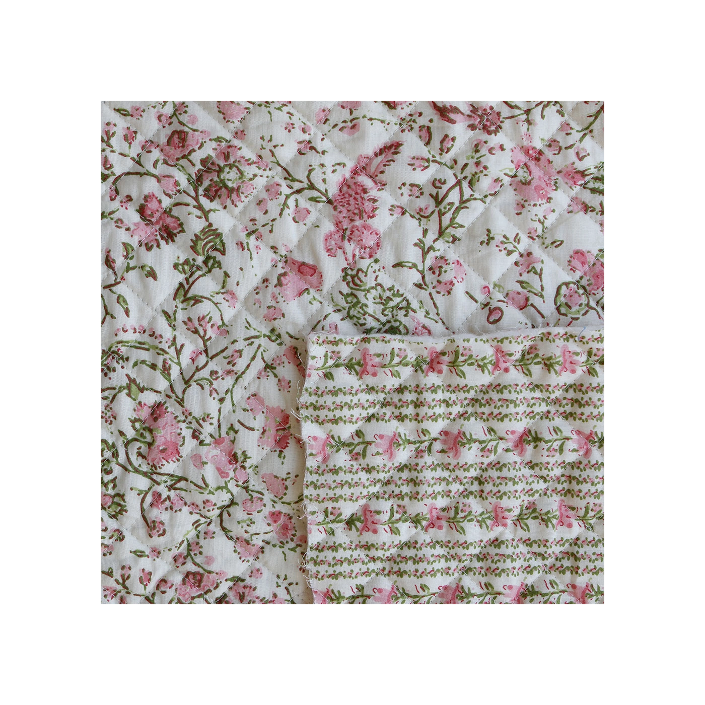 Coupon de 27 cm de Karishma rose - Tissu indien matelassé double face coton hand block largeur 100cm