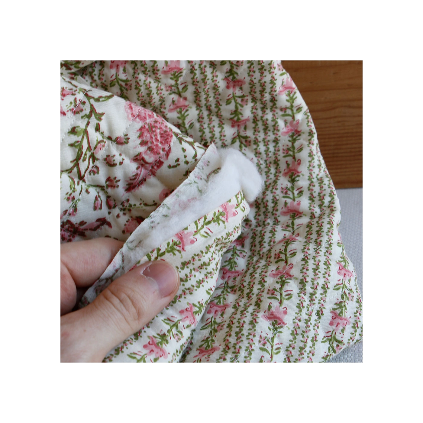 - A noter que le processus artisanal (impression à la main, au tampon en bois) de ce tissu fait que chaque pièce est unique et que l'impression ET le matelassage ne sont pas aussi parfaits qu'un processus industriel.