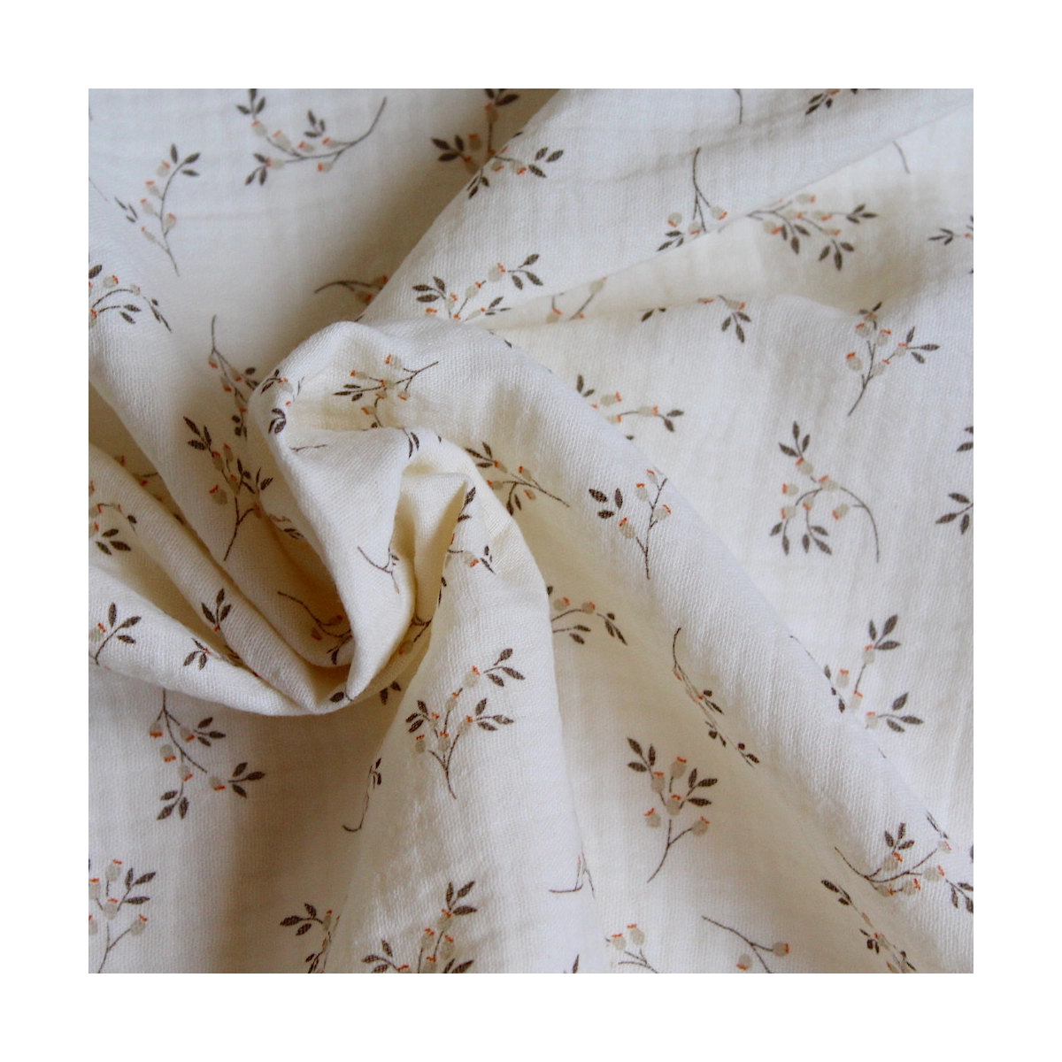 Coupon de 35 cm de Thaïs - Double gaze de coton BIO écru à motifs fleuris
