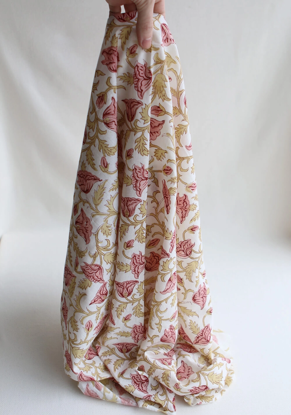 Madhavi - Tissu indien en coton imprimé main Hand Block
