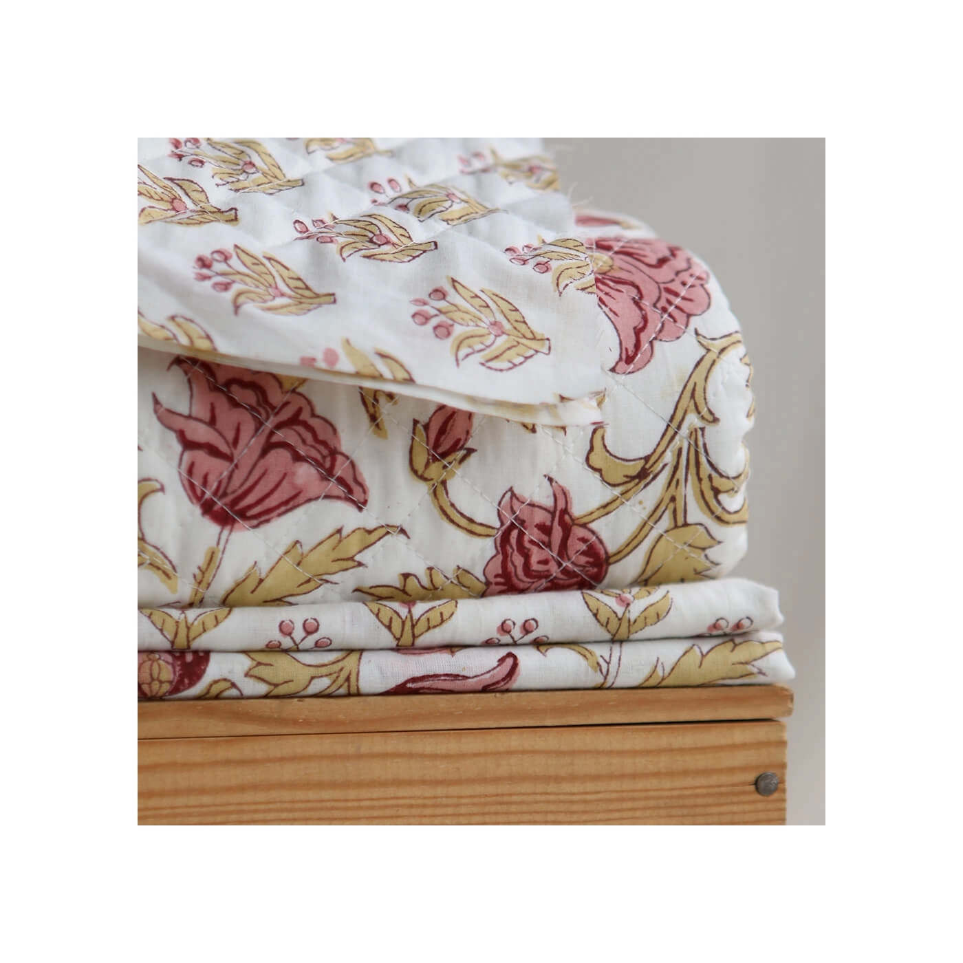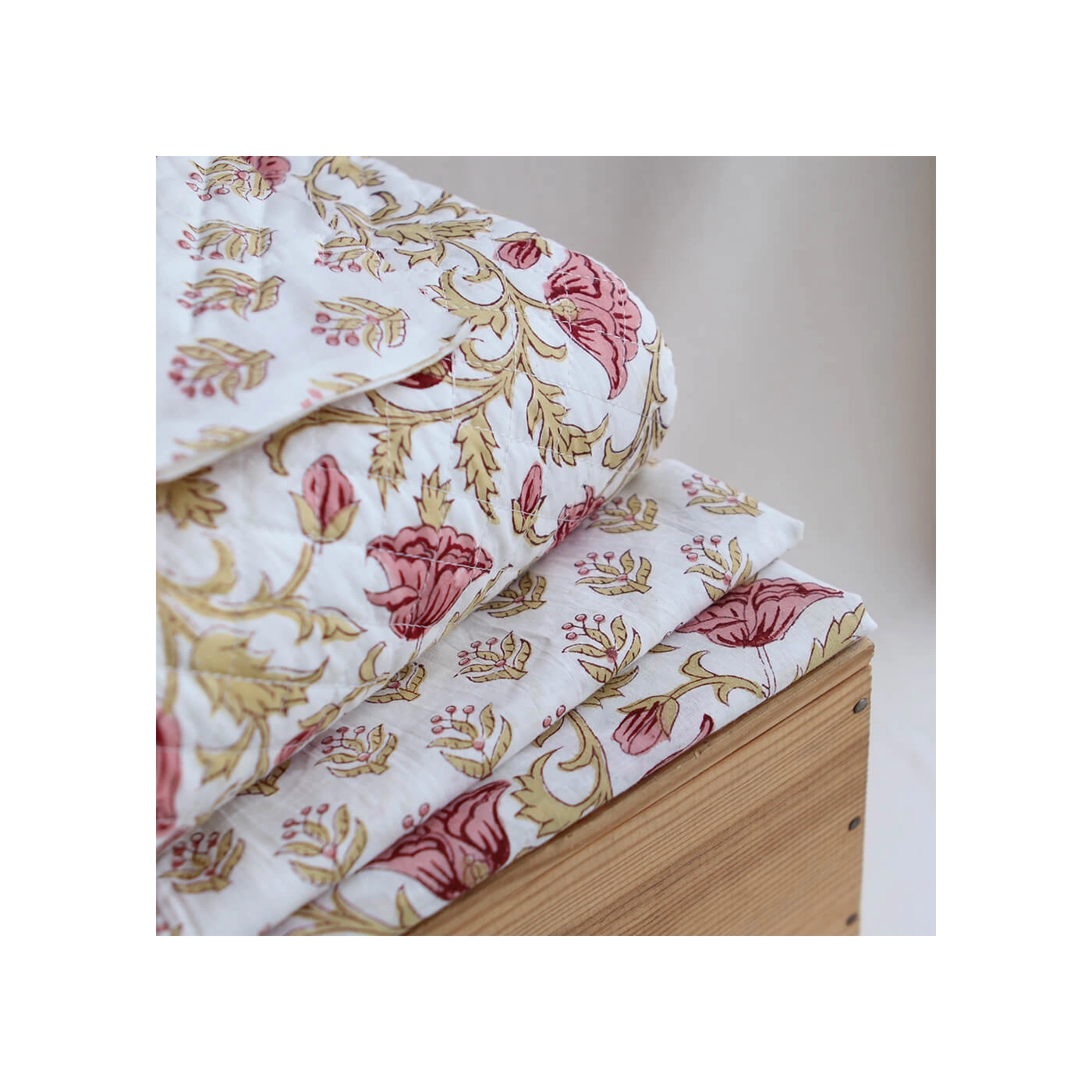 Le block print est un artisanat ancestral indien : le dessin est gravé sur un tampon en bois, chaque couleur nécessitant une étape d'impression distincte.