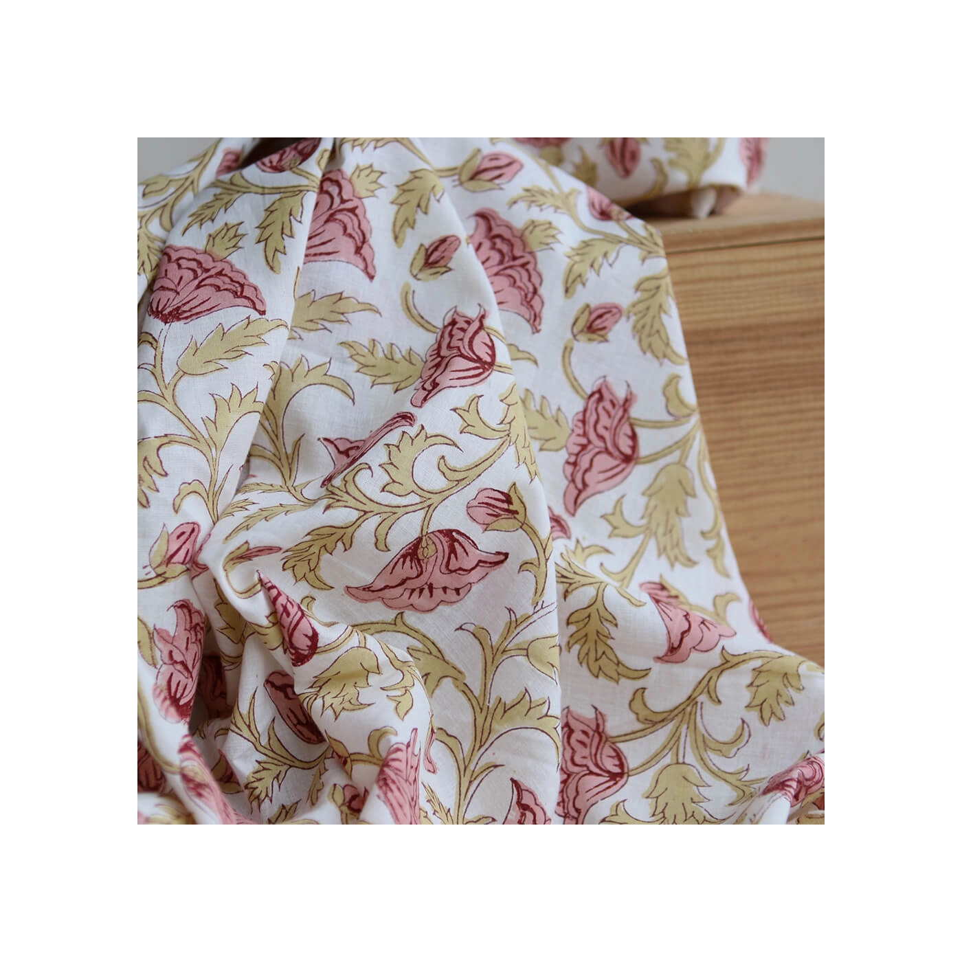 Découvrez l'authenticité et le charme du tissu indien en coton, imprimé à la main selon la technique ancestrale du block print. Ce tissu de qualité supérieure est idéal pour ajouter une touche exotique et artisanale à vos créations.