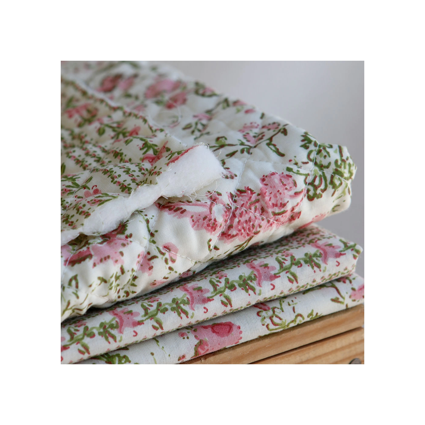 Nous avons décliné cette collection avec nos partenaires en Inde, afin de vous proposer pour le même motif le tissu en coton, et la version double face matelassée.