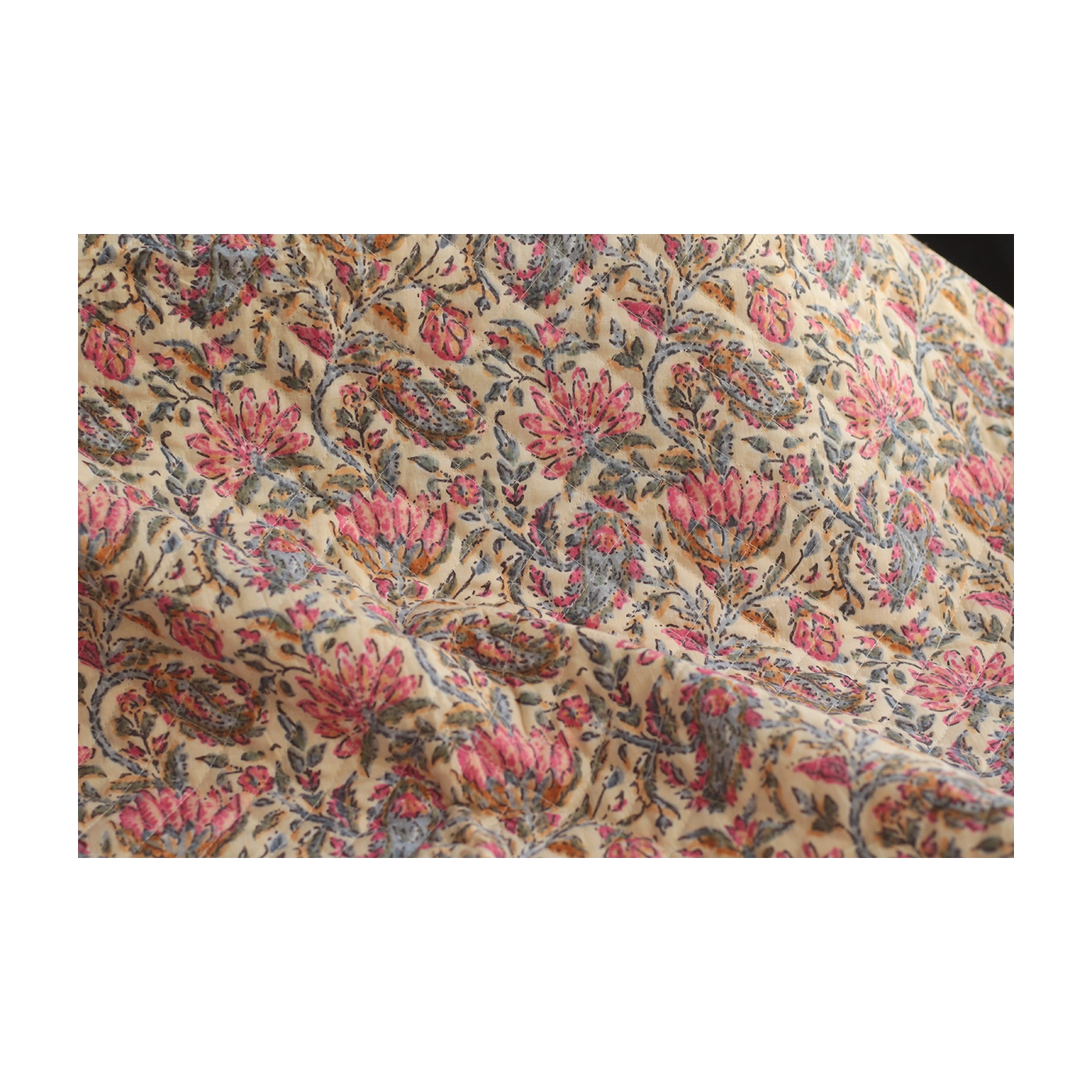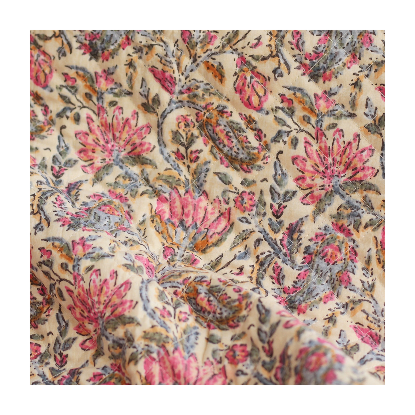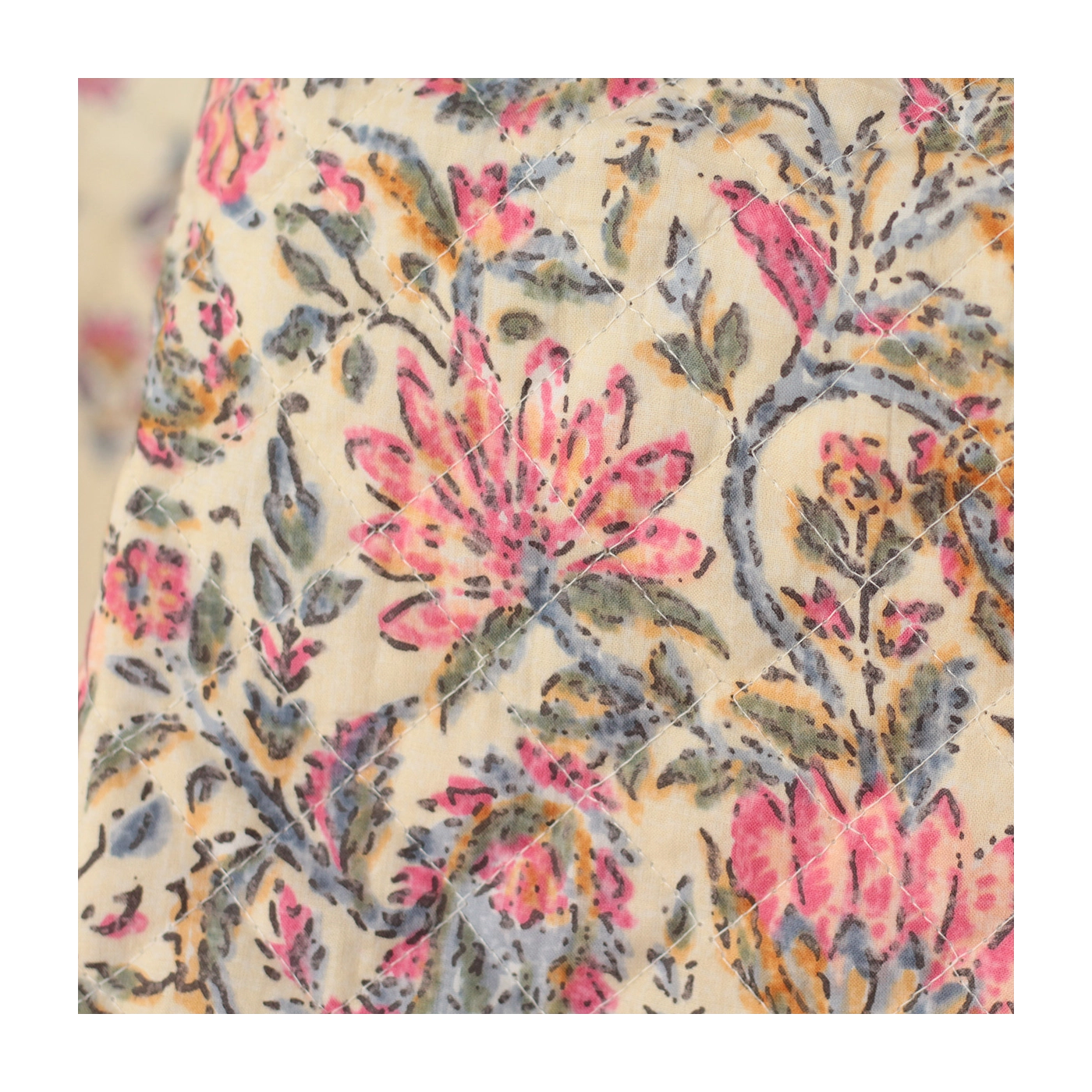 Nous avons décliné cette collection avec nos partenaires en Inde, afin de vous proposer pour le même motif le tissu en coton, et la version double face matelassée.