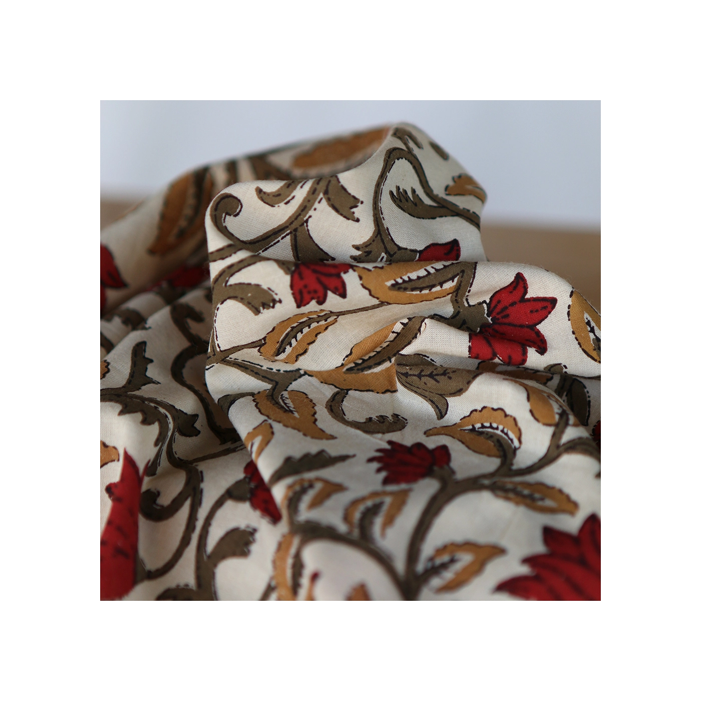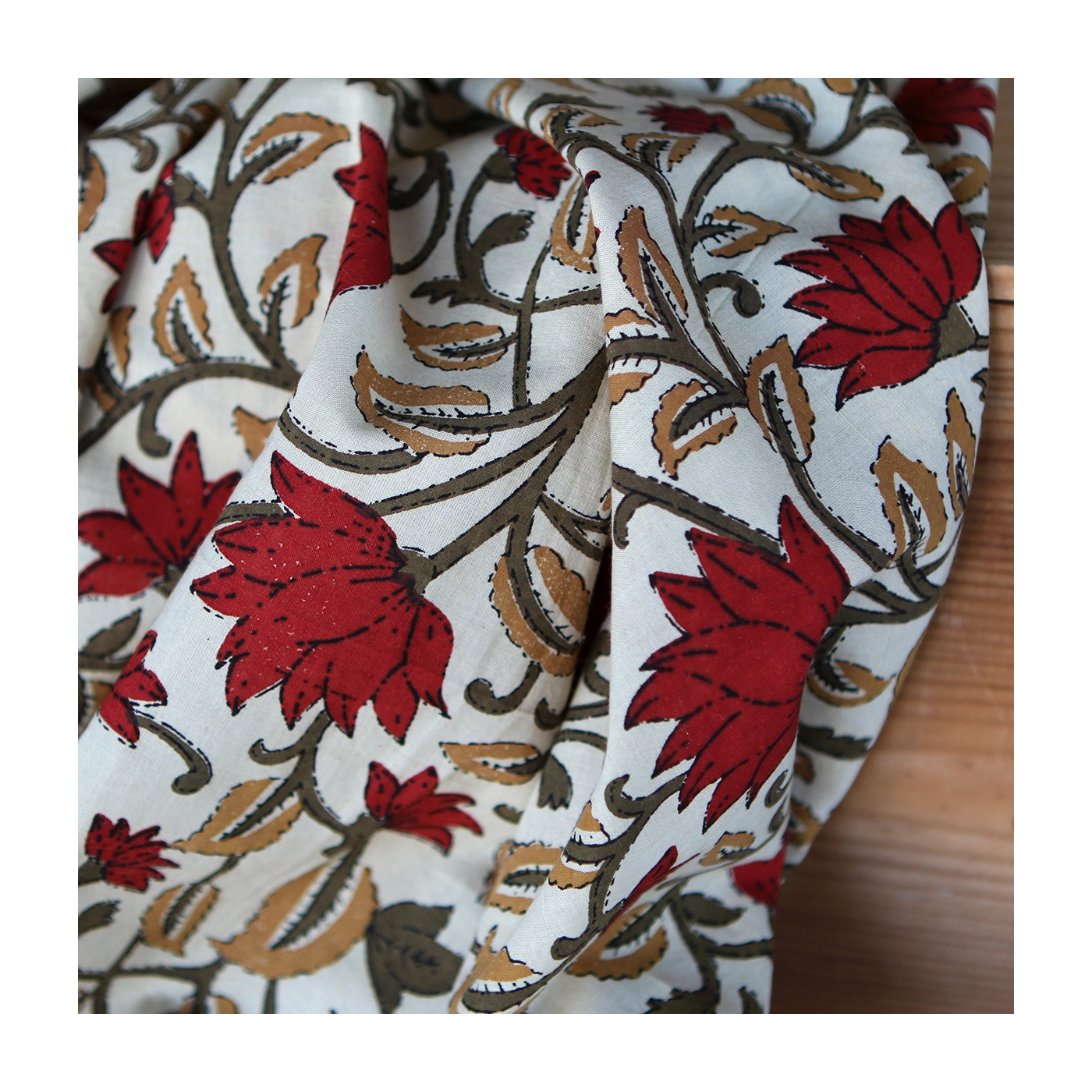 Découvrez l'authenticité et le charme du tissu indien en coton, imprimé à la main selon la technique ancestrale du block print. Ce tissu de qualité supérieure est idéal pour ajouter une touche exotique et artisanale à vos créations.