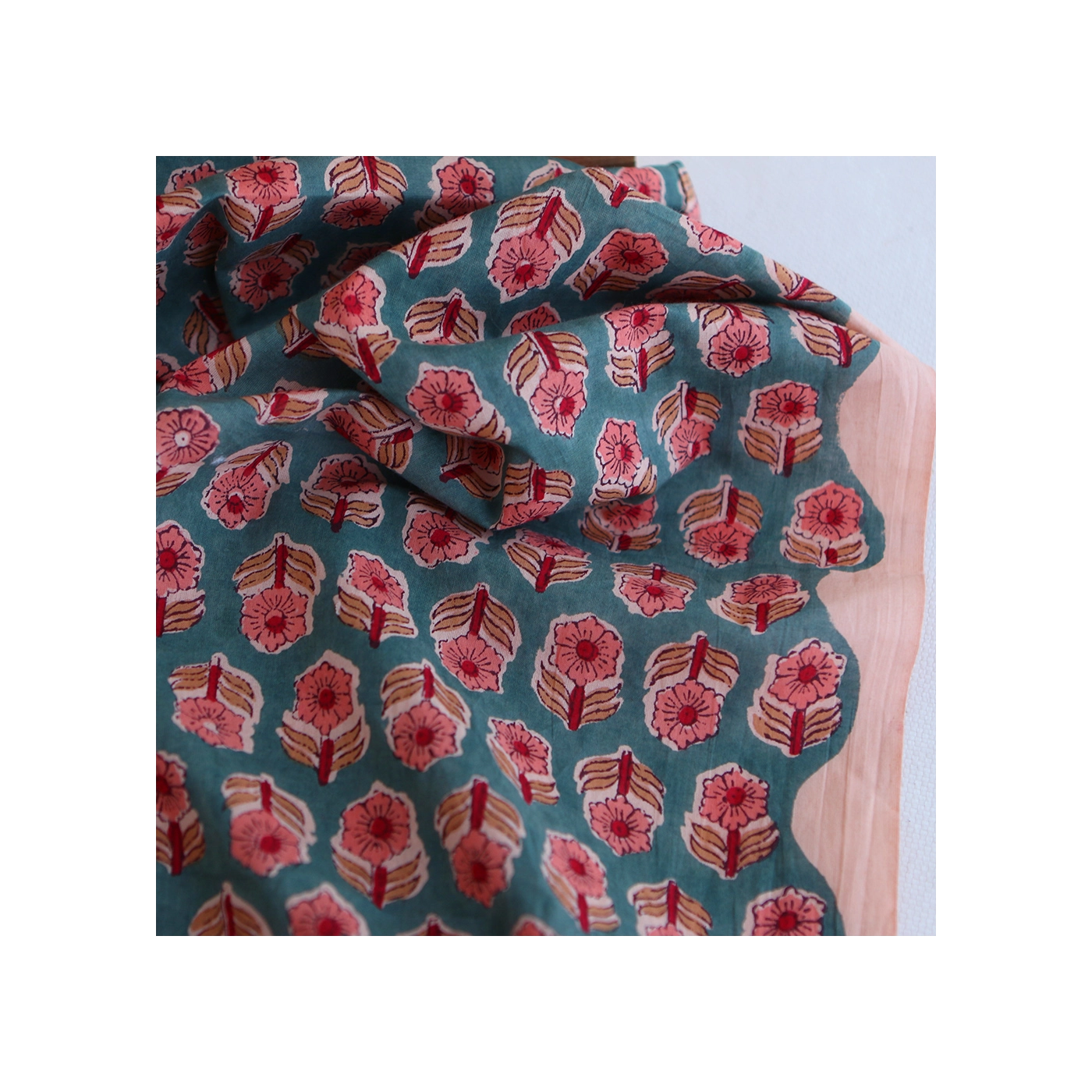 Coupon de 48 cm de Sahar B - Tissu indien coton hand block traditionnel Teal