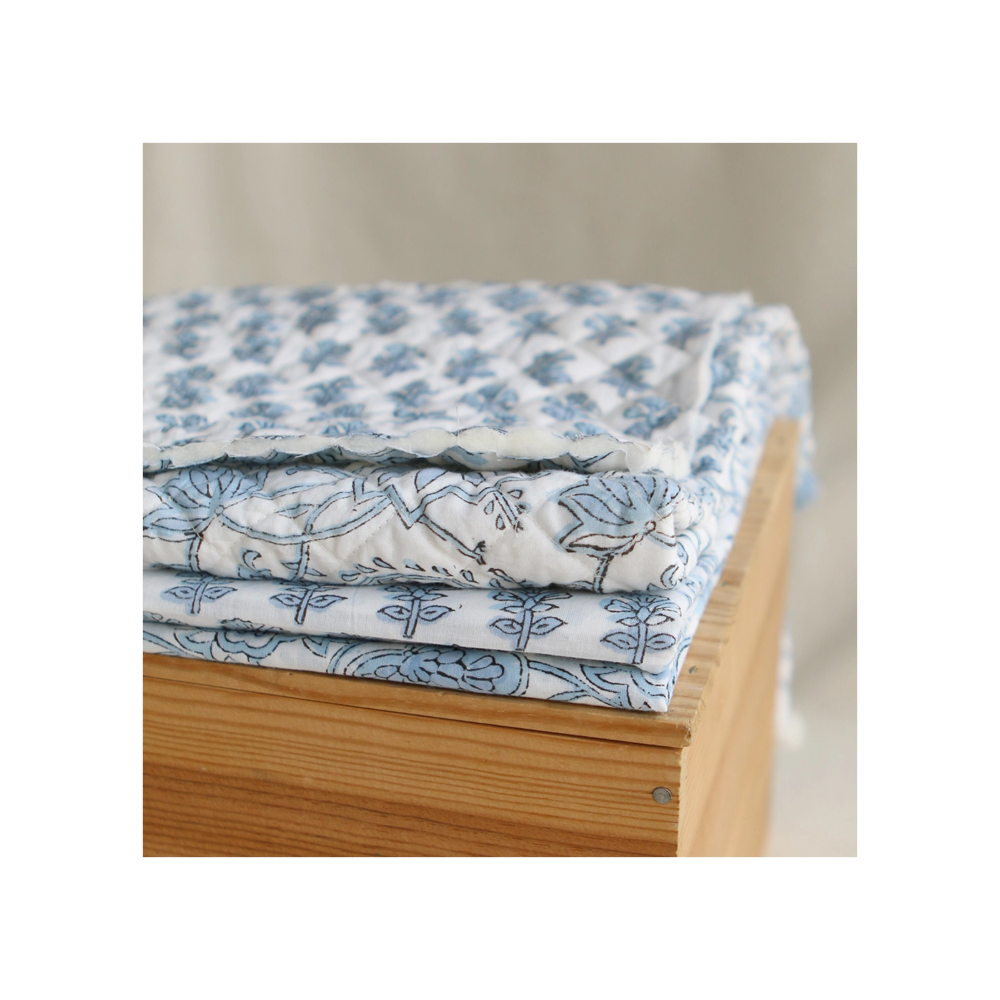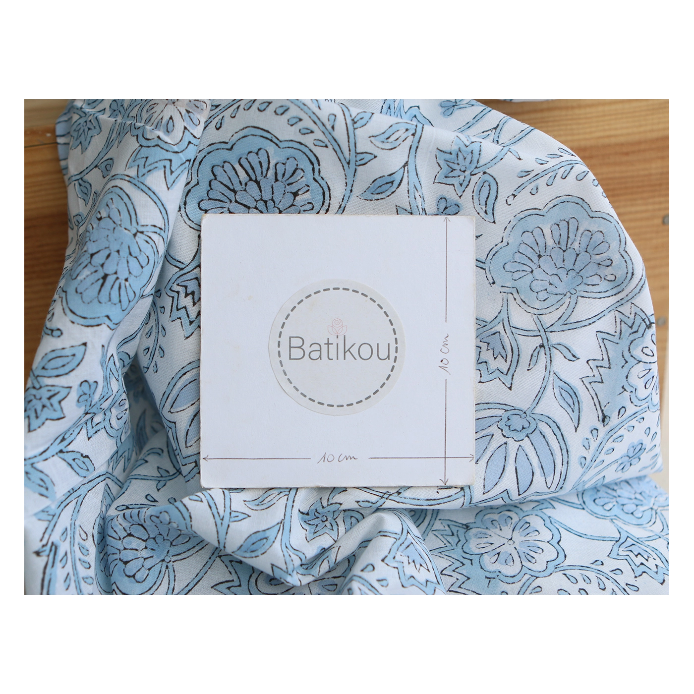 A noter que le processus artisanal (impression à la main, au tampon en bois) de ce tissu fait que chaque pièce est unique et que l'impression n'est pas aussi parfaite qu'un processus industriel.