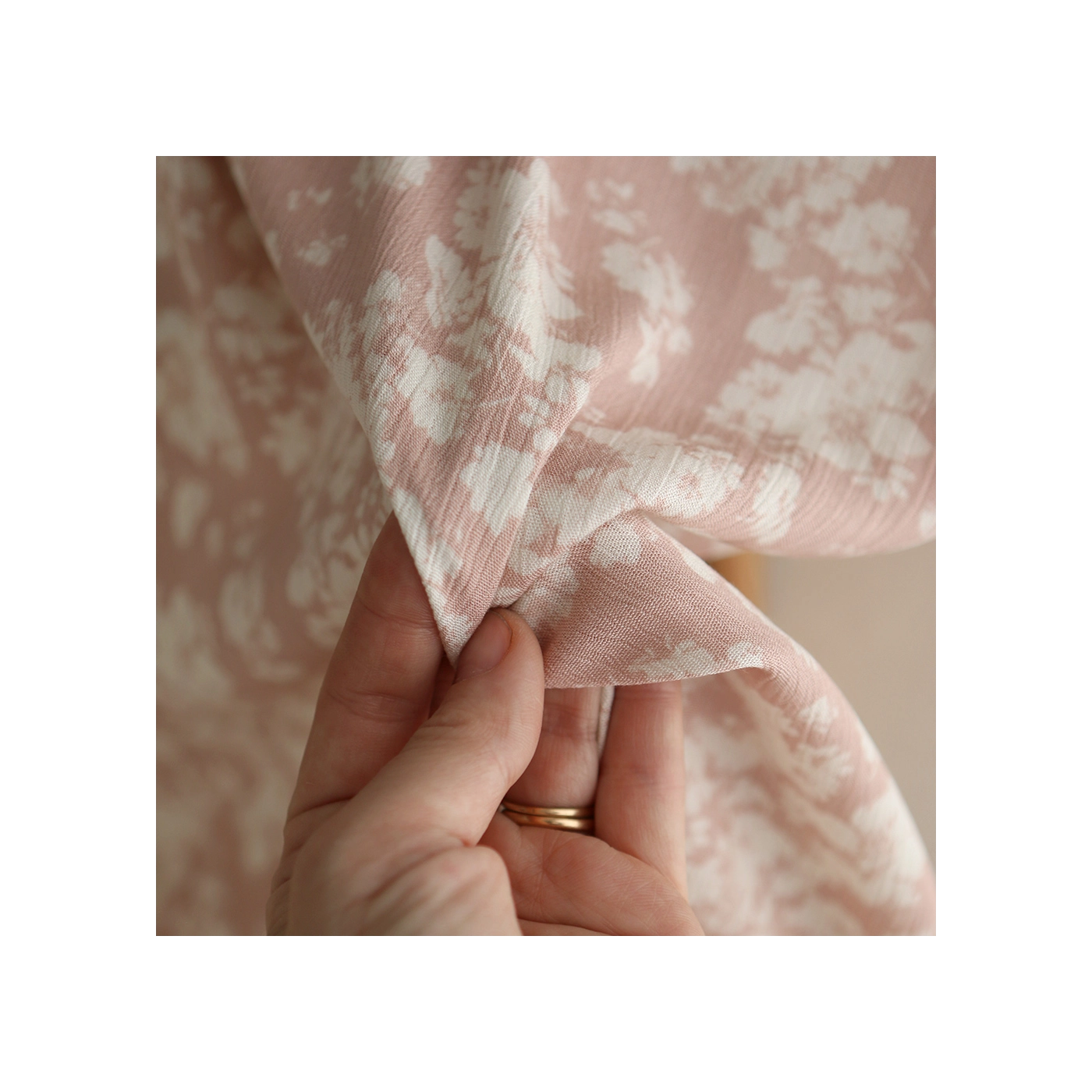 Coloris: motif fleuri écru et rose blush