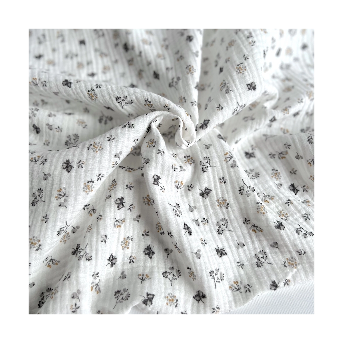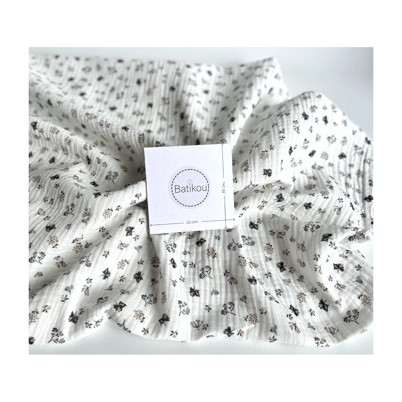 Coupon de 15 cm de Double gaze de coton BIO blanc motif exclusif Grey