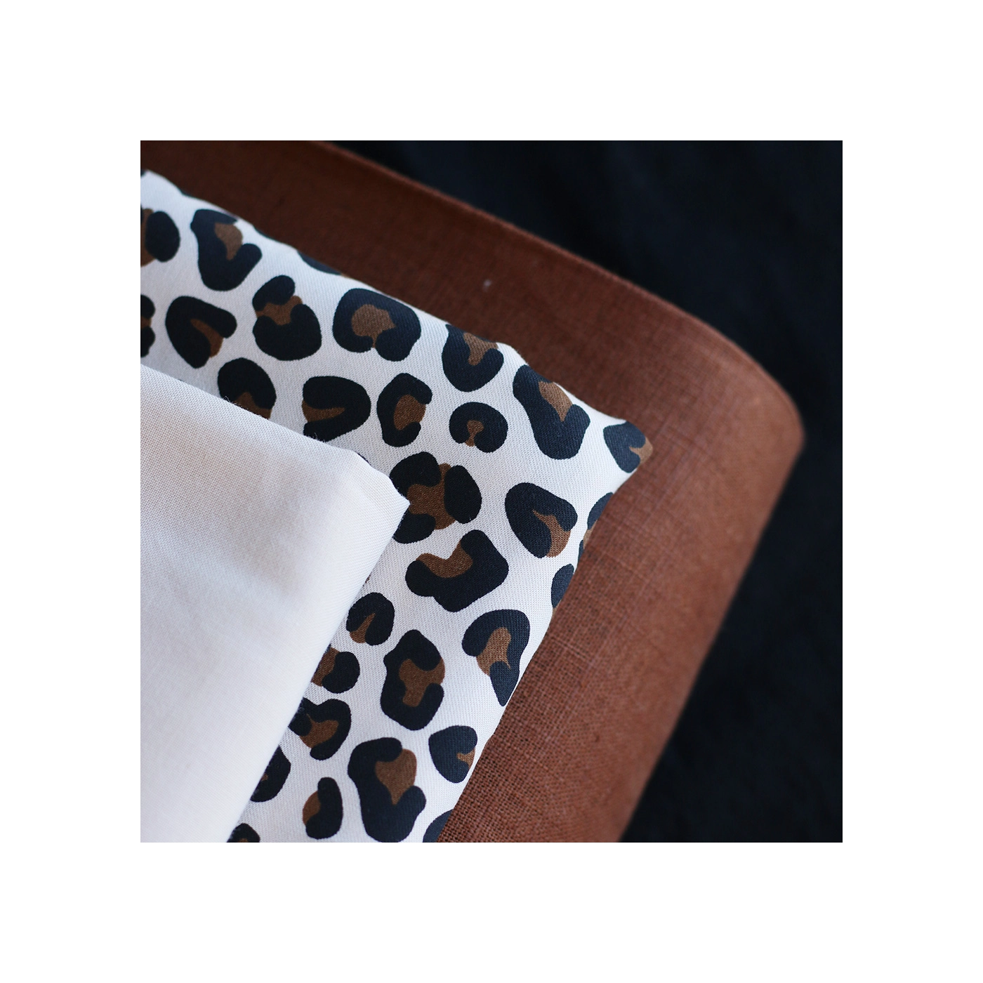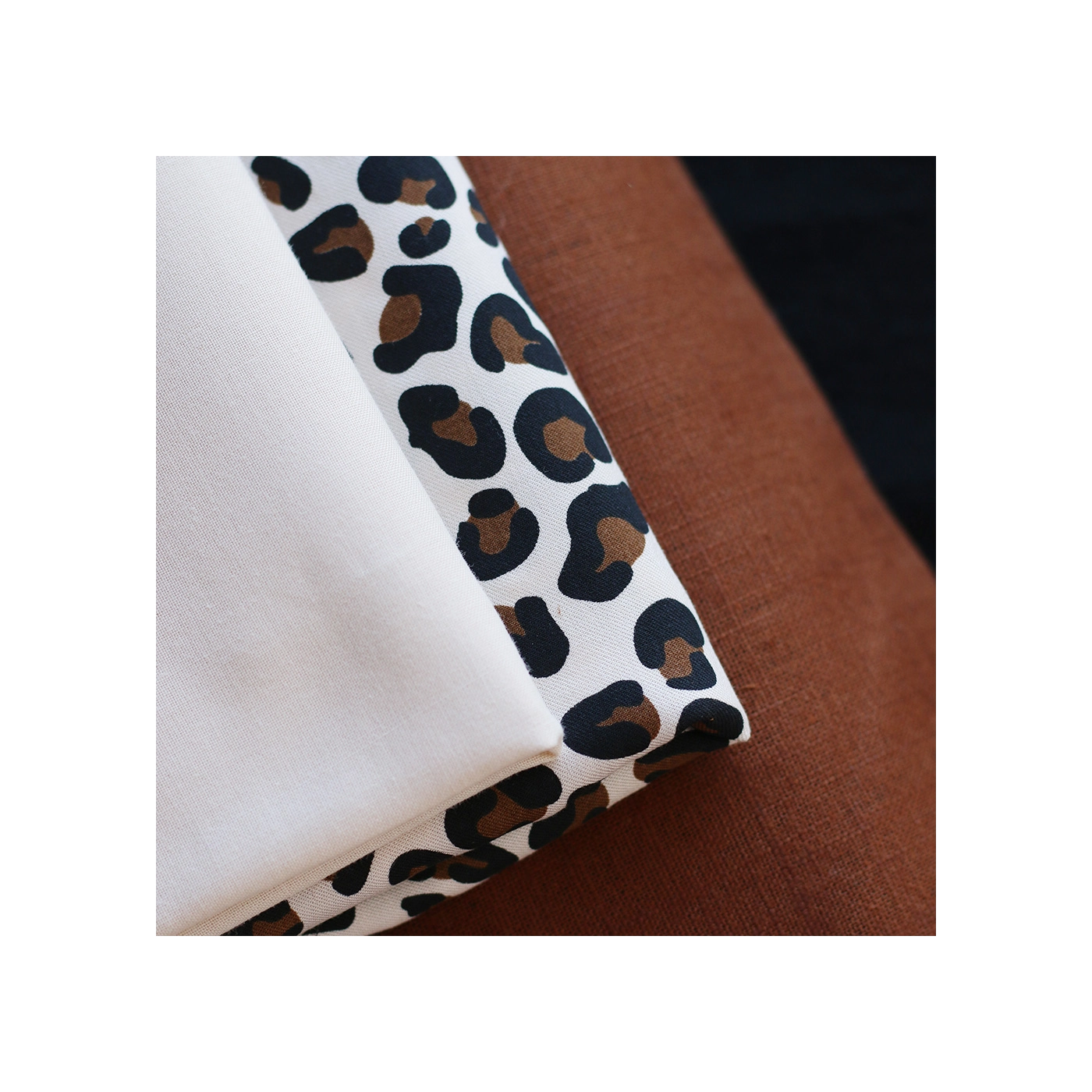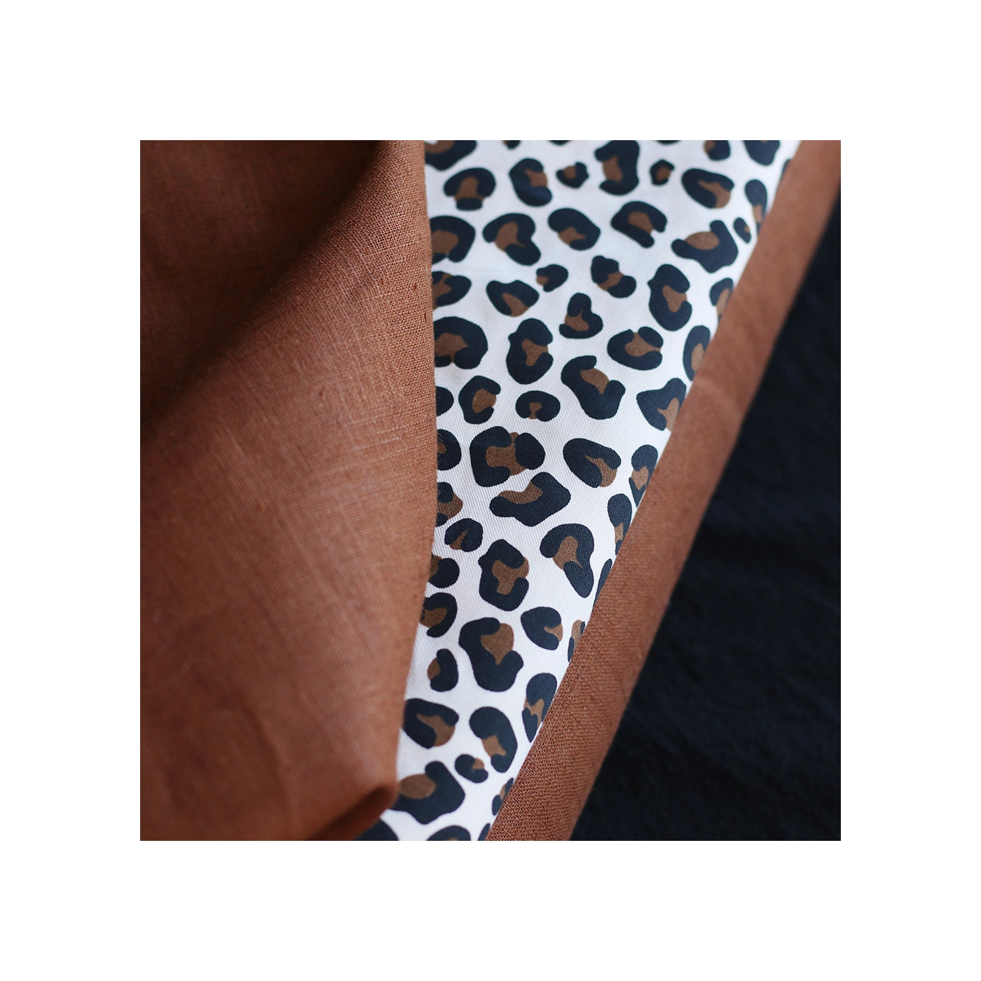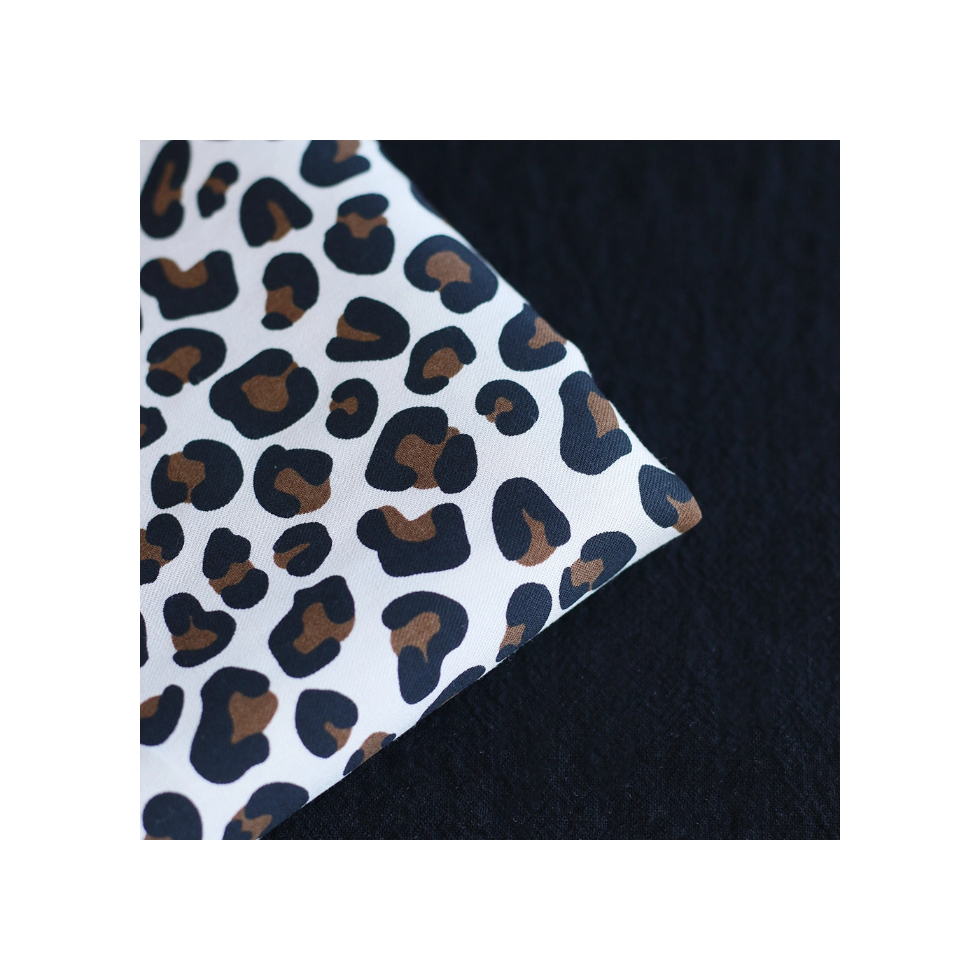 La photo avec le carré blanc permet d'avoir un repère de mesure (le carré fait 10cm de côté) et de couleur, en effet il est blanc optique. Cette indication peut vous permettre de mieux percevoir le rendu du tissu.