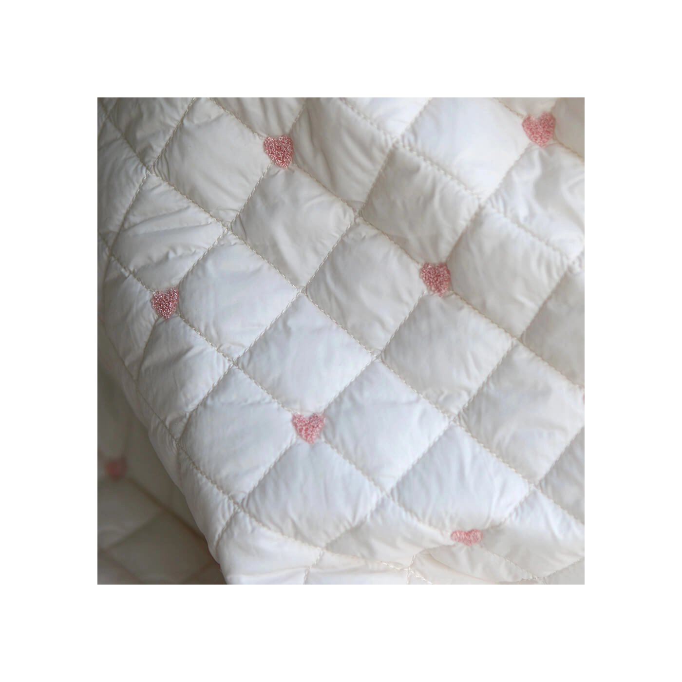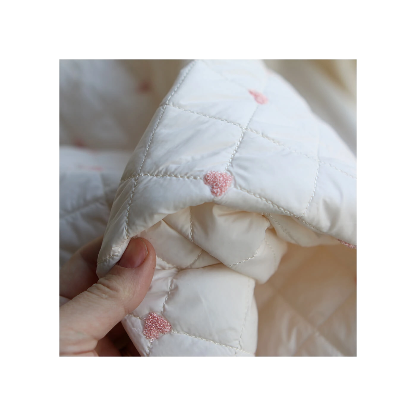 Coupon de 150 cm x 40 cm de laize de Cora - Matelassé doux et souple coeurs brodés rose